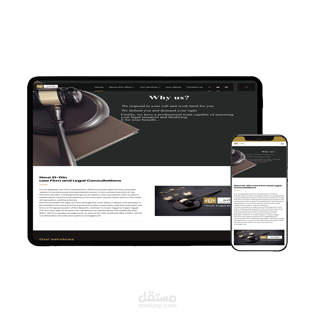 قمت بإنشاء موقع إلكتروني لمكتب محاماه ، حيث أن الموقع بتصميم جذاب وجميل ومناسب لمجال الشركة، وقد حاز على رضا العميل