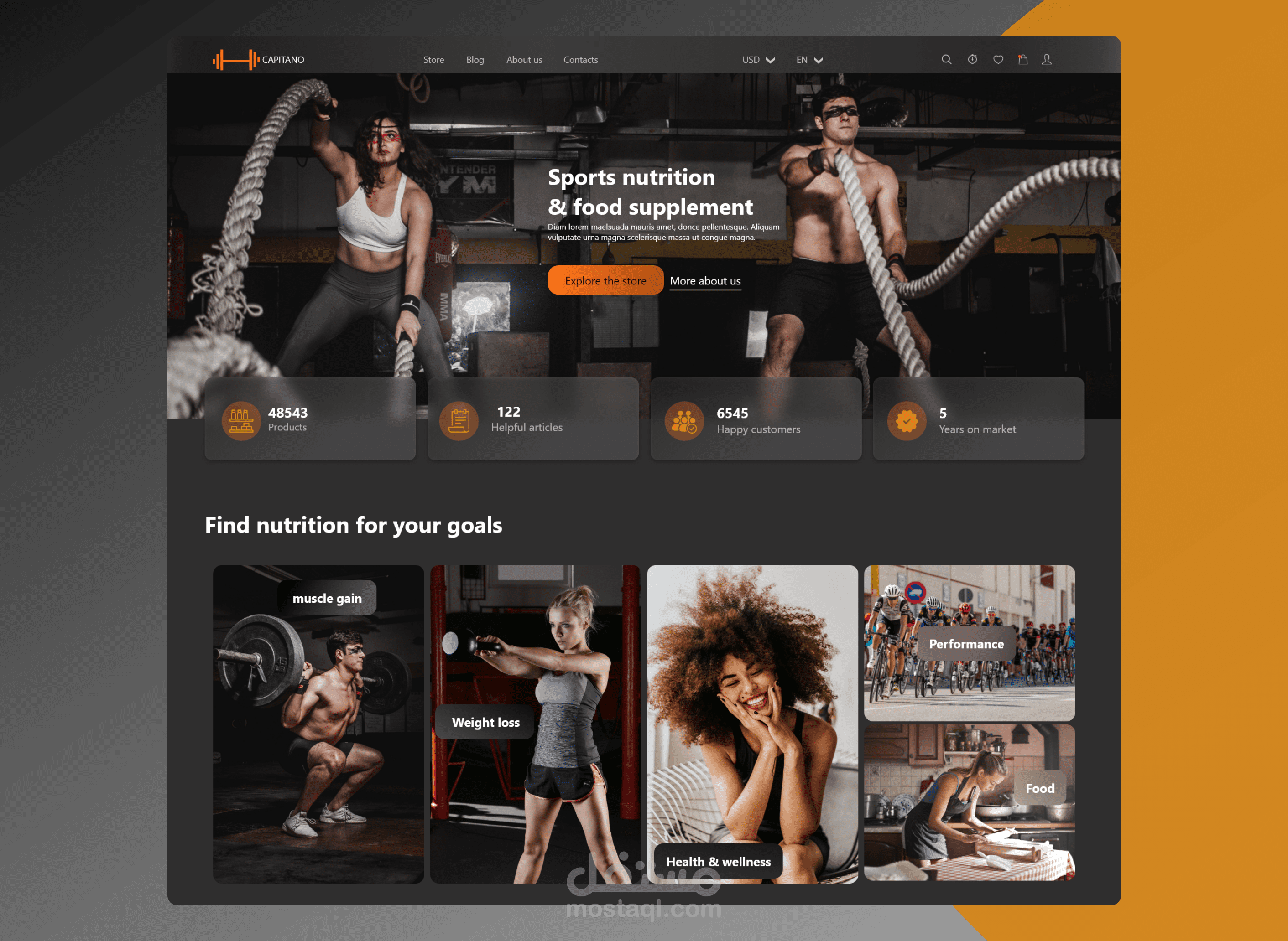 الصفحة الرئيسية من مشروع تصميم موقع لنادي رياضي.