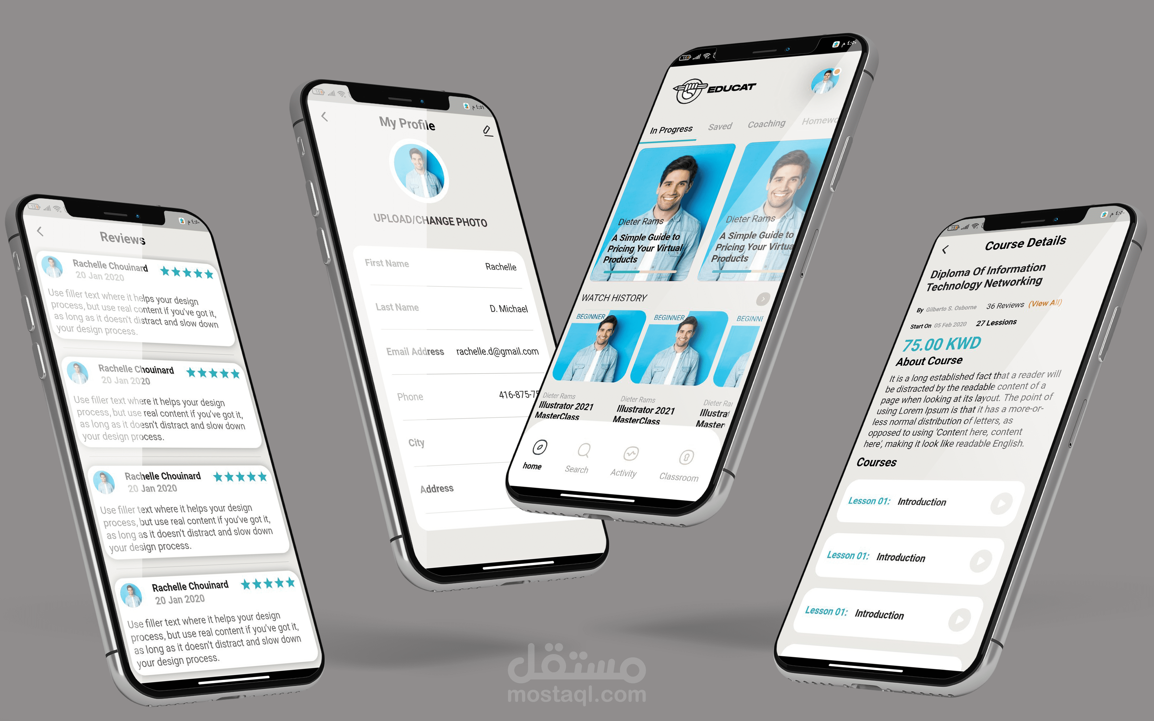 - يمكنك مشاهدة تفاصيل كل كورس وتقيماته