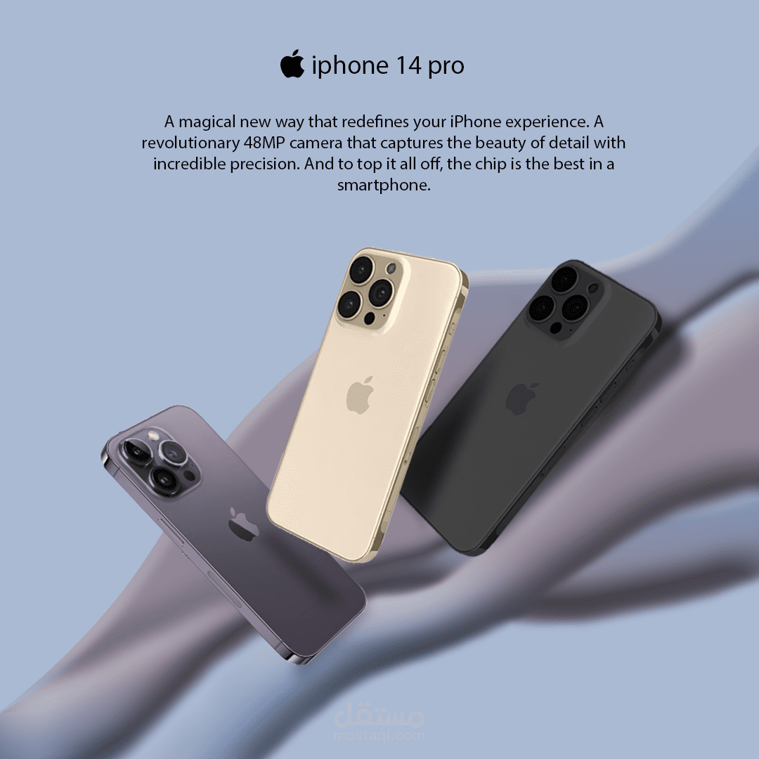 تصميم اعلاني لهاتف ايفون يذكر فيه مواصفات الجهاز والالوان المتوفرة منه