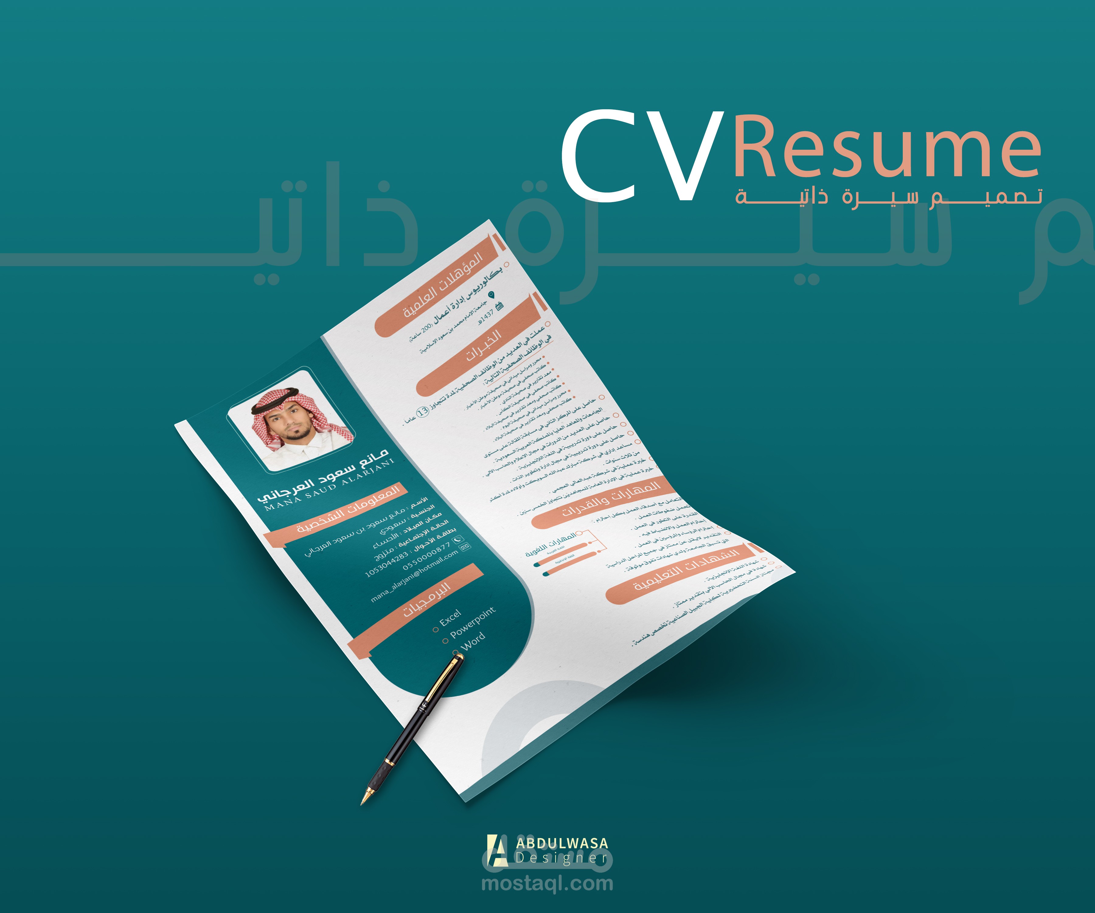 تم تصميمها بناءً على قواعد كتابة السيرة الذاتية في اللغة العربية - تم إختيار ألوان راقية وجذابة بناءً على نوع الوظيفة .