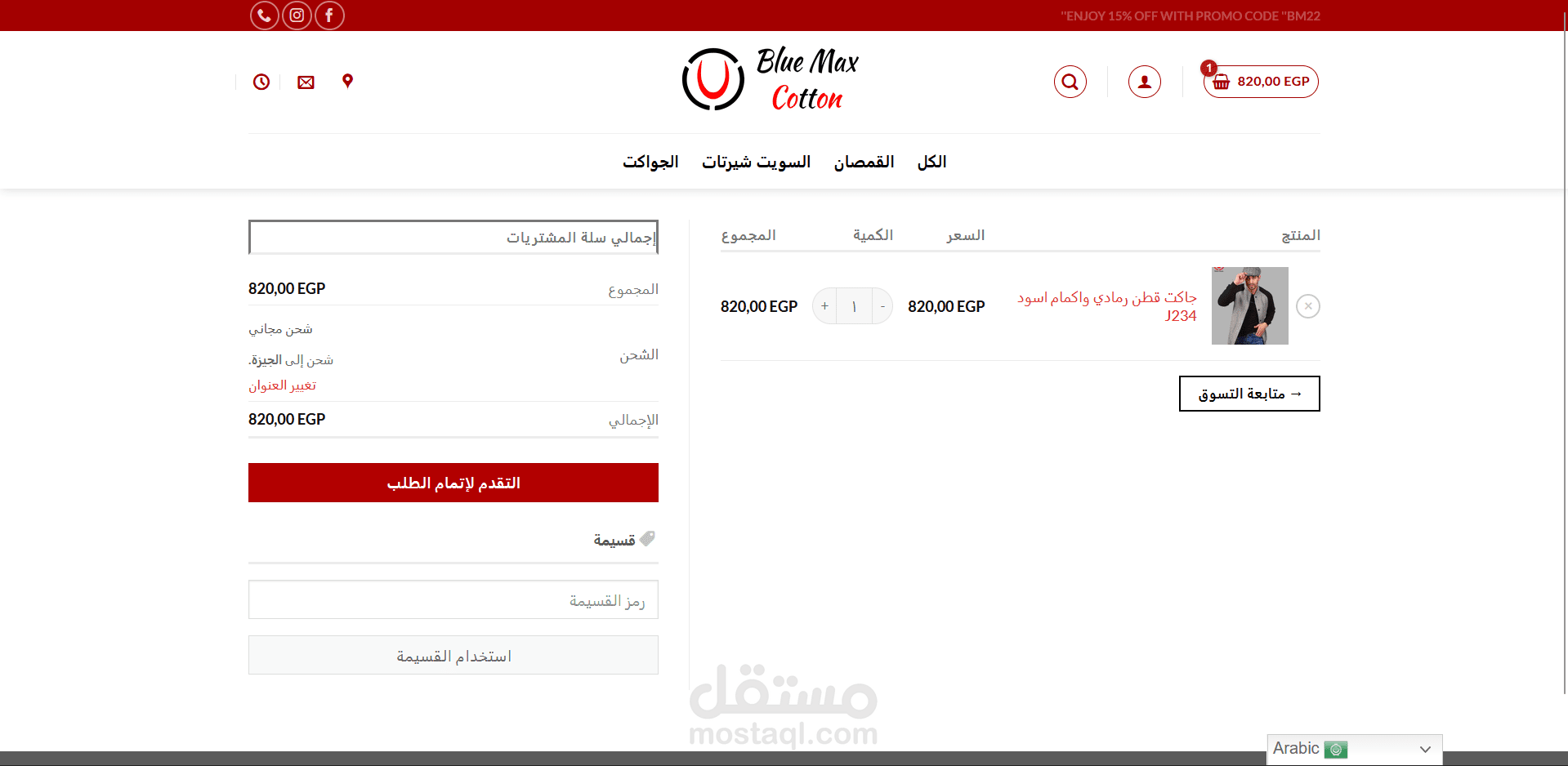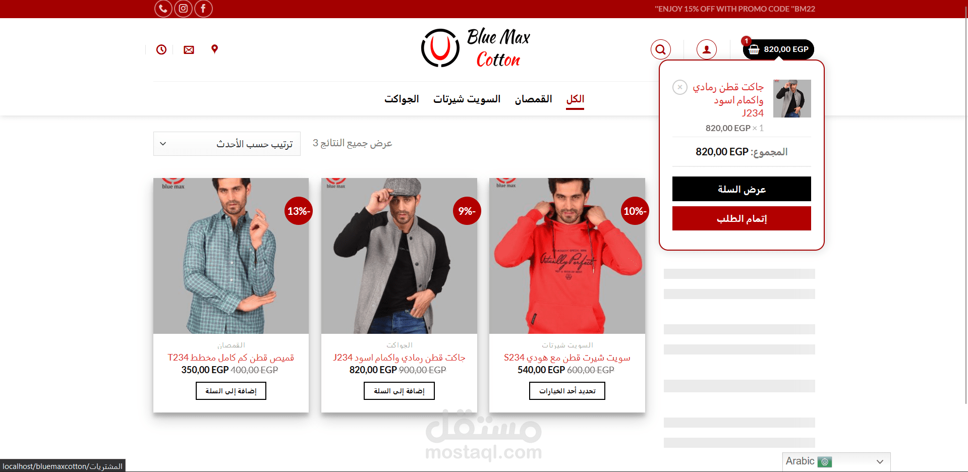 مشروع تسليم متجر الكتروني لمصنع ومحلات ملابس قطنية