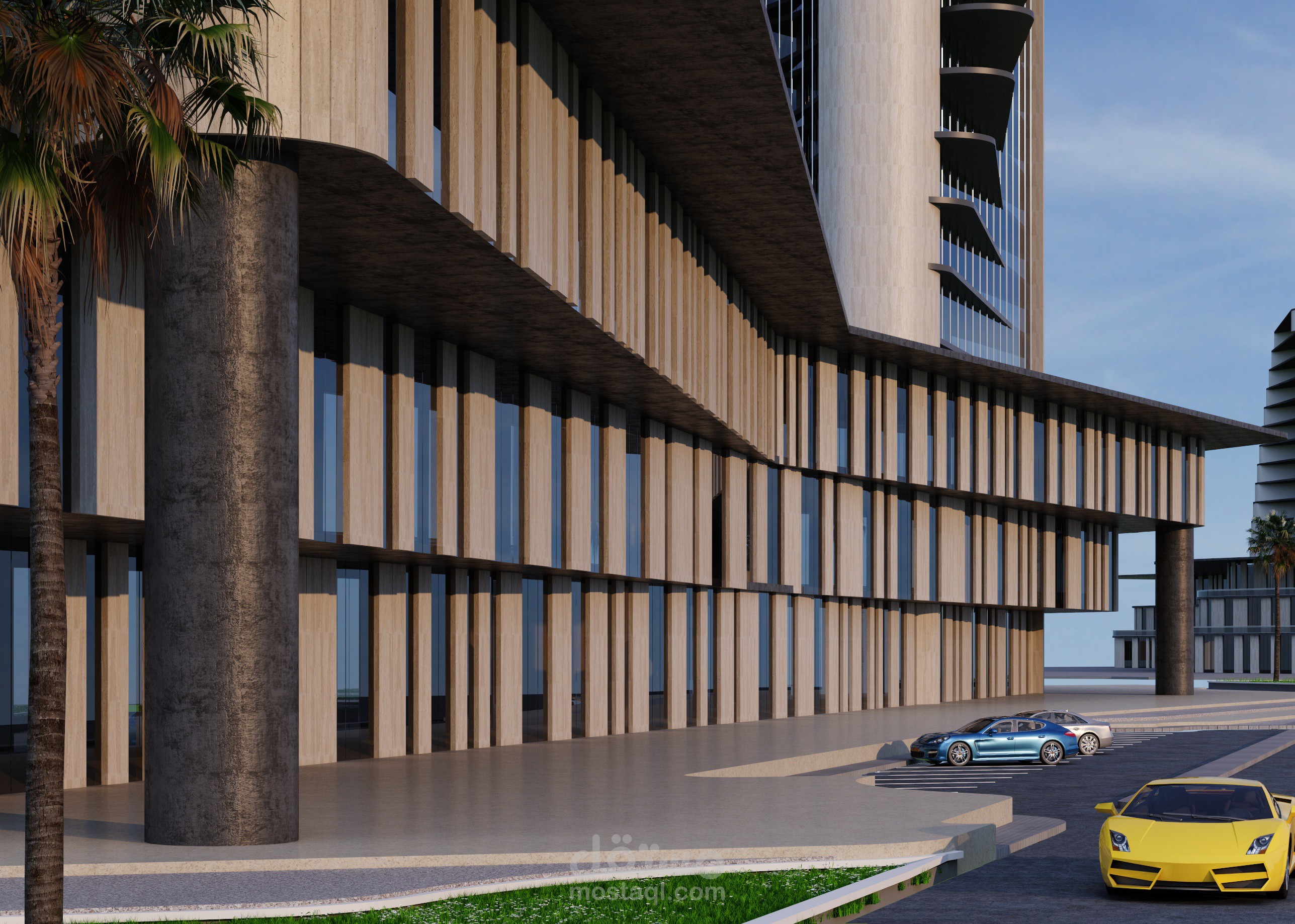 تتضمن الطابق الأرضي صالات أفراح ومتعددة وسوبر ماركت