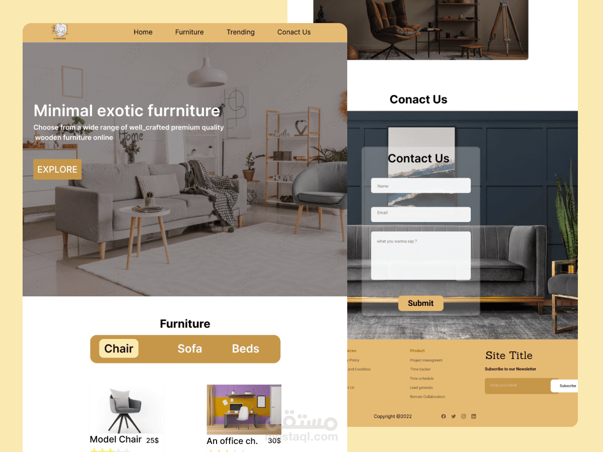تصميم صفحة هبوط لشركة اثاث ومن خلالها نعرض اطقم الاثاث ونحن هنا لابراز جمال شركة الاثاث