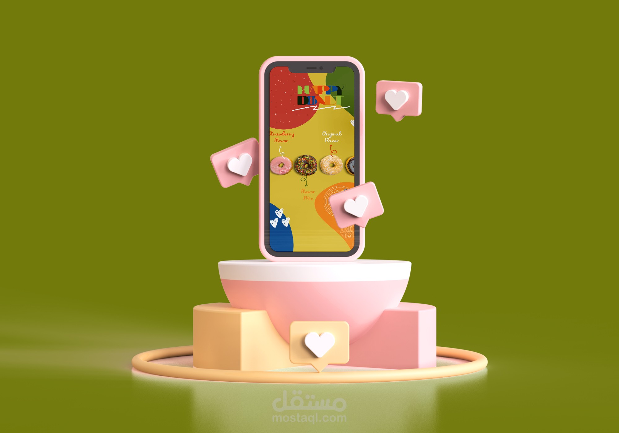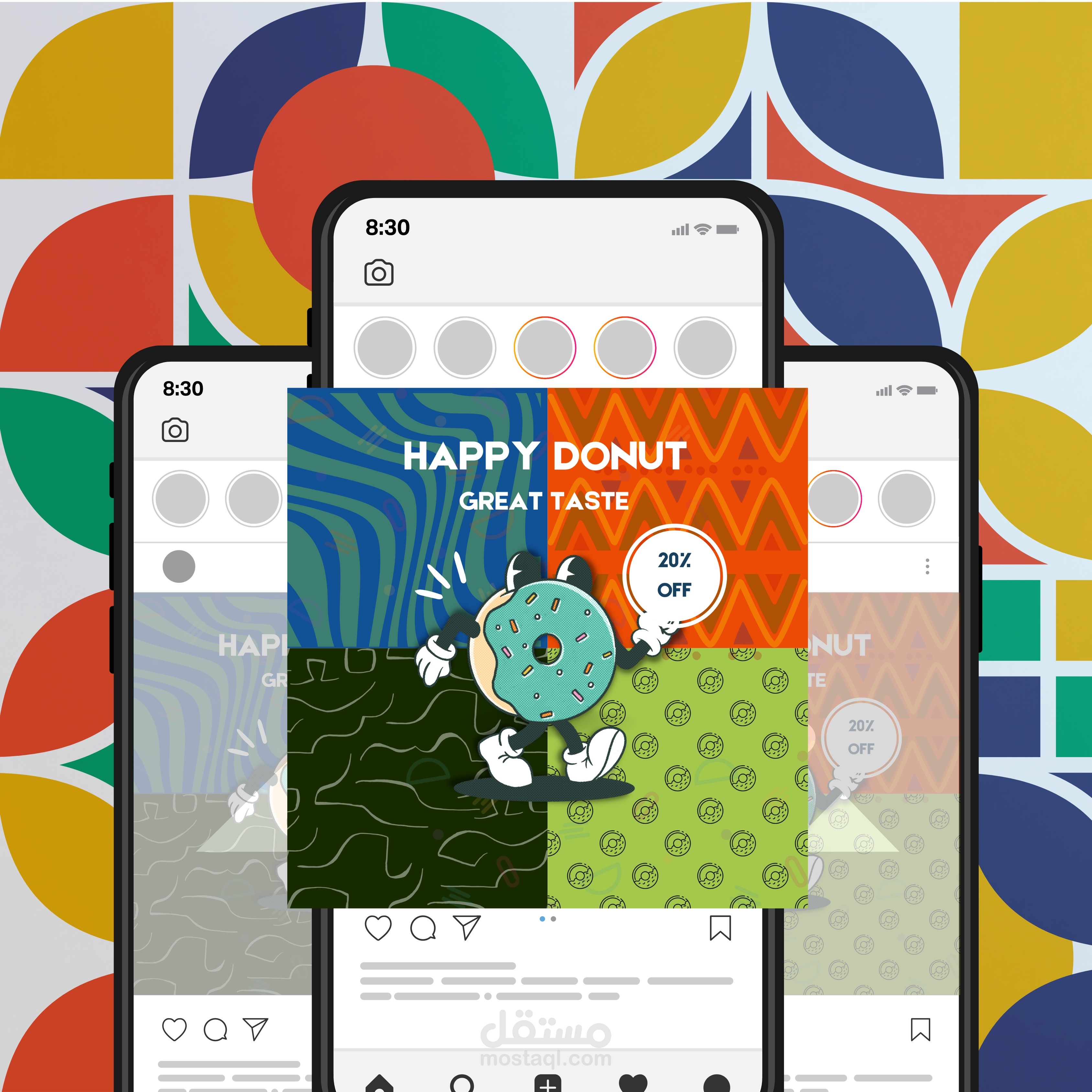 تصميم براند دونات على طريقة ومنهجية واسس تصميم مدرسة الباوهاوس .