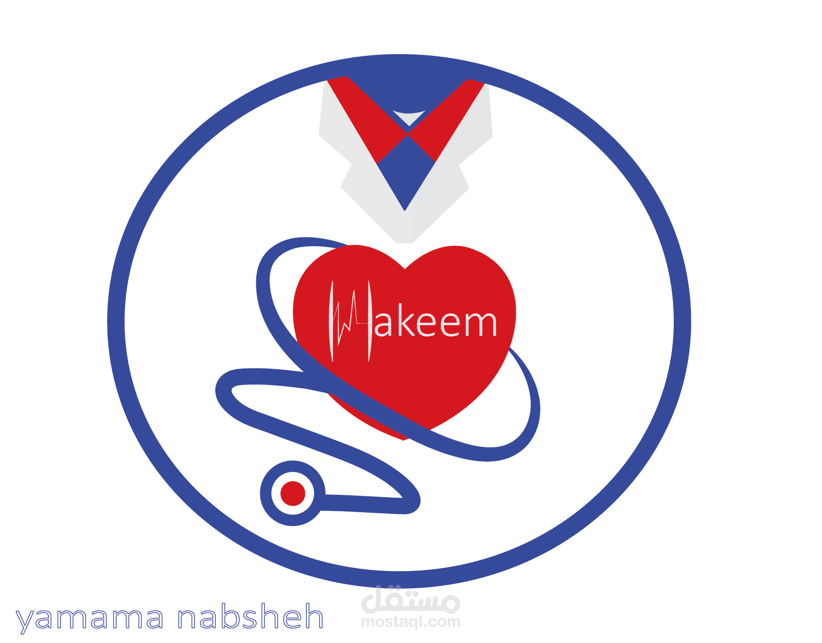 شعار طبي مستوحى من السماعة الطبية والرداء الأبيض اللمميز للأطباء , تم تصميمه باستخدام اليسترايتور