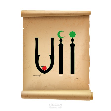 تصميم هويه بصريه علي الطراز الأسلامي برقم 711 مع أضافه رمز التفاحة الحمراء و القمر و النجمه الأسلامية علي الثلاث ارقام بالتتابع وأضافه بعض الكلمات المختارة أسفل كل رقم