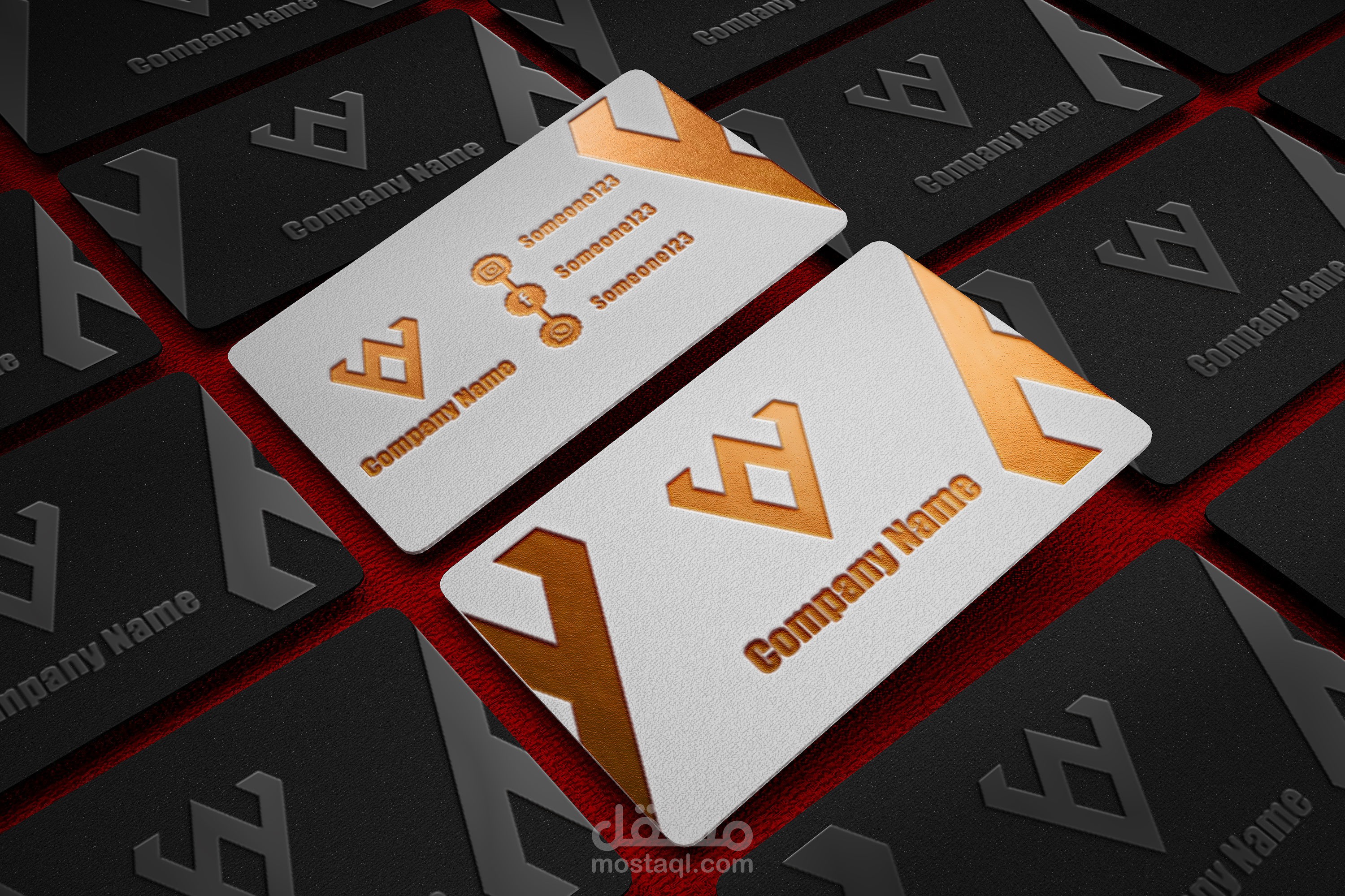 تصميم هوية بصرية مكونه من شعار و بطاقة عمل اللوجو عباره عن دمج بين الحرفين V W الوان الهوية عباره عن اللون الذهبي و الخلفيه سوداء أو بيضاء مع الأفضلية للسوداء