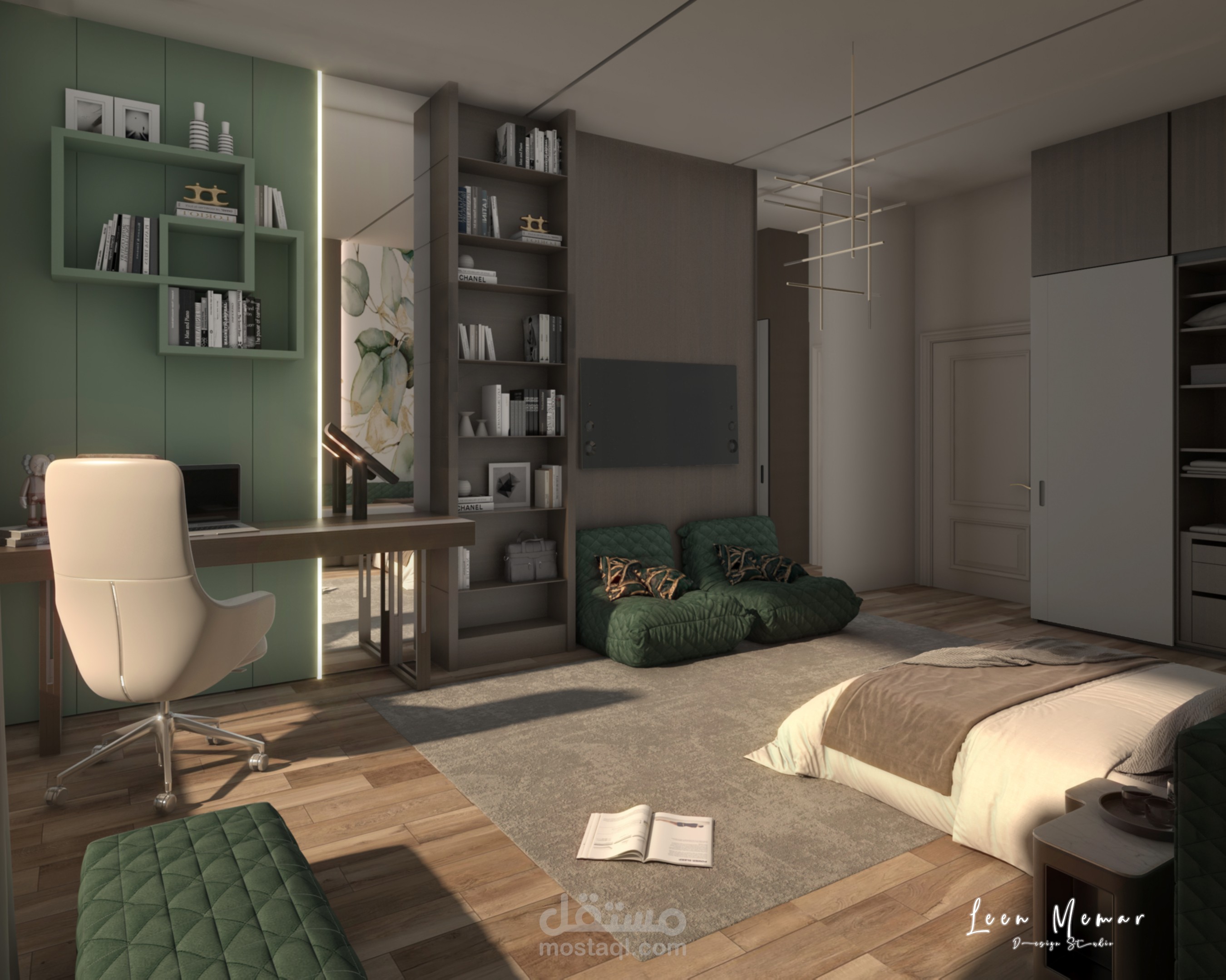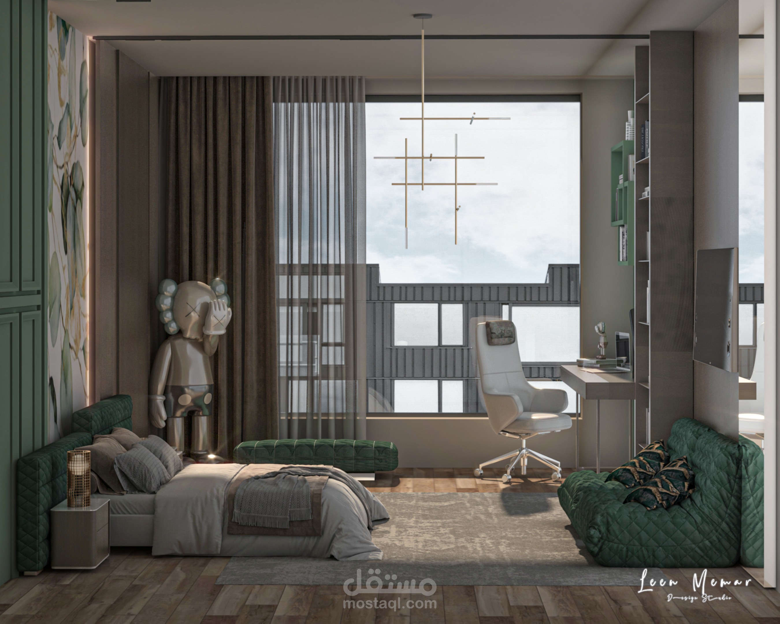 غرفة نوم شخصية , بمساحة 30 متر مربع ..