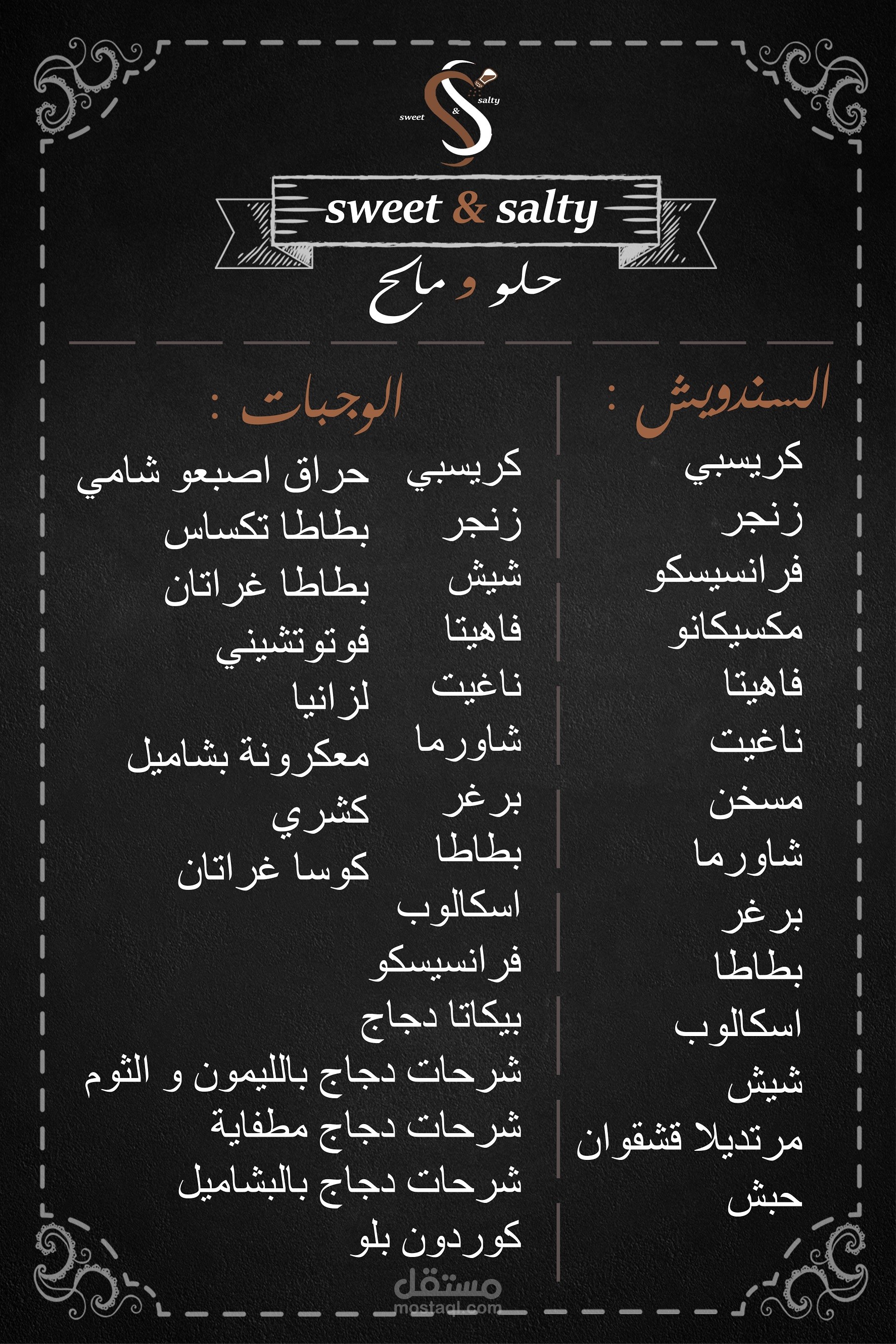تصميم لوغو لمطعم sweet&salty مع Menu المطعم بالاضافة ل cover لصفحة الفيسبوك