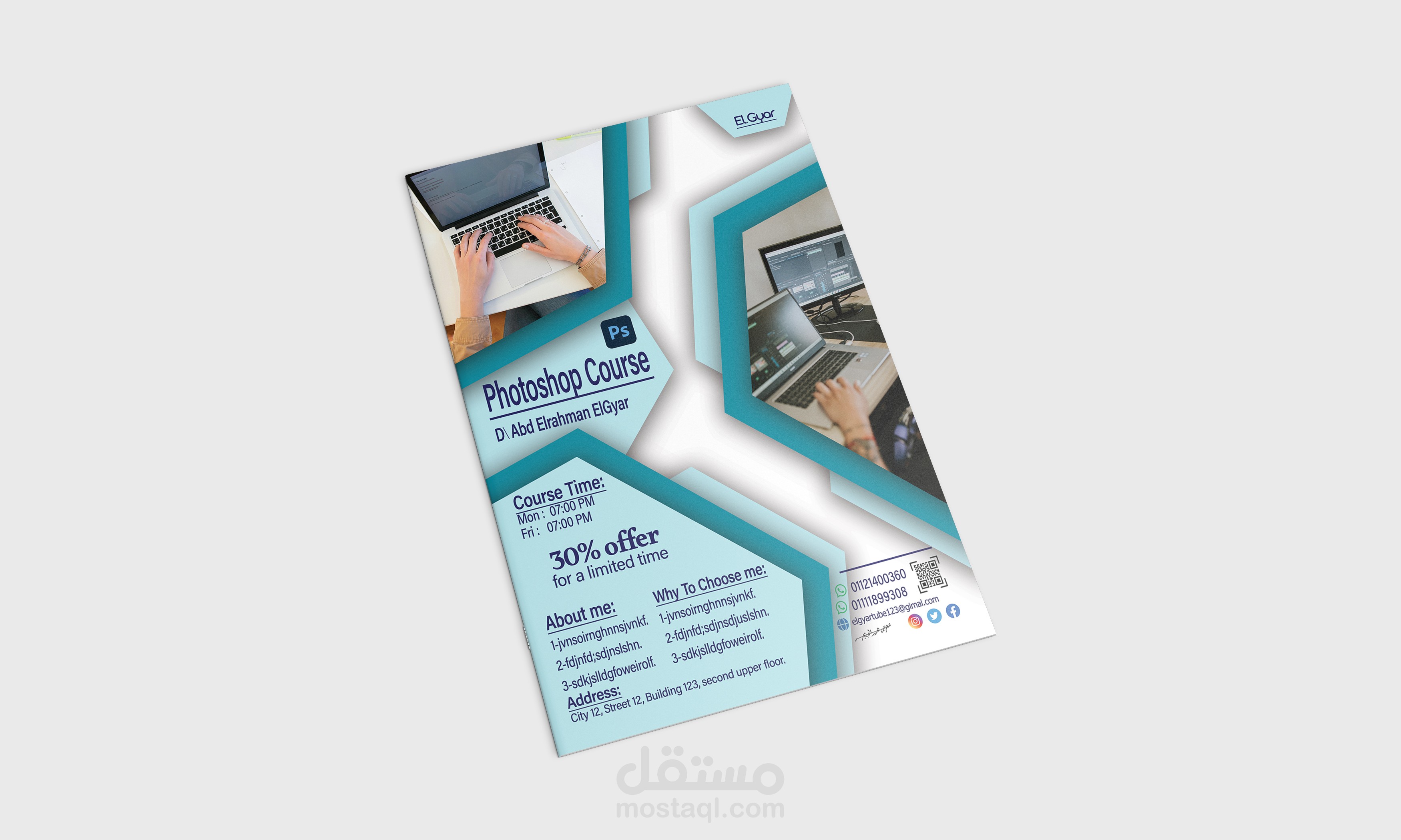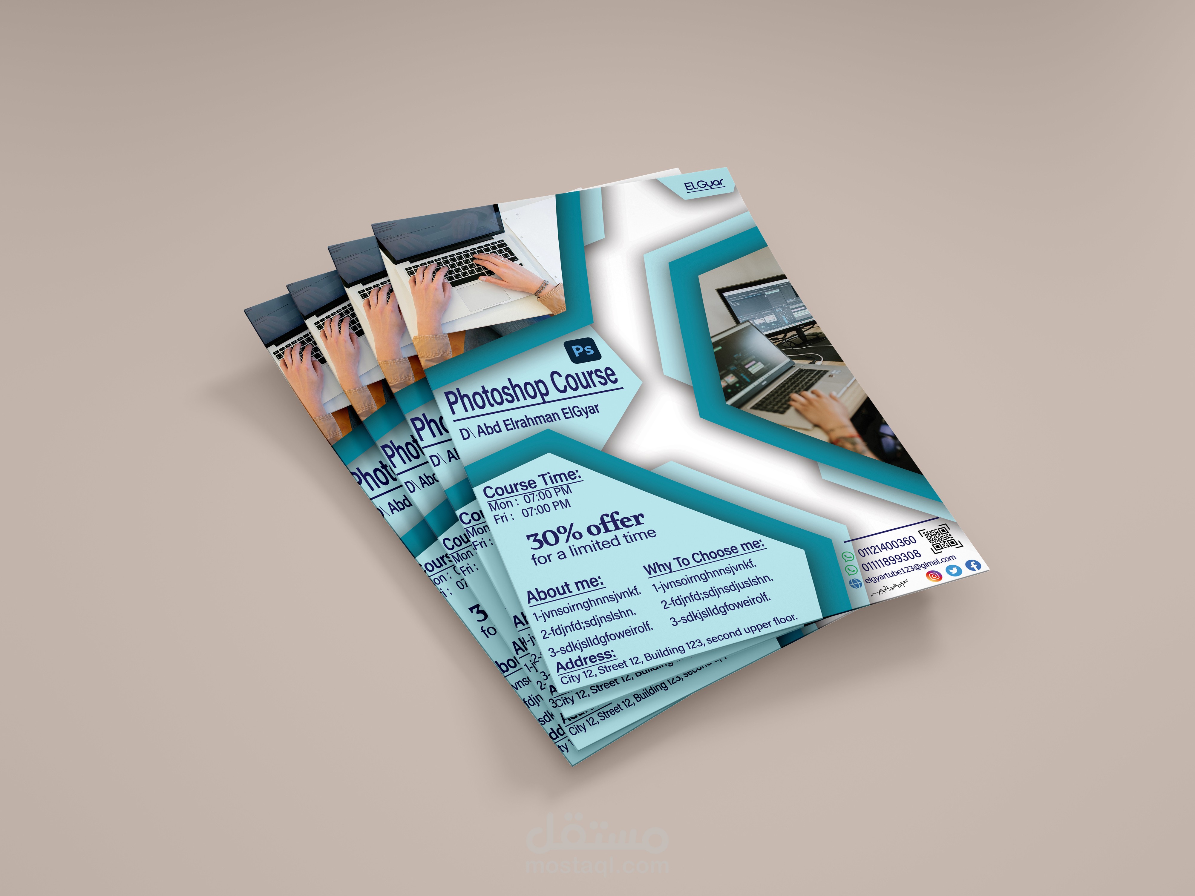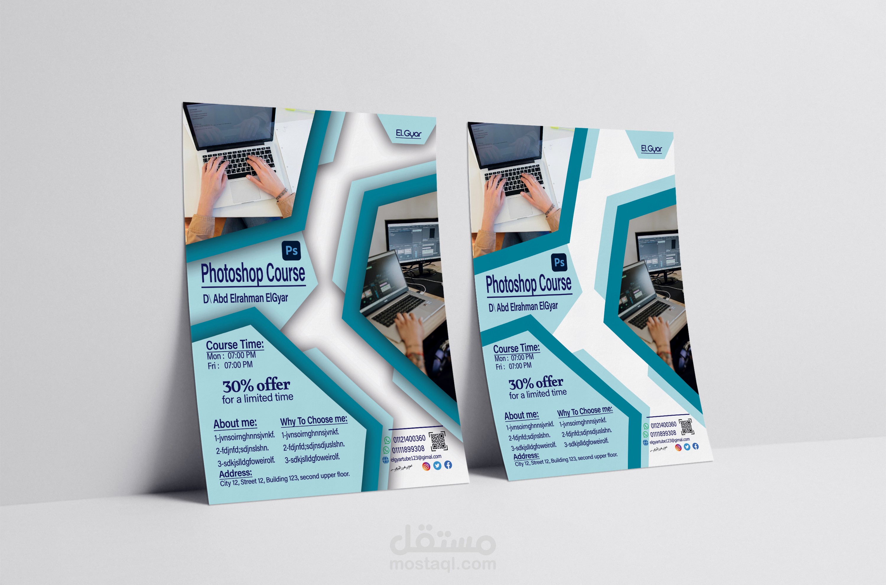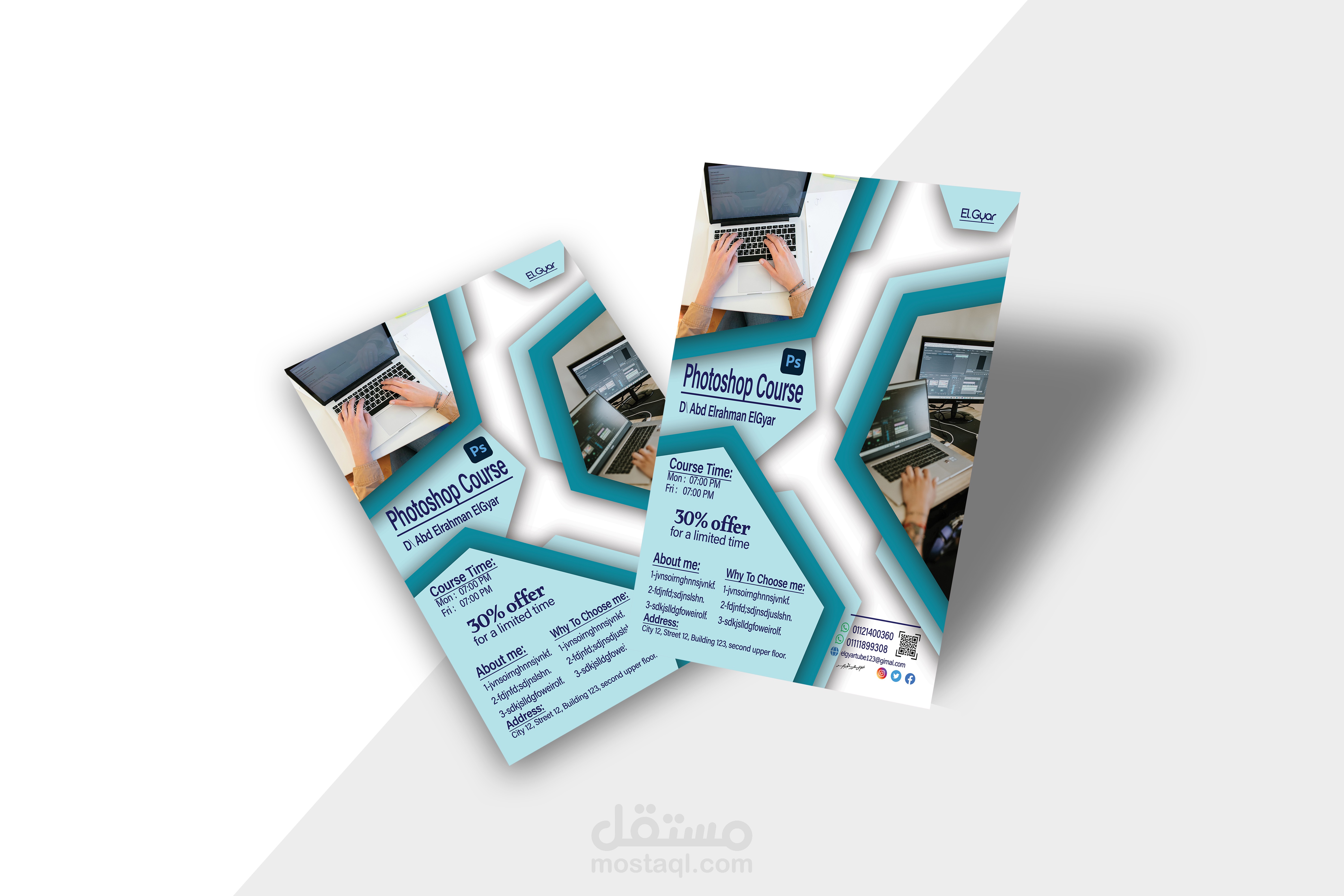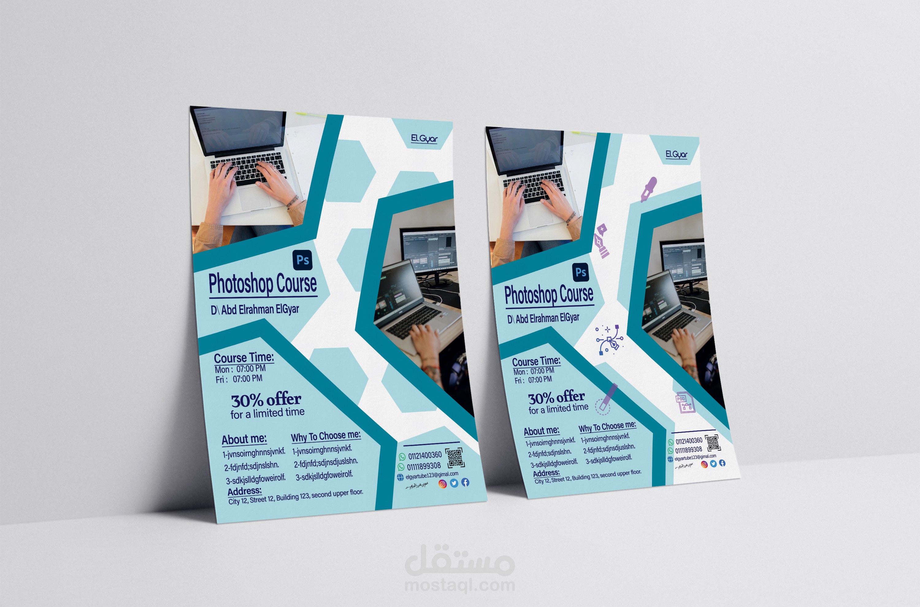 تصميم فلاير كورس فوتوشوب بطريقة جذابه و جديده بالتميز بالبساطة و الأبداع و الراحة البصرية للتصميم