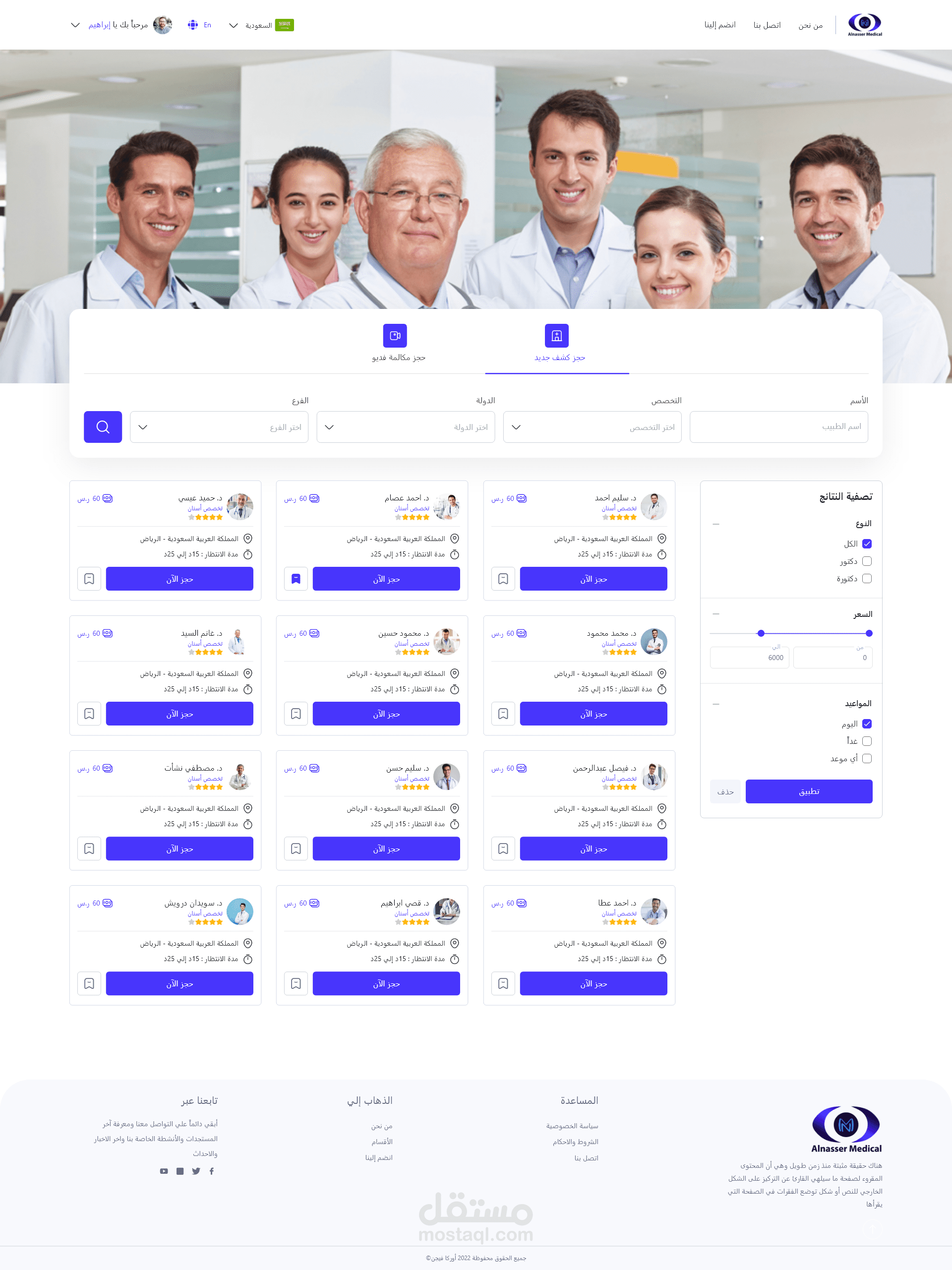موقع الكتروني لشركد النصر الطبي يتيح الحجز في كل فروع المستشفى عن طريق موقع او تطبيق في المكان او اونلاين