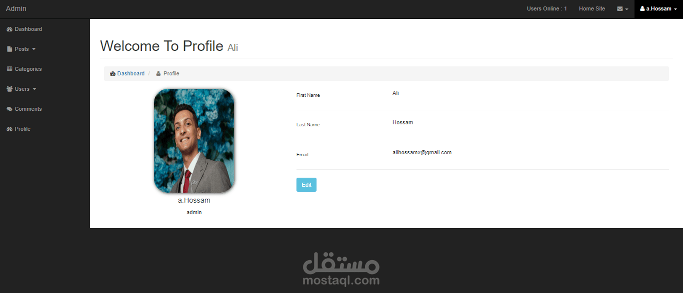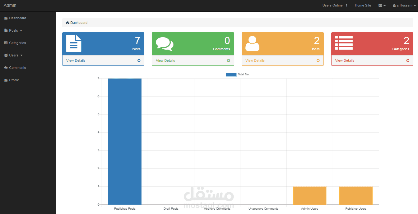 يمكنك استخدام الـ Registration system وعمل user جديد ومن ثم الدخول على Dashboard لمتابعة الـ posts والـ categories والـ comments والتعديل على البروفايل الخاص بك