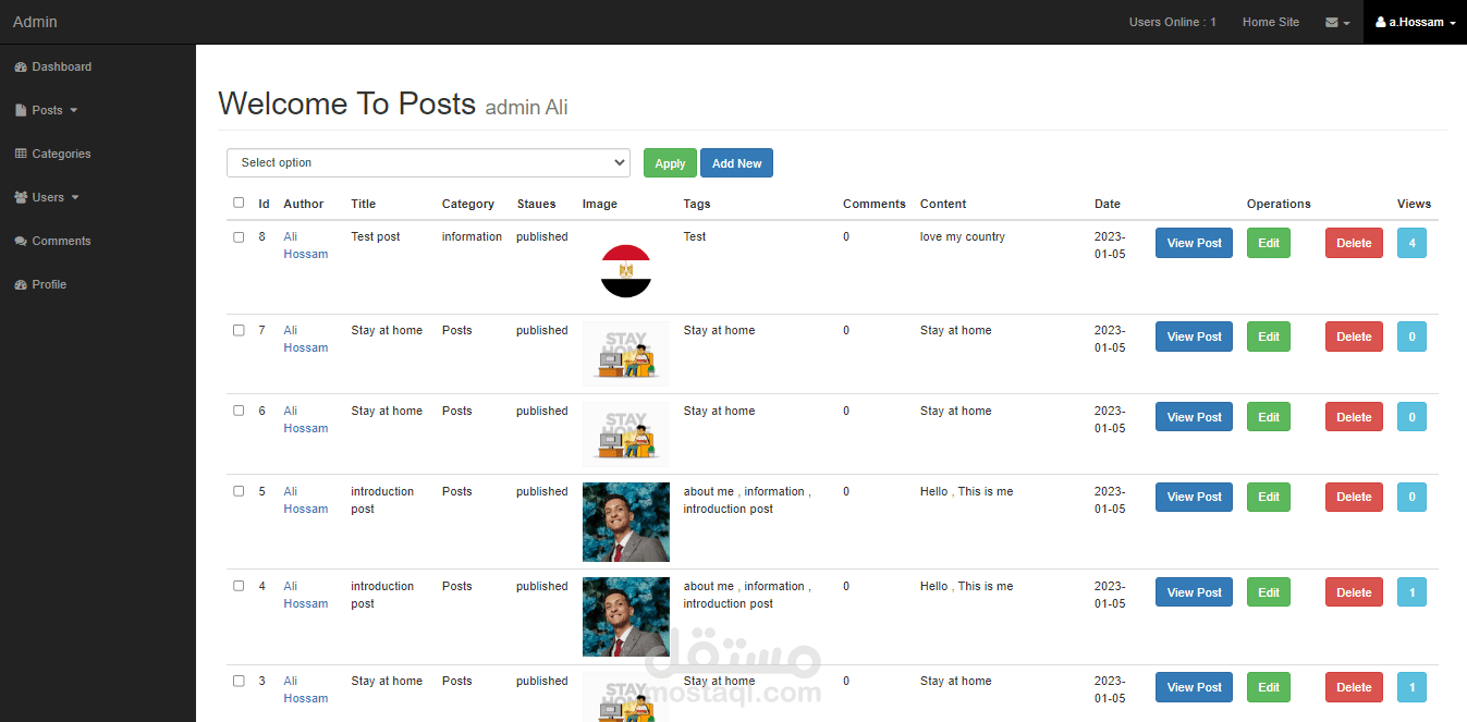 يوجد صلاحيات خاصة بكل مستخدم اذا كان admin فيمكن له تعديل او حذف او او انشاء posts