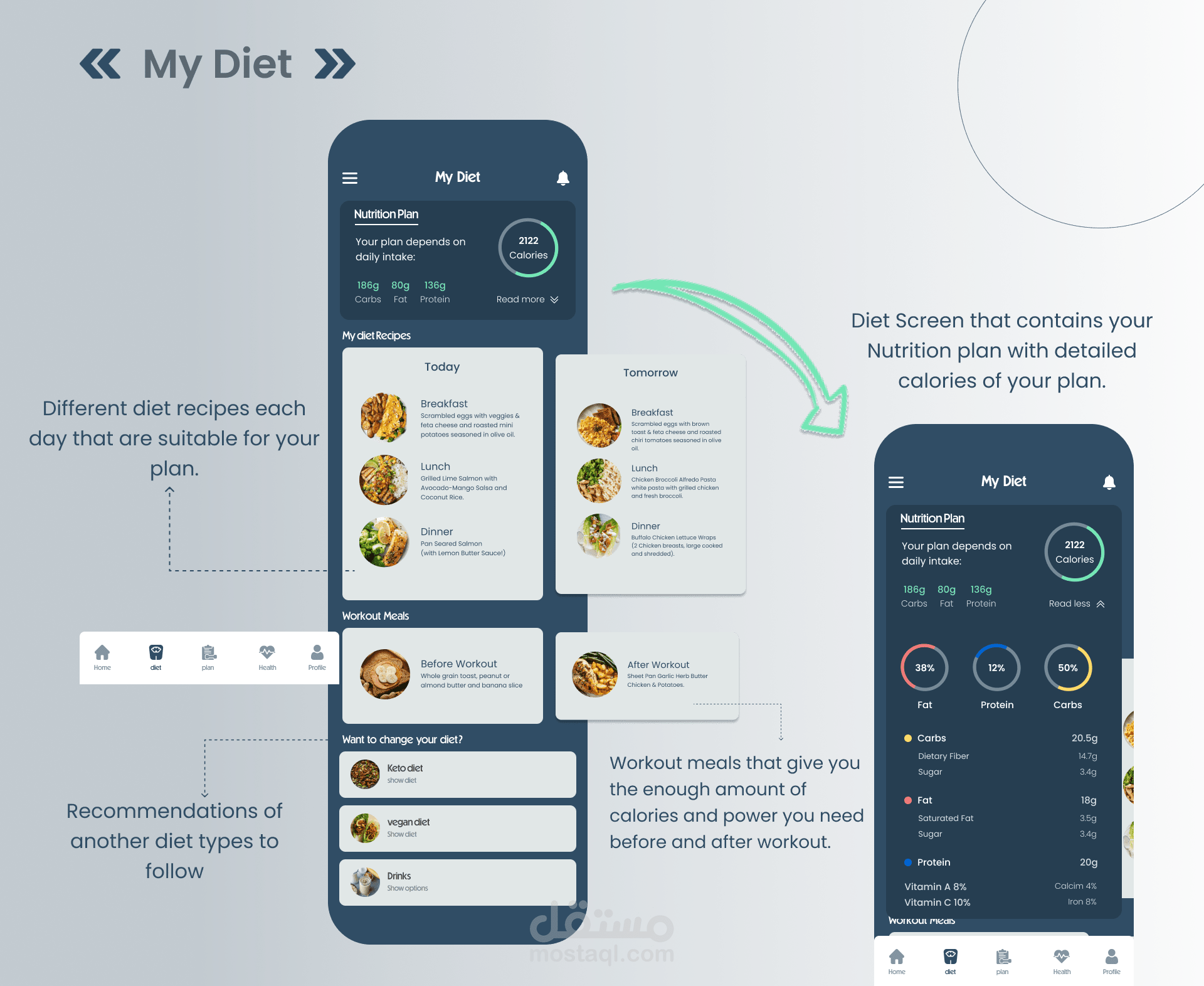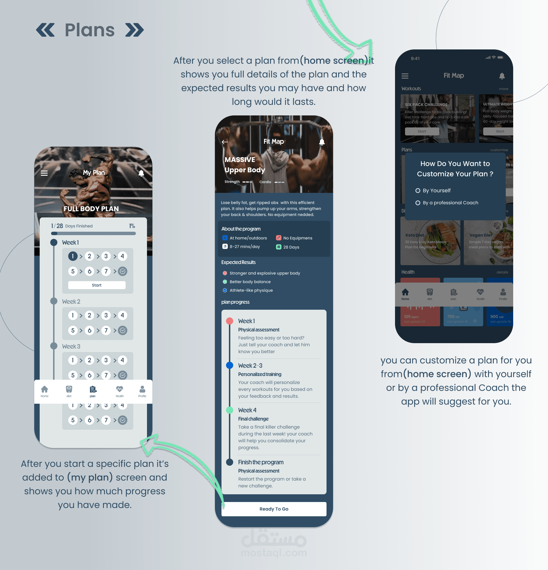 تطبيق يساعدك في الحصول على شكل الجسم الذي تريده بطريقه صحيه من خلال تقديم وصفات للوجبات المناسبه خلال اليوم وطريقة التمارين سواء في المنزل او الجيم او اي مكان ومتابعة مؤشرات الصحة الخاصه الخاصه بك