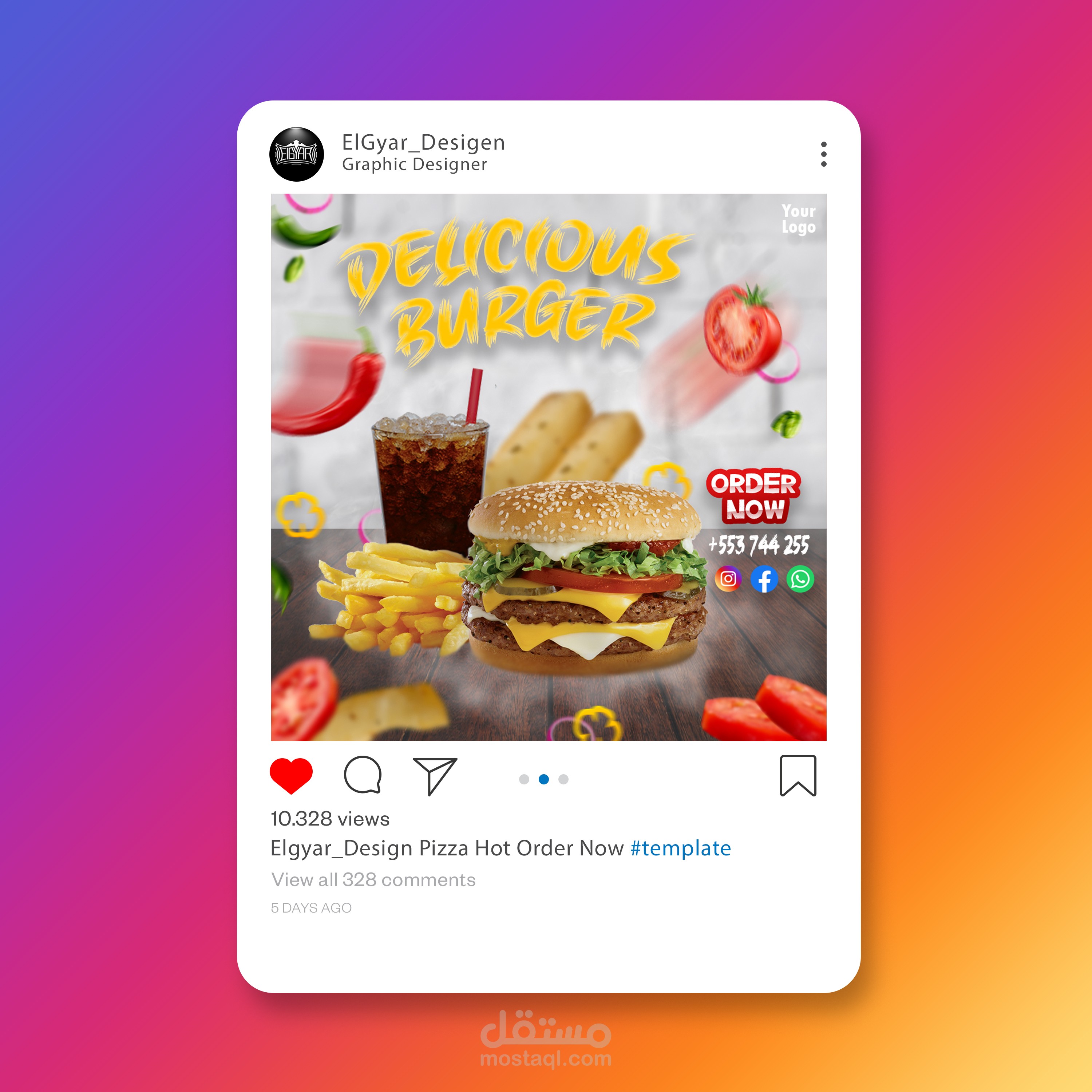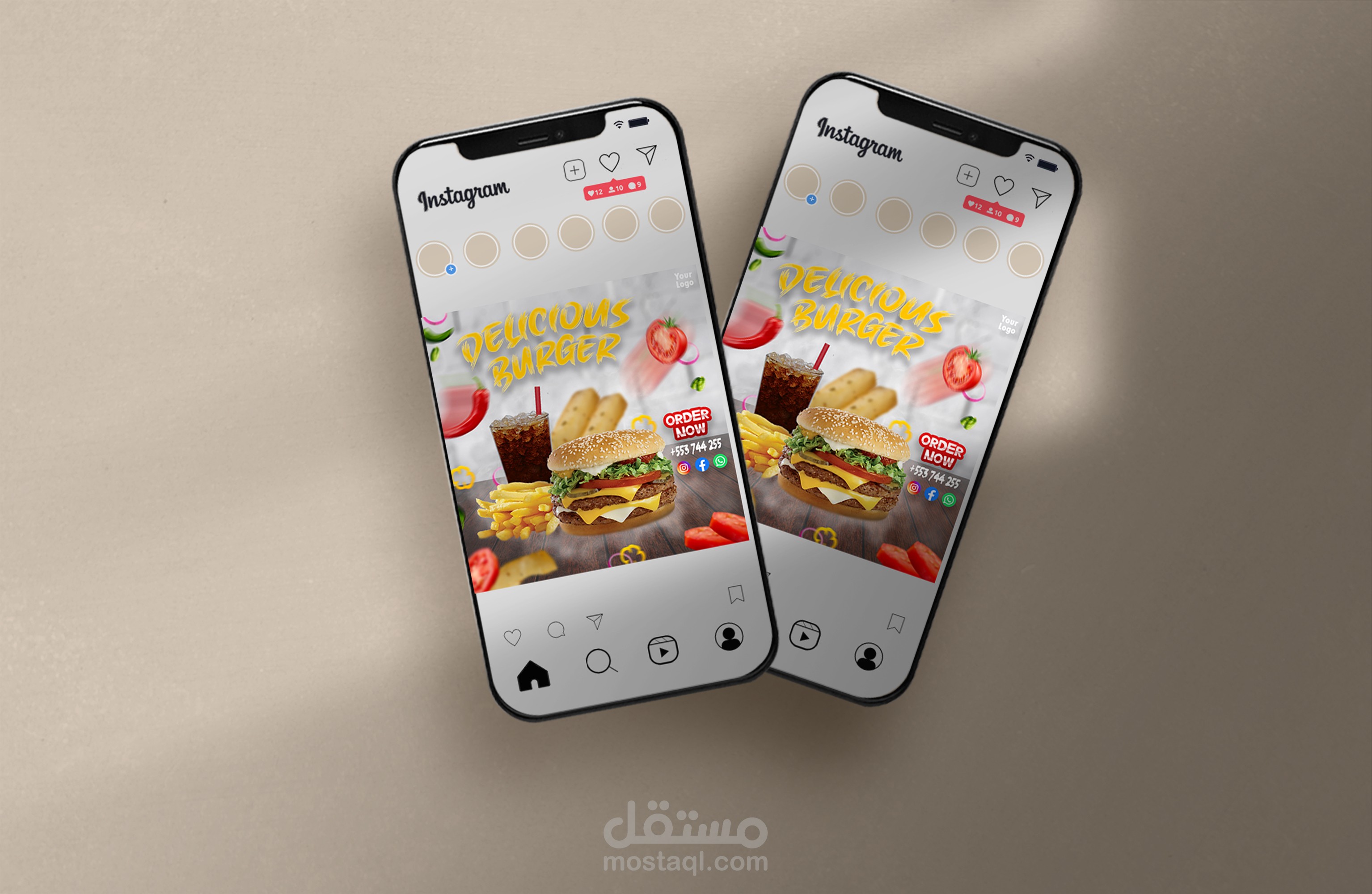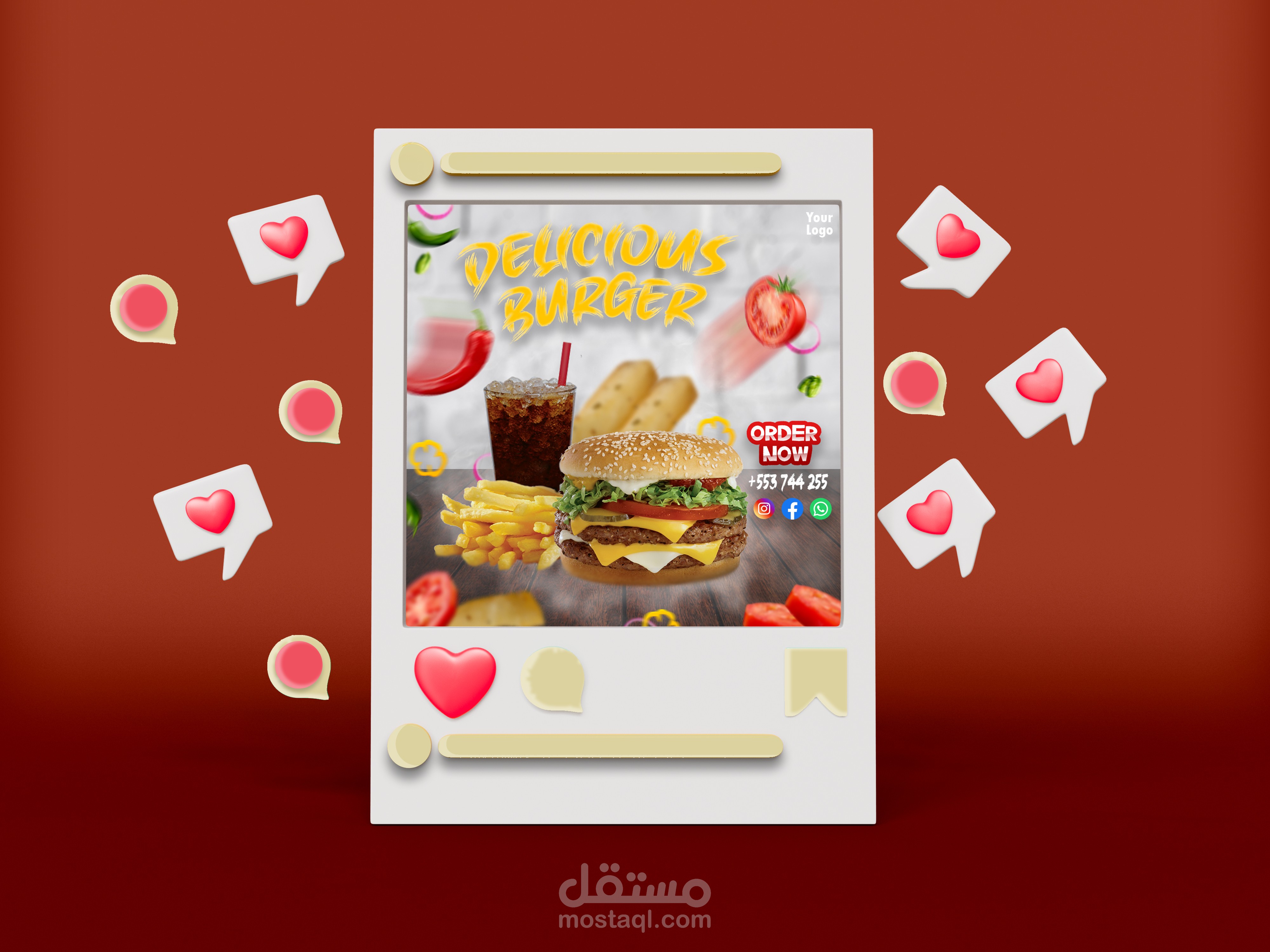 تصميم أخر لبوستر دعاية البرجر اللذيذ ذو الطعم الرائع و الجديد أطلبة الأن