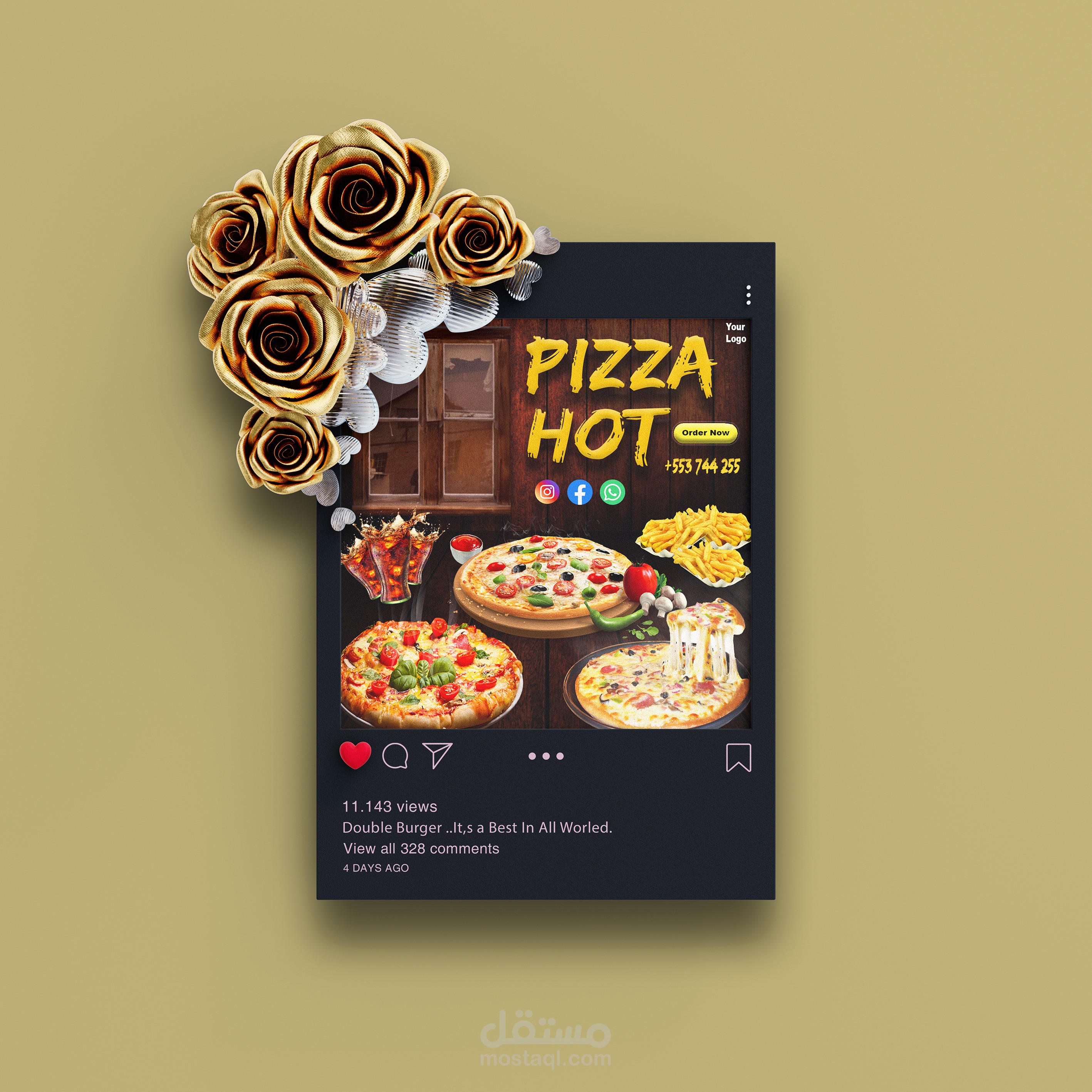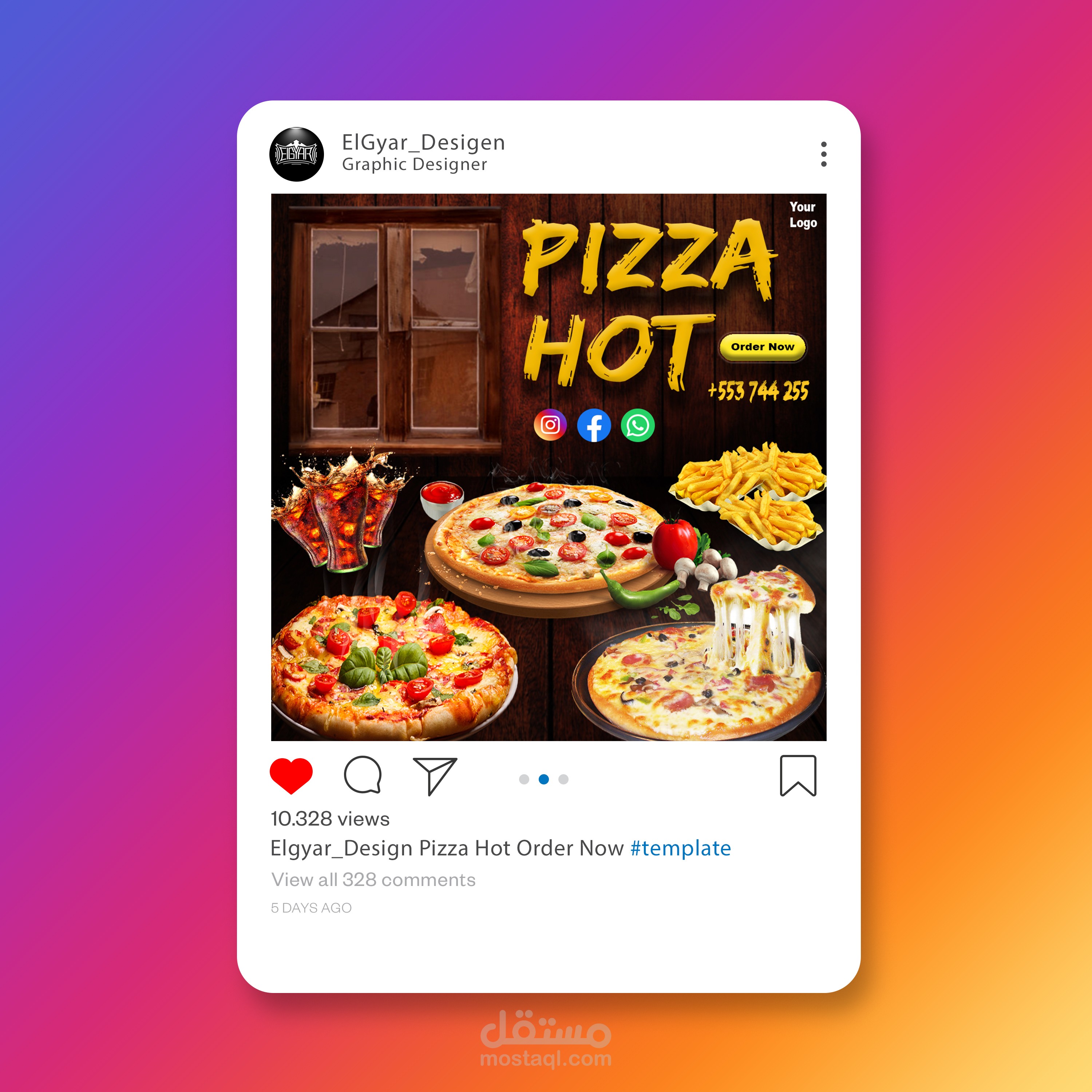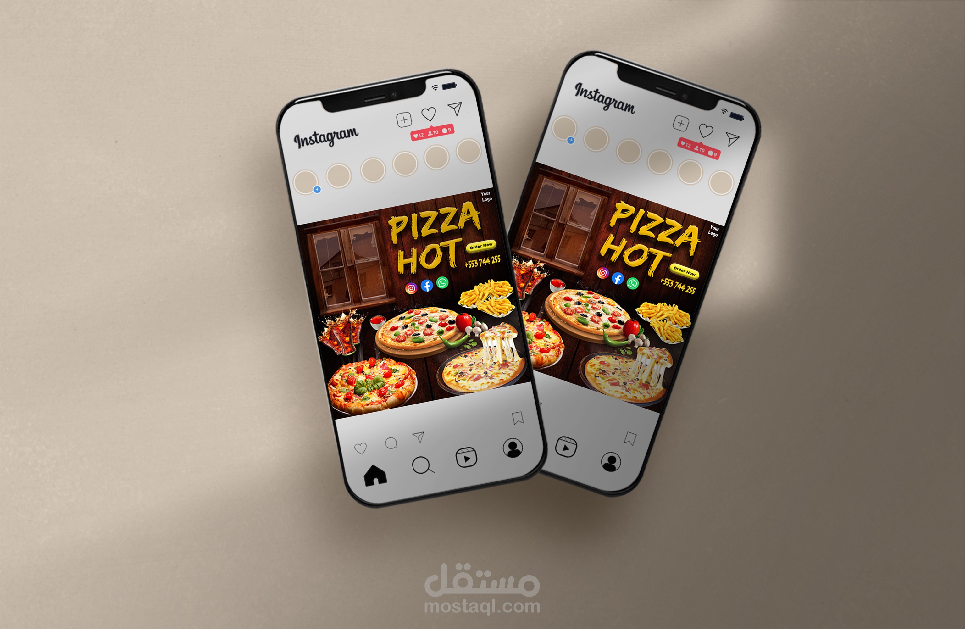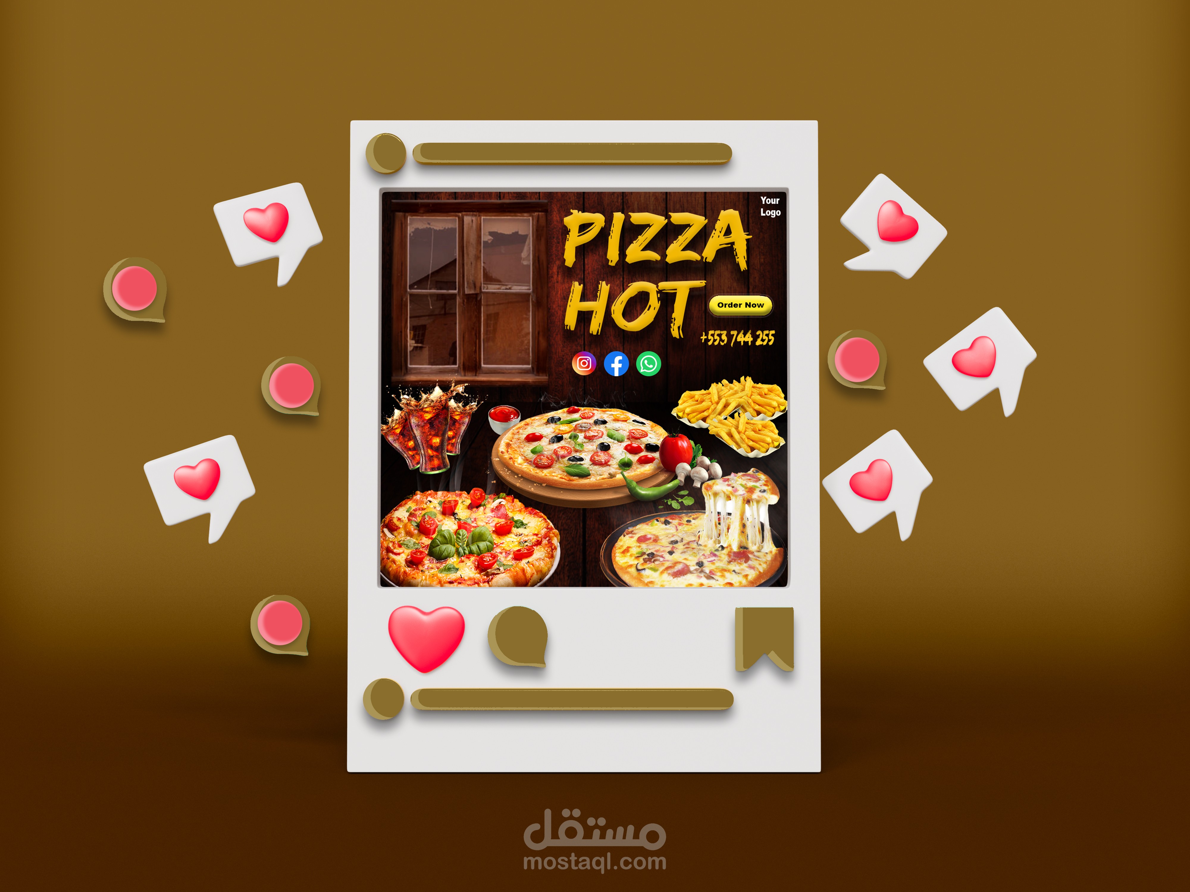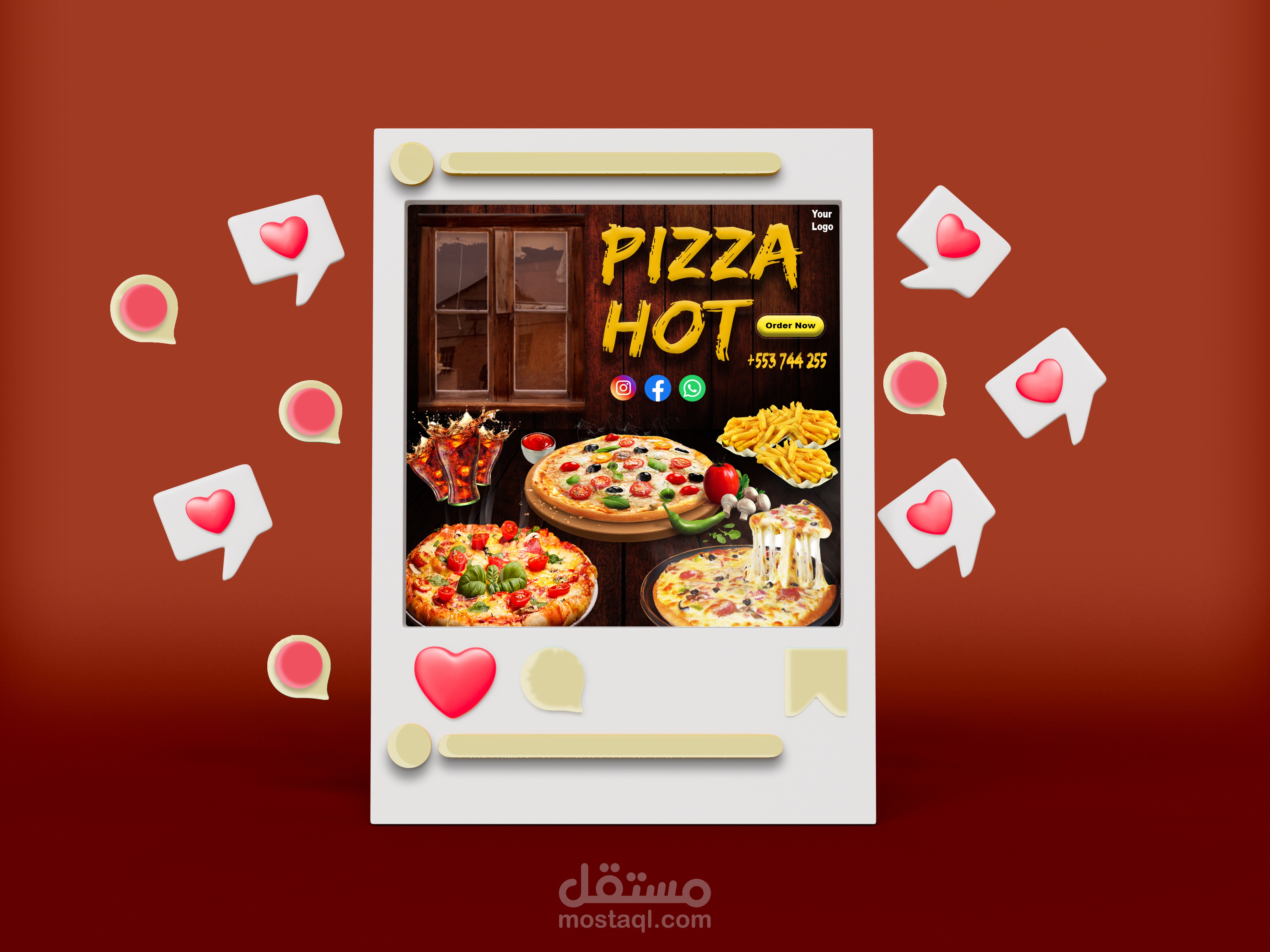 تصميم بوست لمطعم بيتزا هوت لأفضل أنواع البيتزا الساخنه والألذ طعما ، إطلبها الأن.