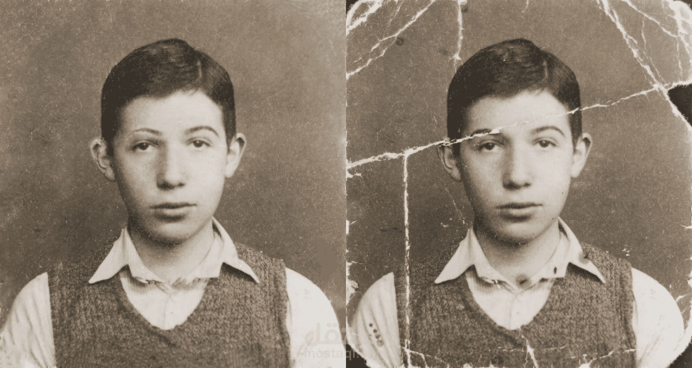 تم ترميم وتحسين صورة قديمة ممزقة عبر برنامج فوتوشوب