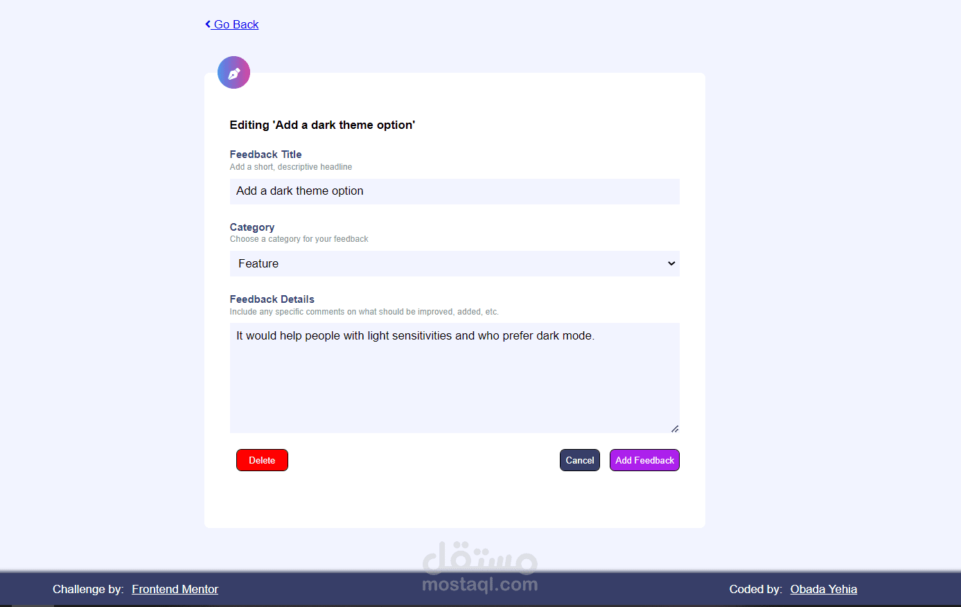 DESIGN FEEDBACK APP USE HTML/CSS