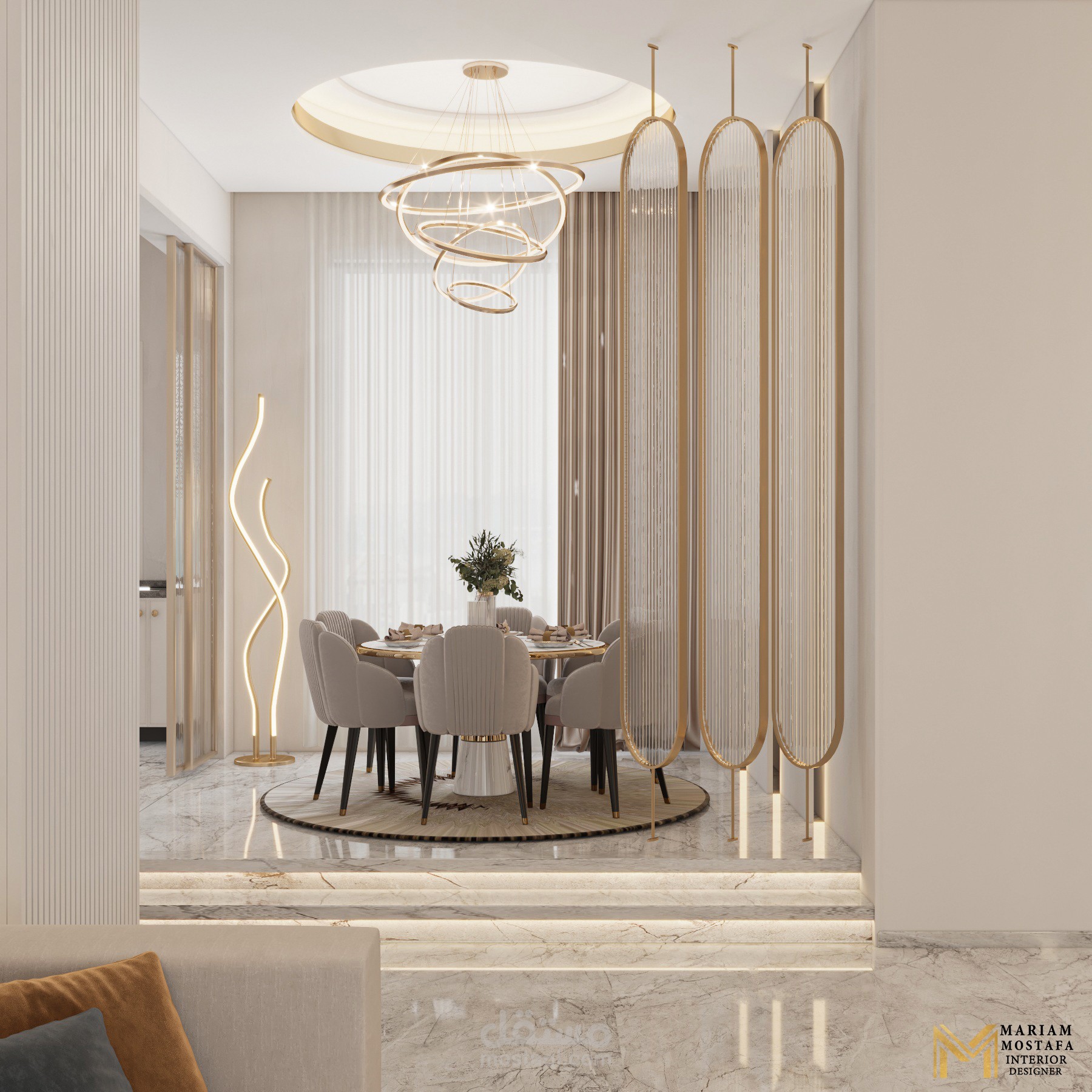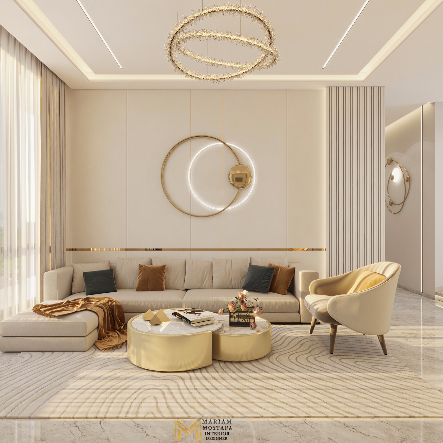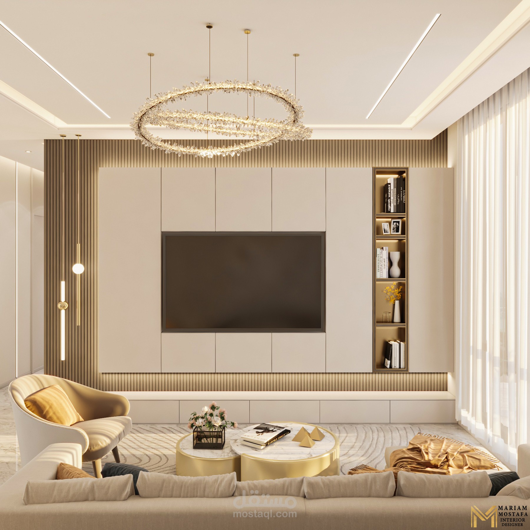 تصميم صالة معيشية بألوان هادئة