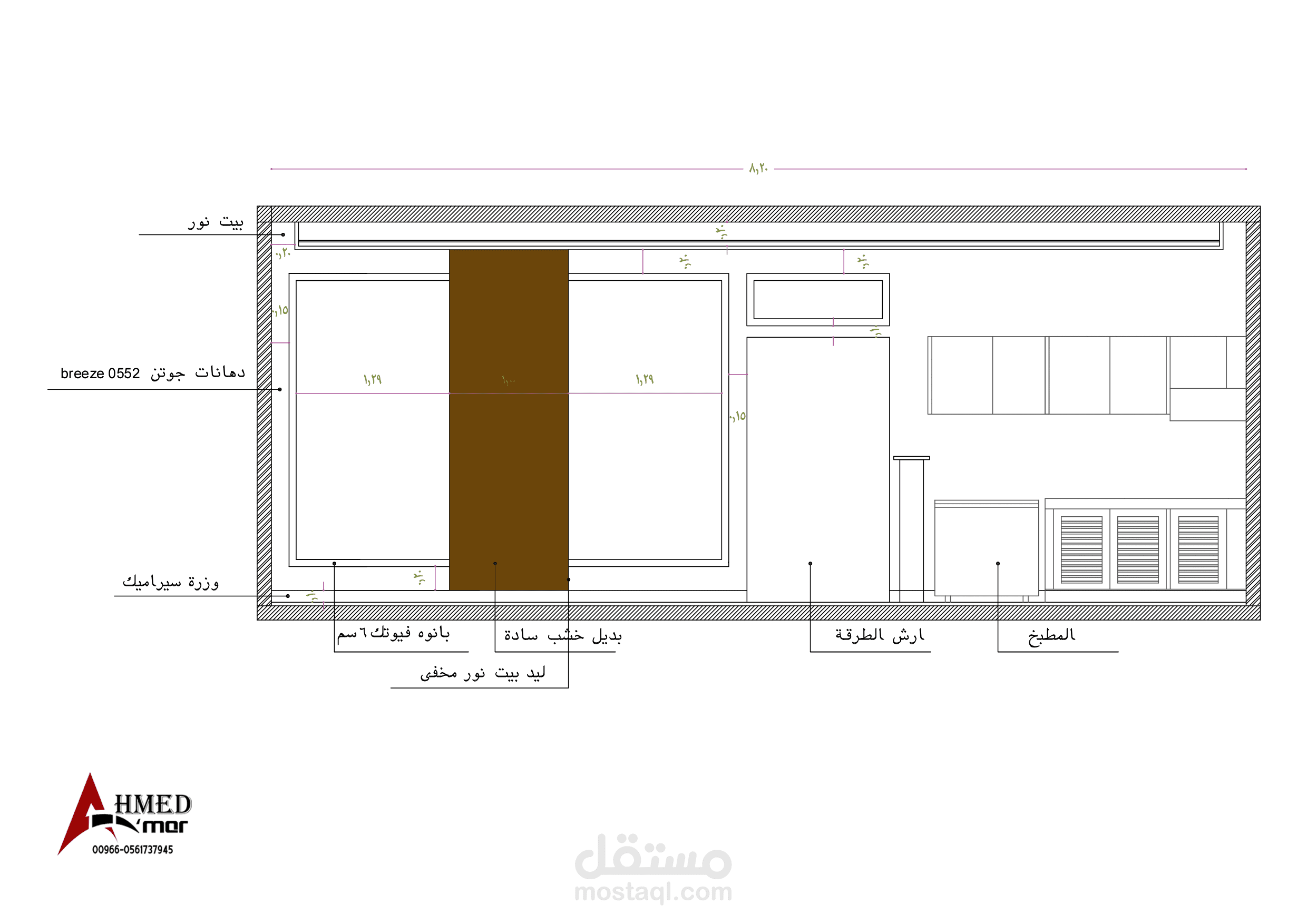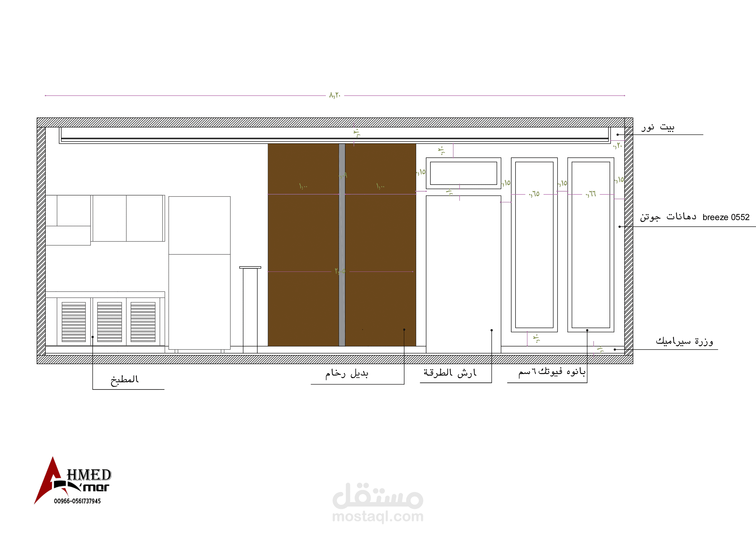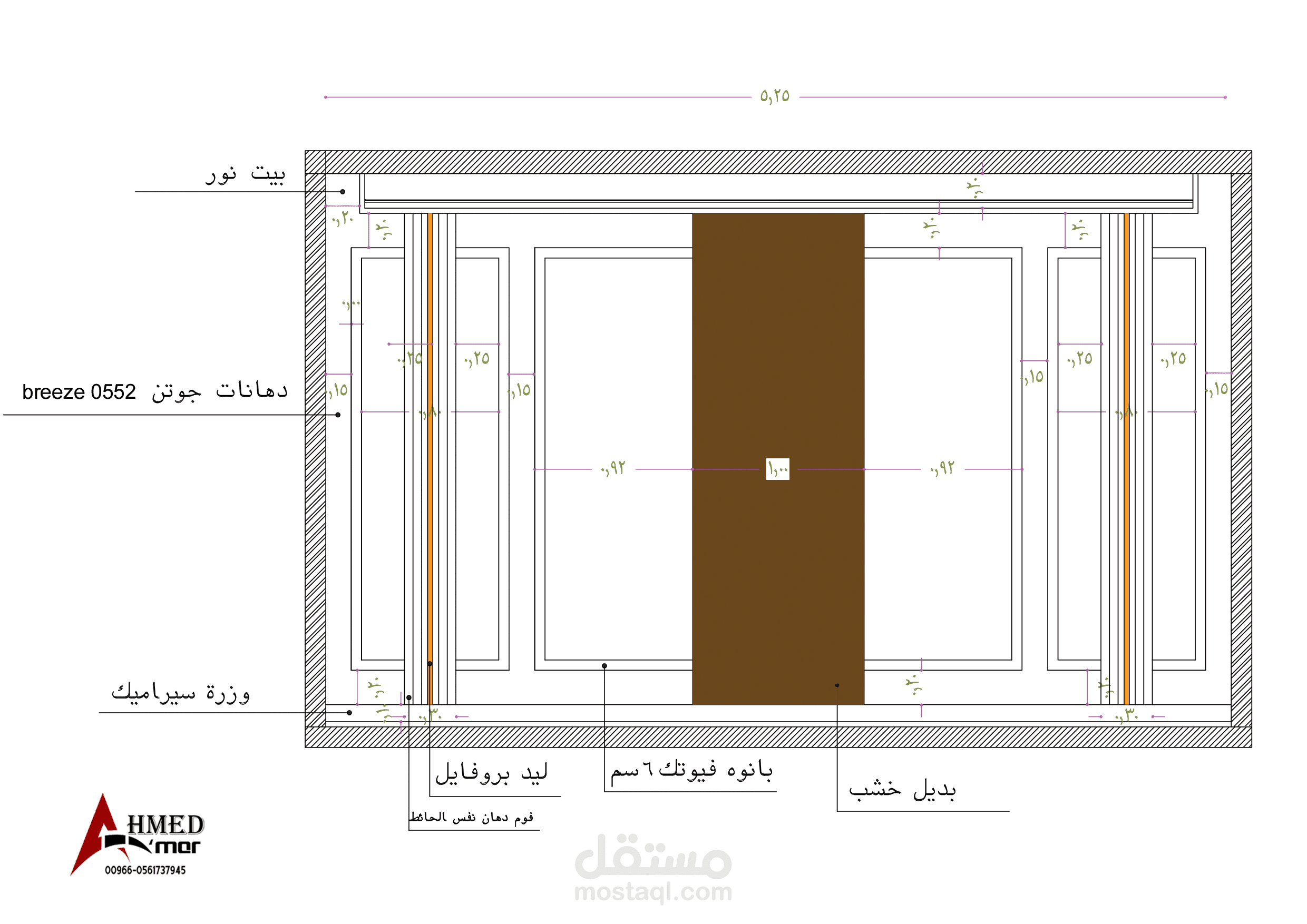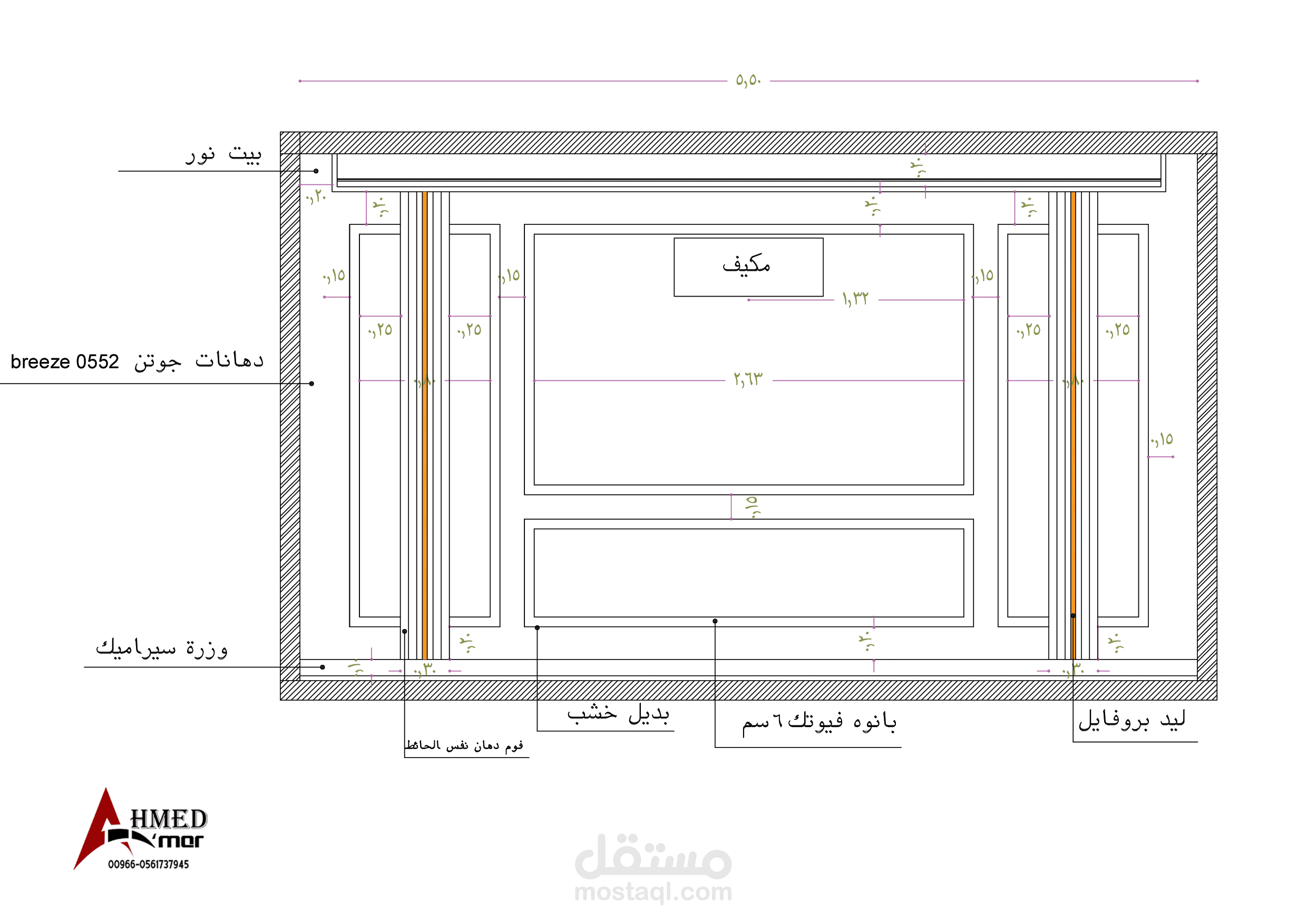 الكاملة للتصميم وتوضيح كافة الأبعاد والخامات المستخدمة .