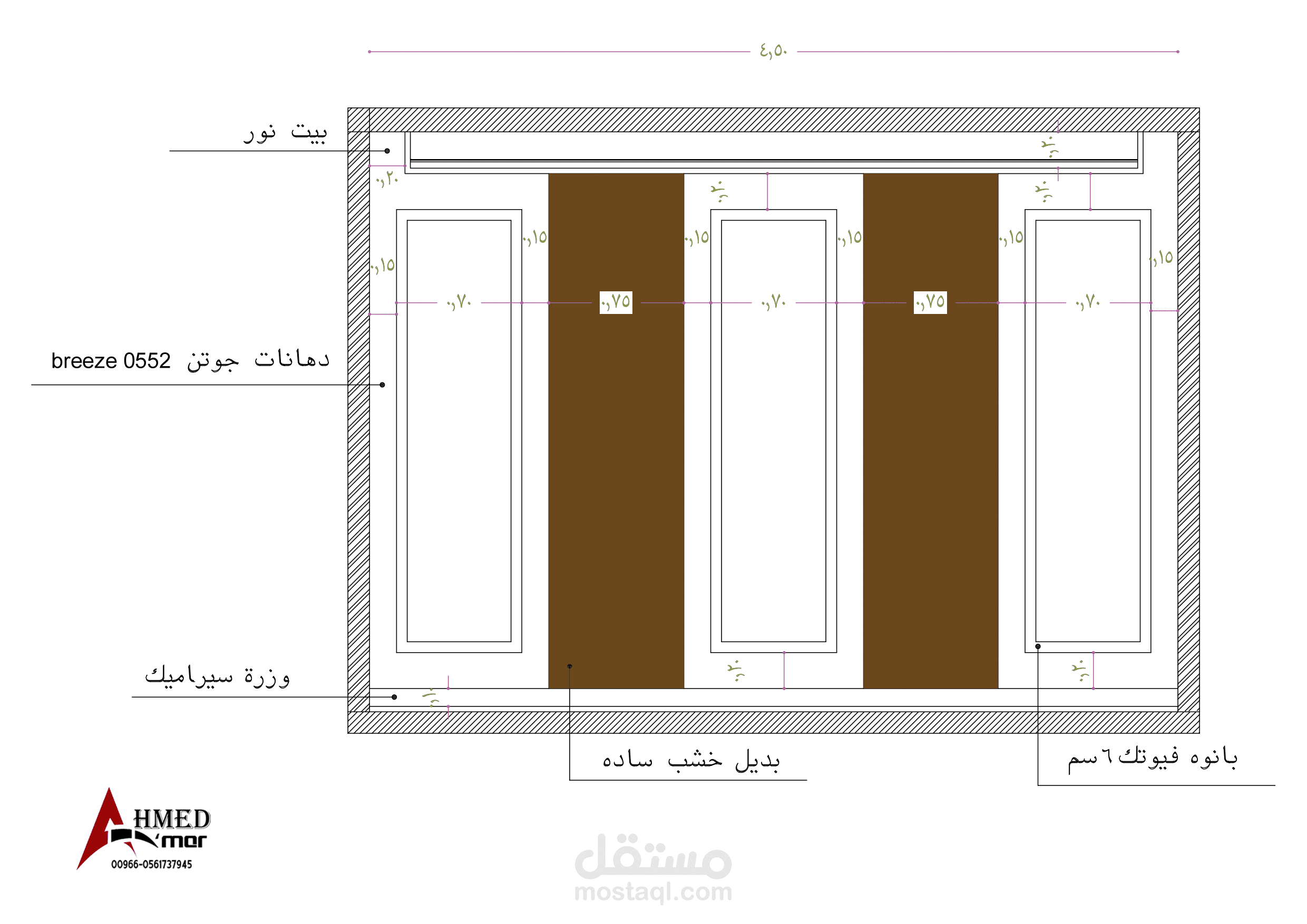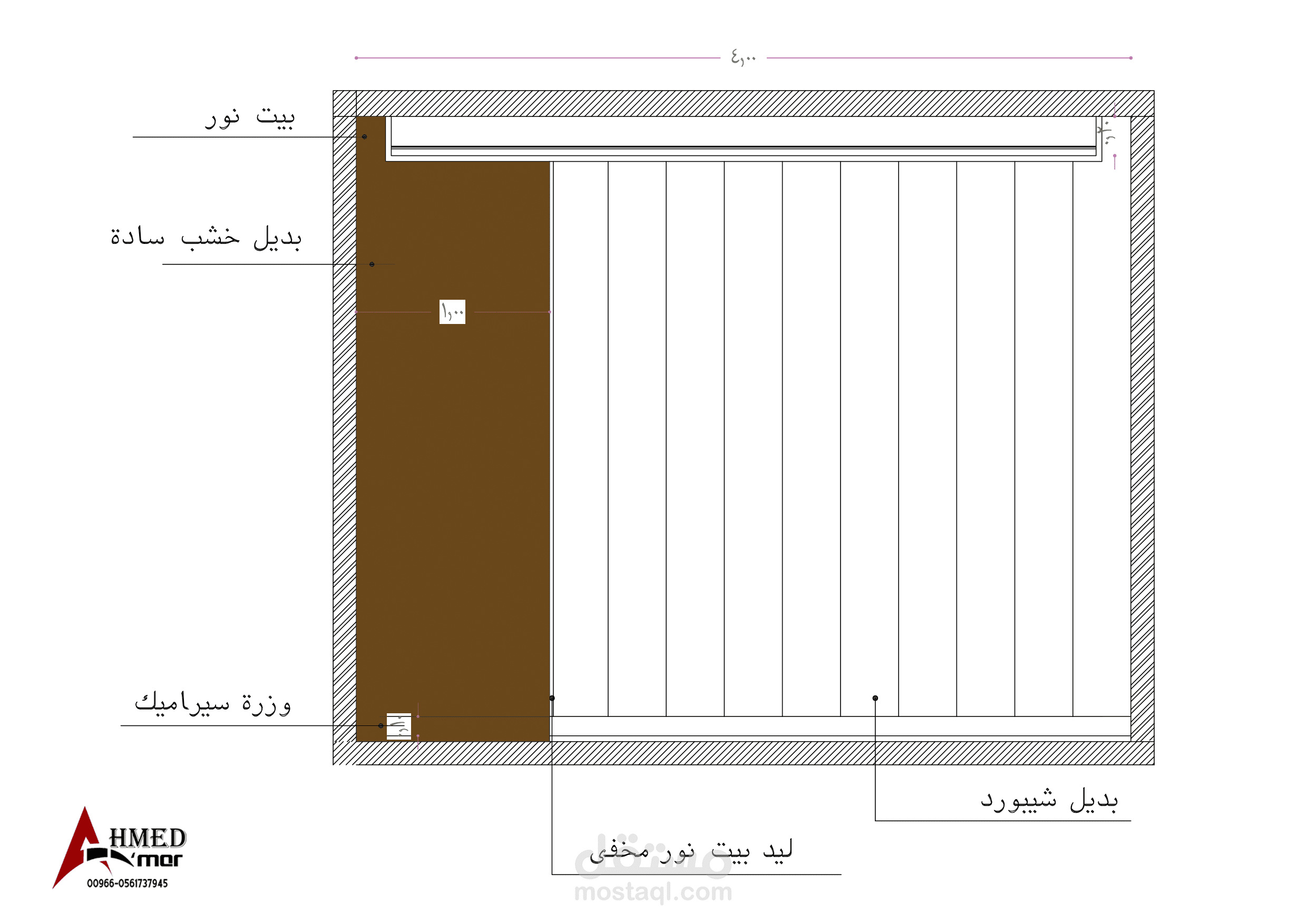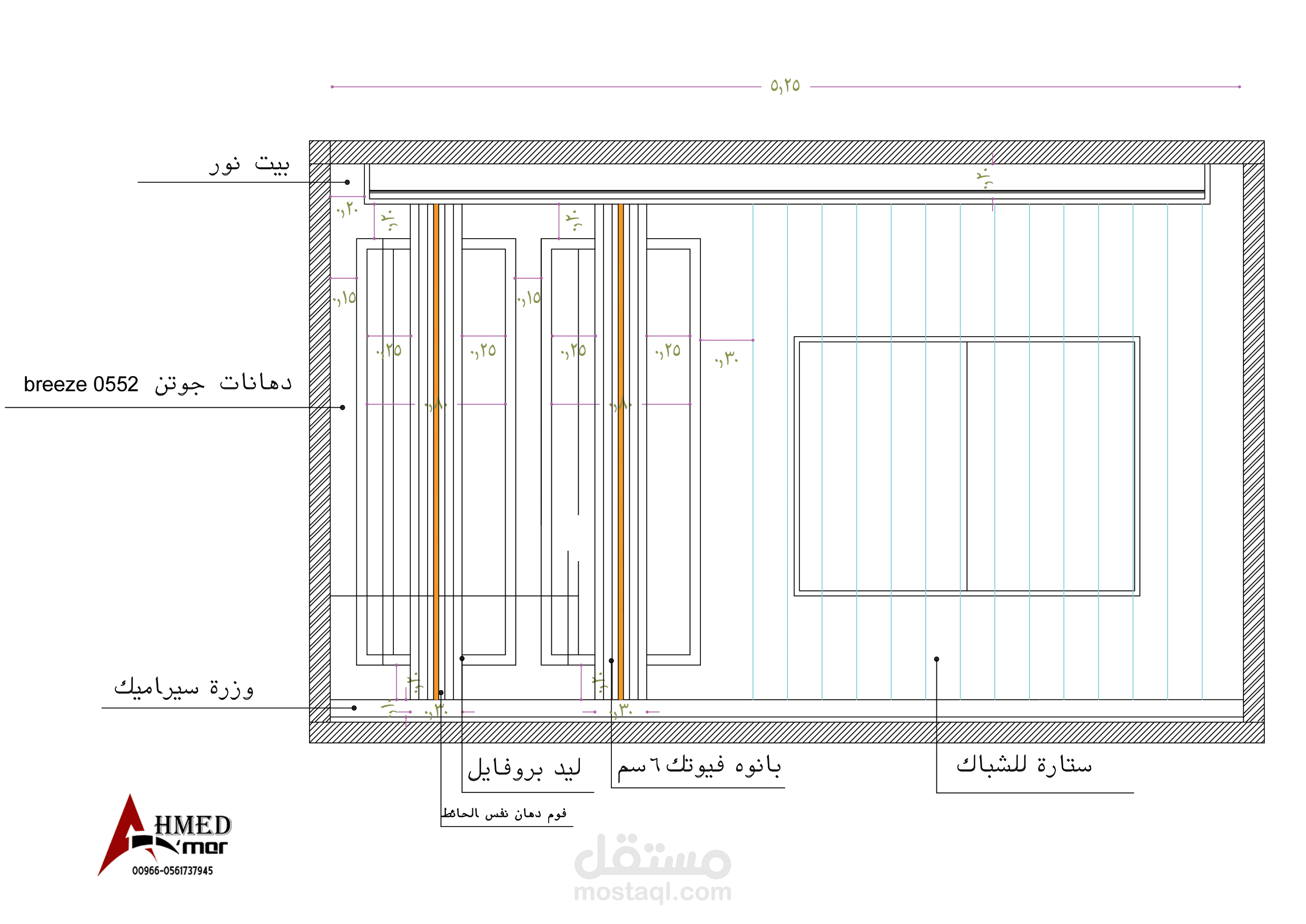 الكاملة للتصميم وتوضيح كافة الأبعاد والخامات المستخدمة .