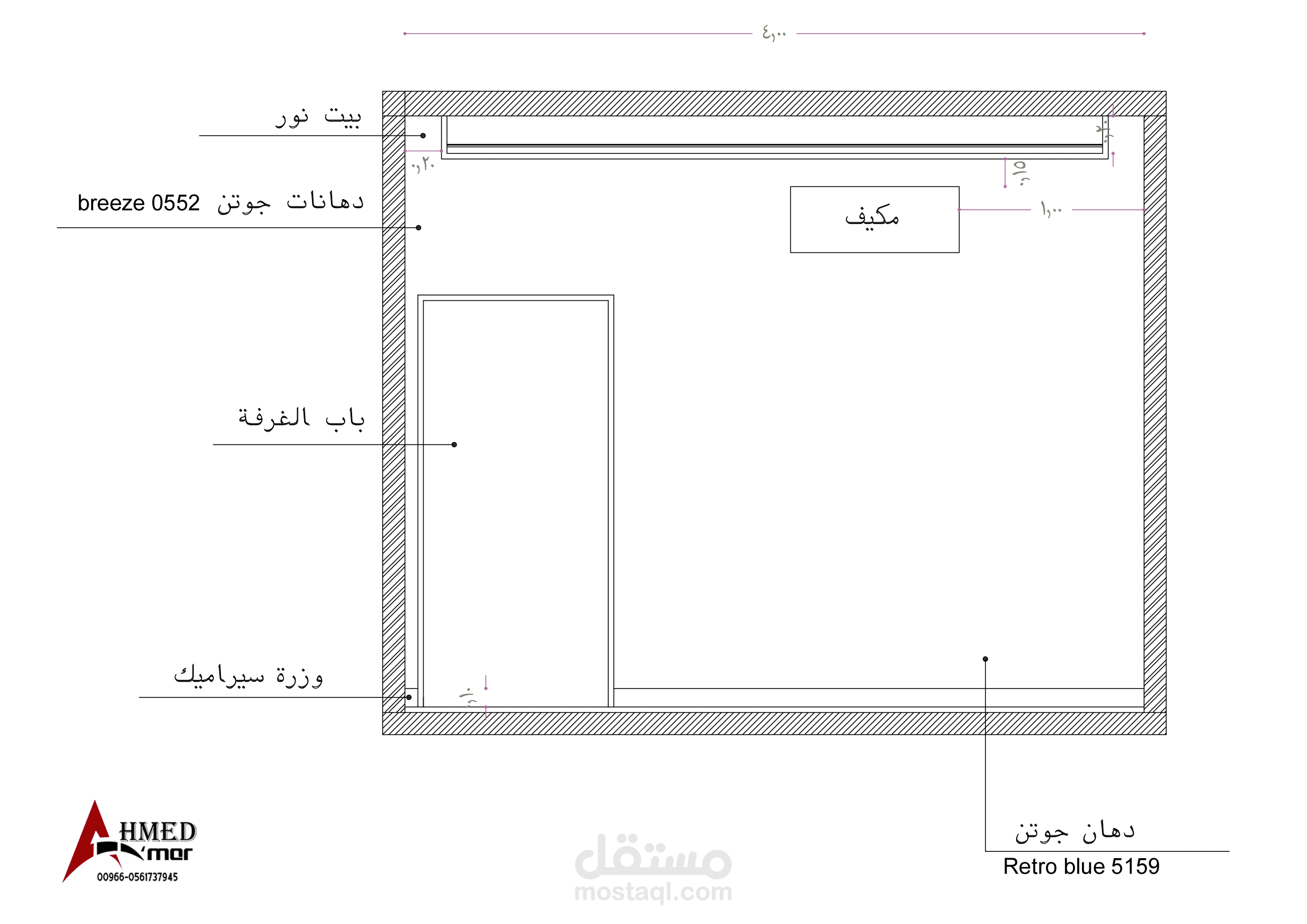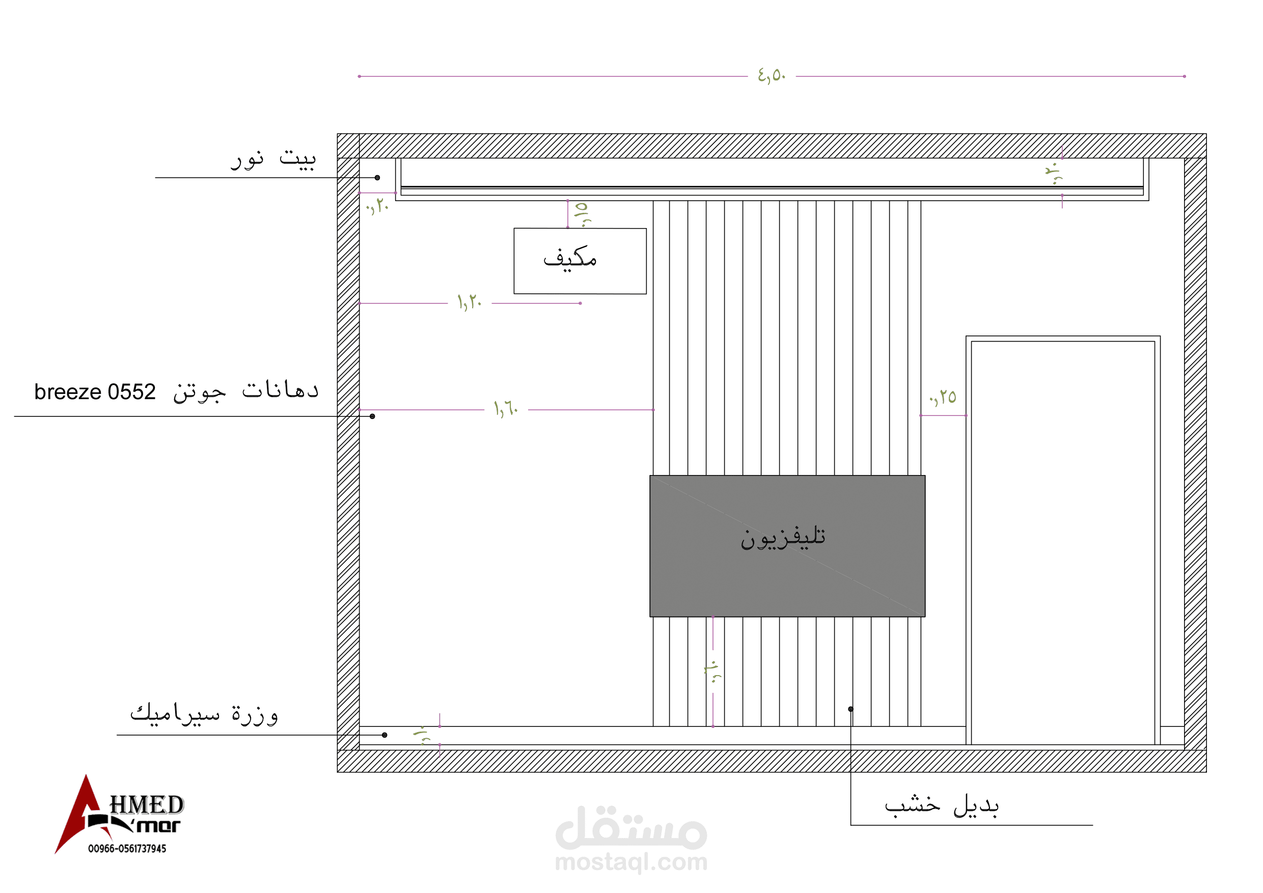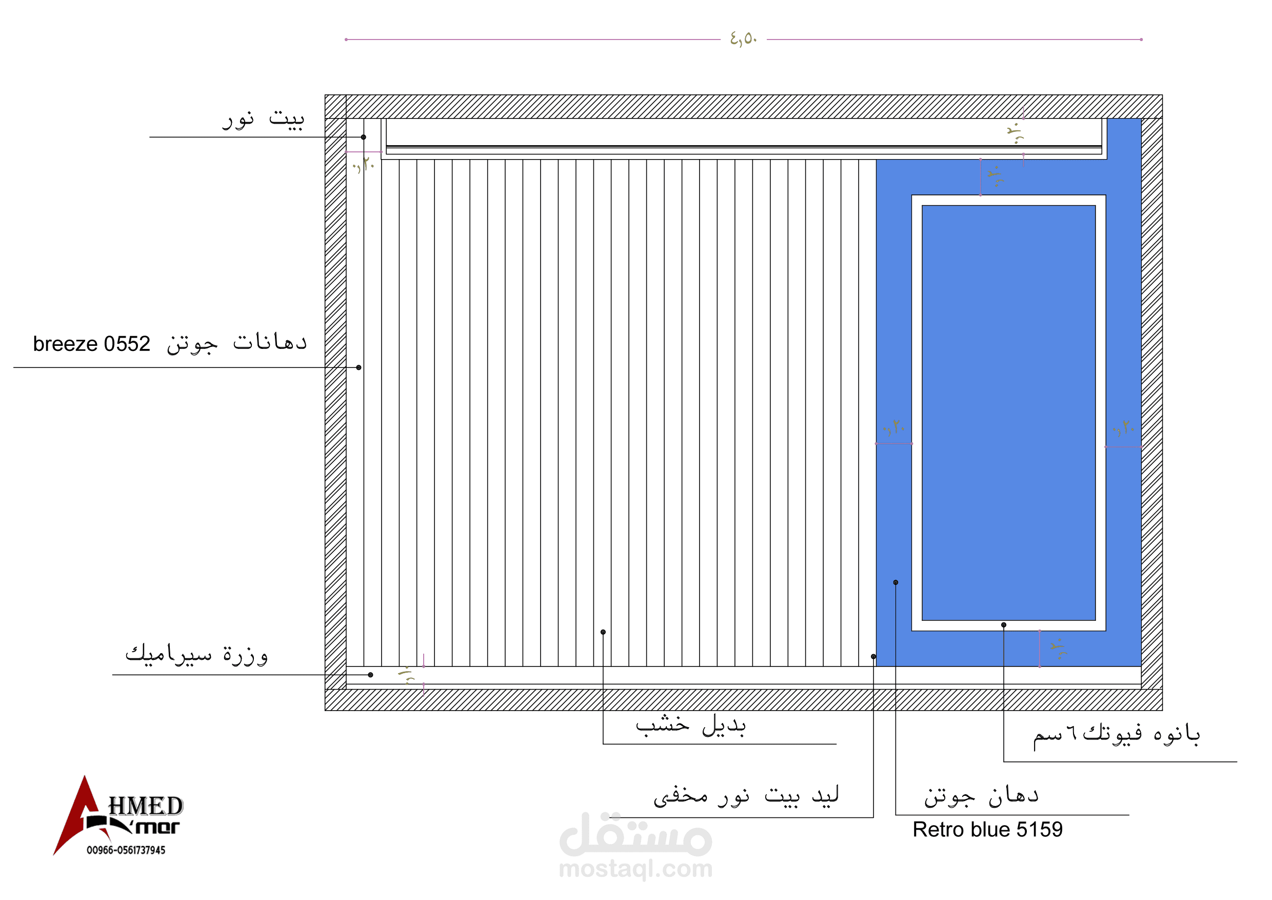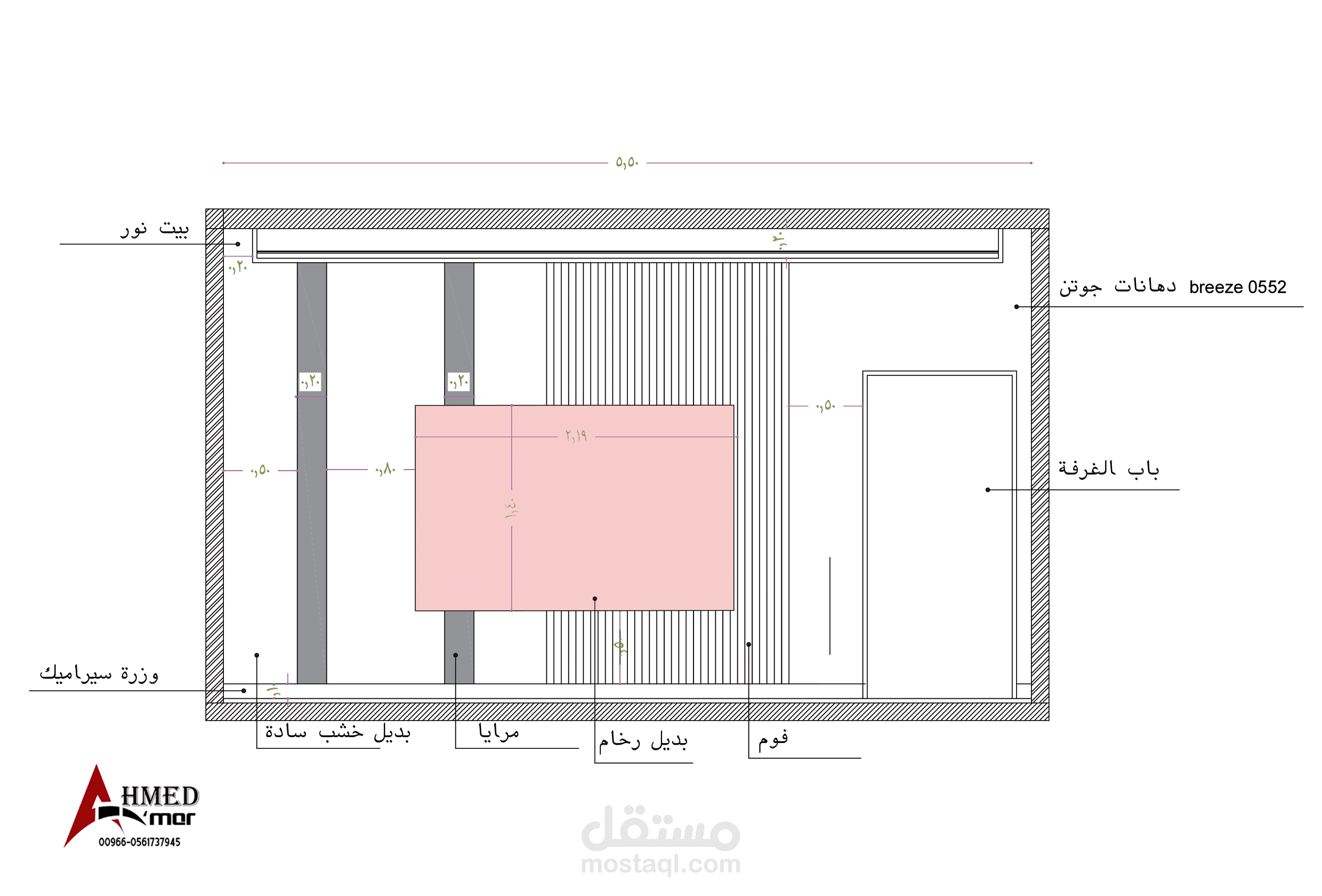 الكاملة للتصميم وتوضيح كافة الأبعاد والخامات المستخدمة .