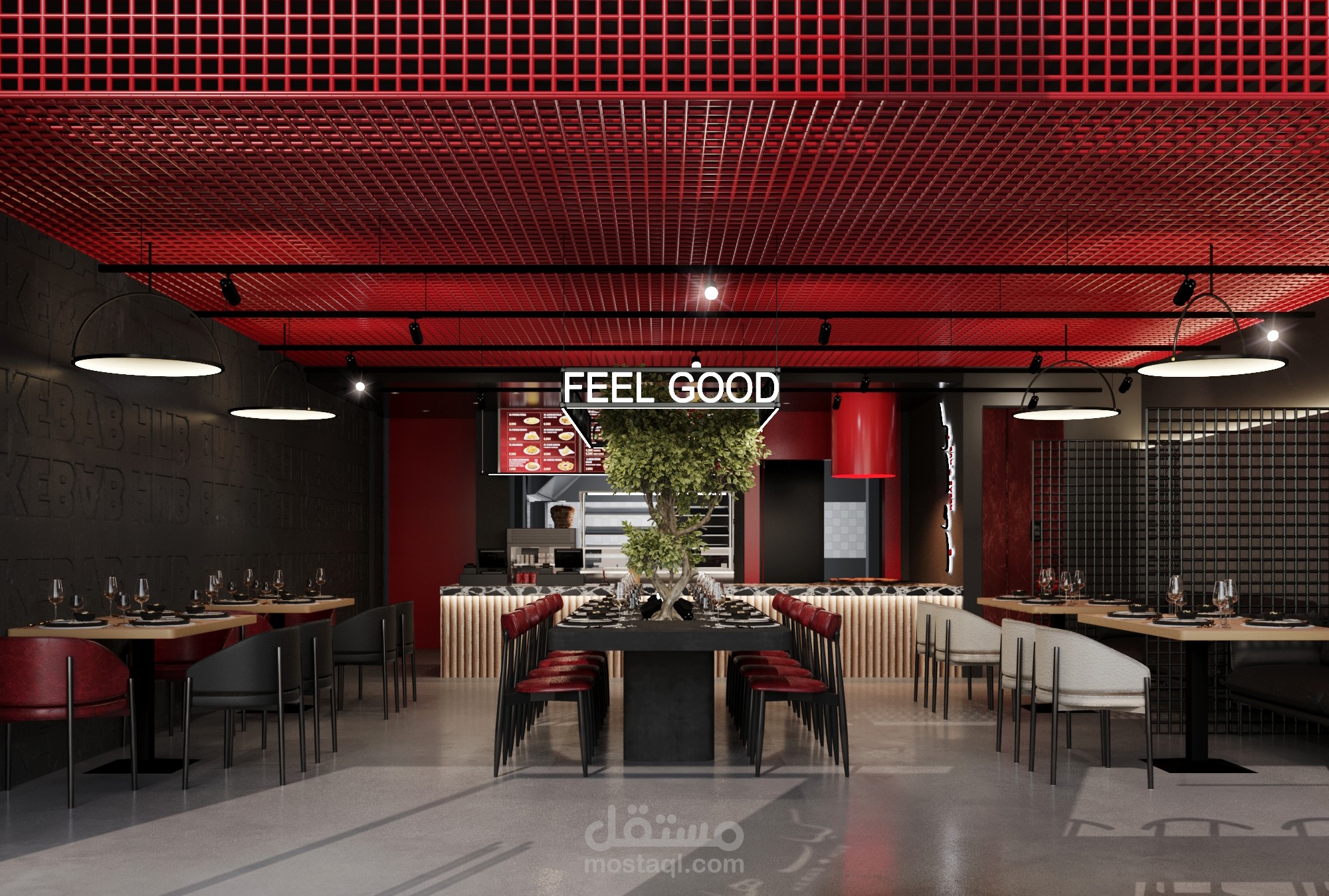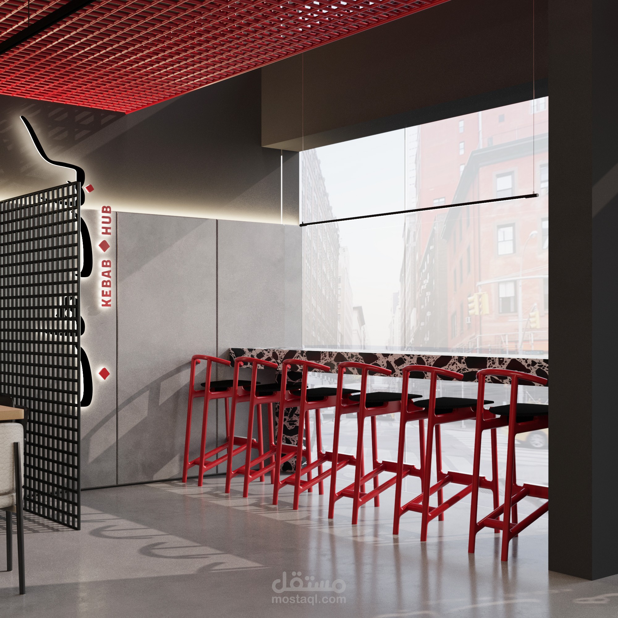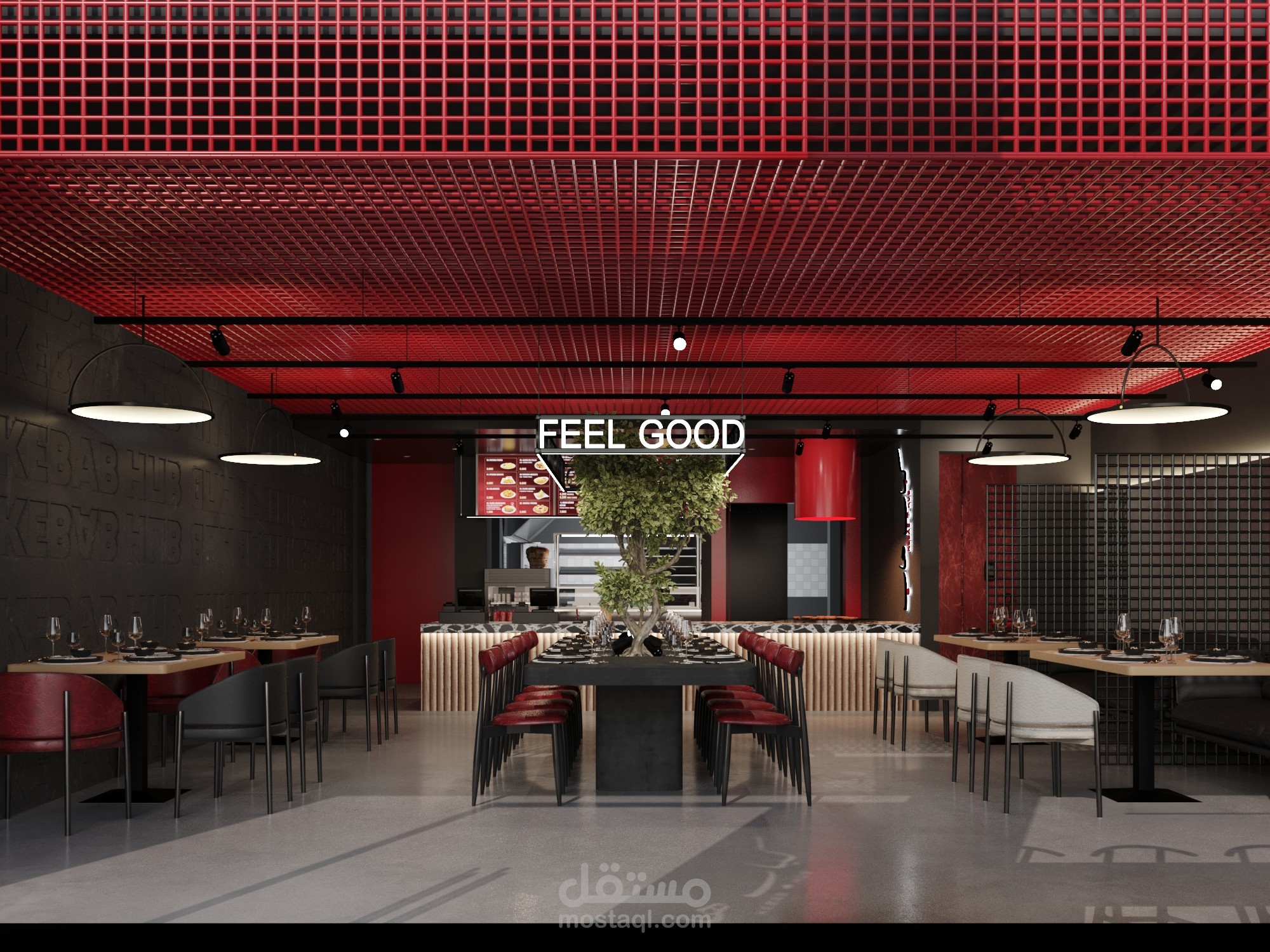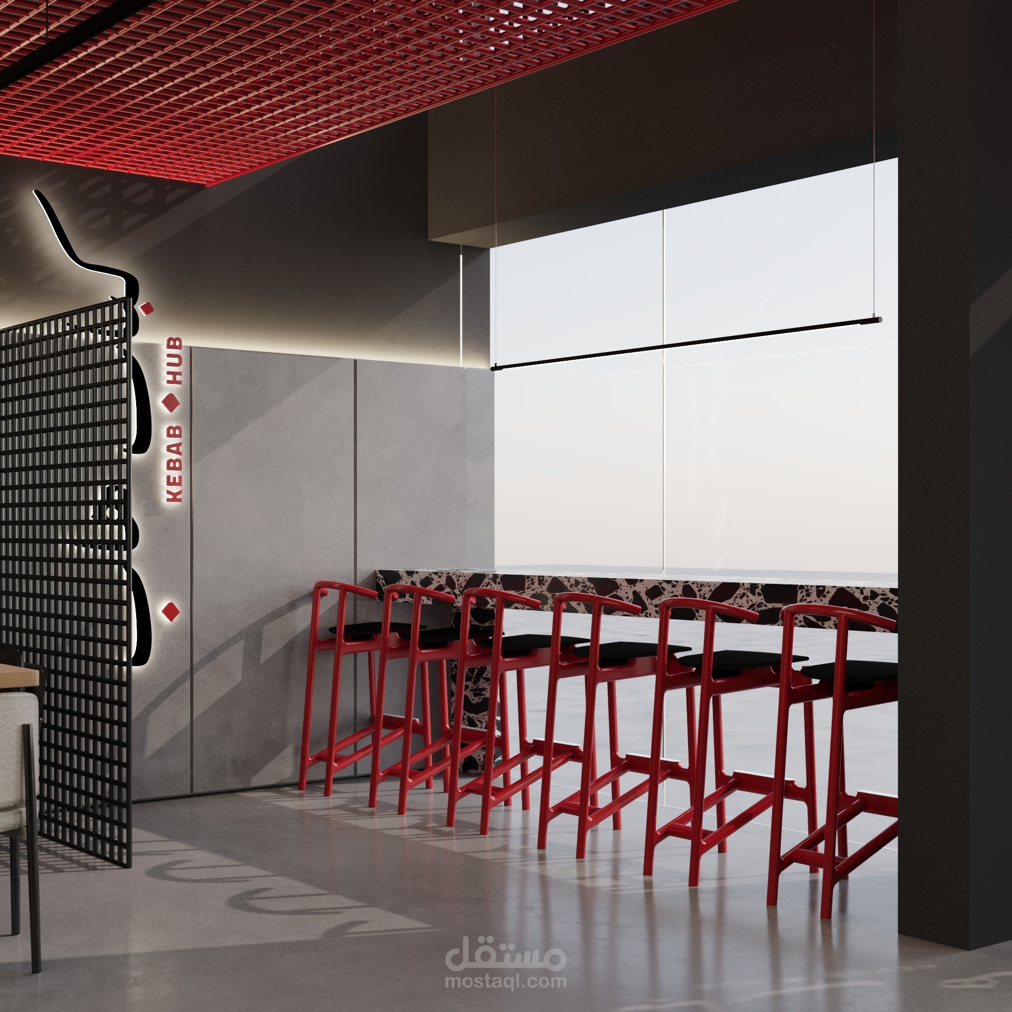 .Interior Design for Kebab Hub Restaurant with a reddish new concept