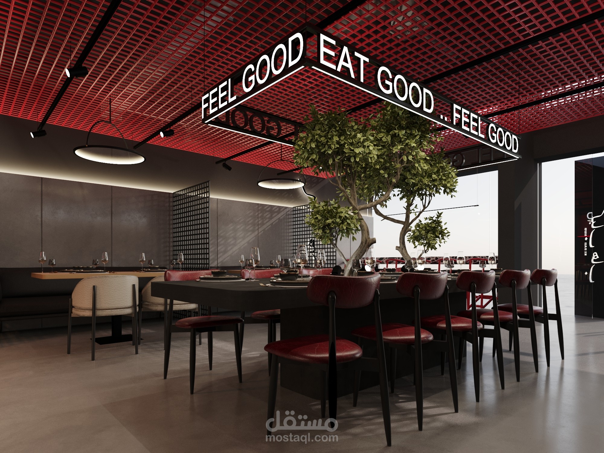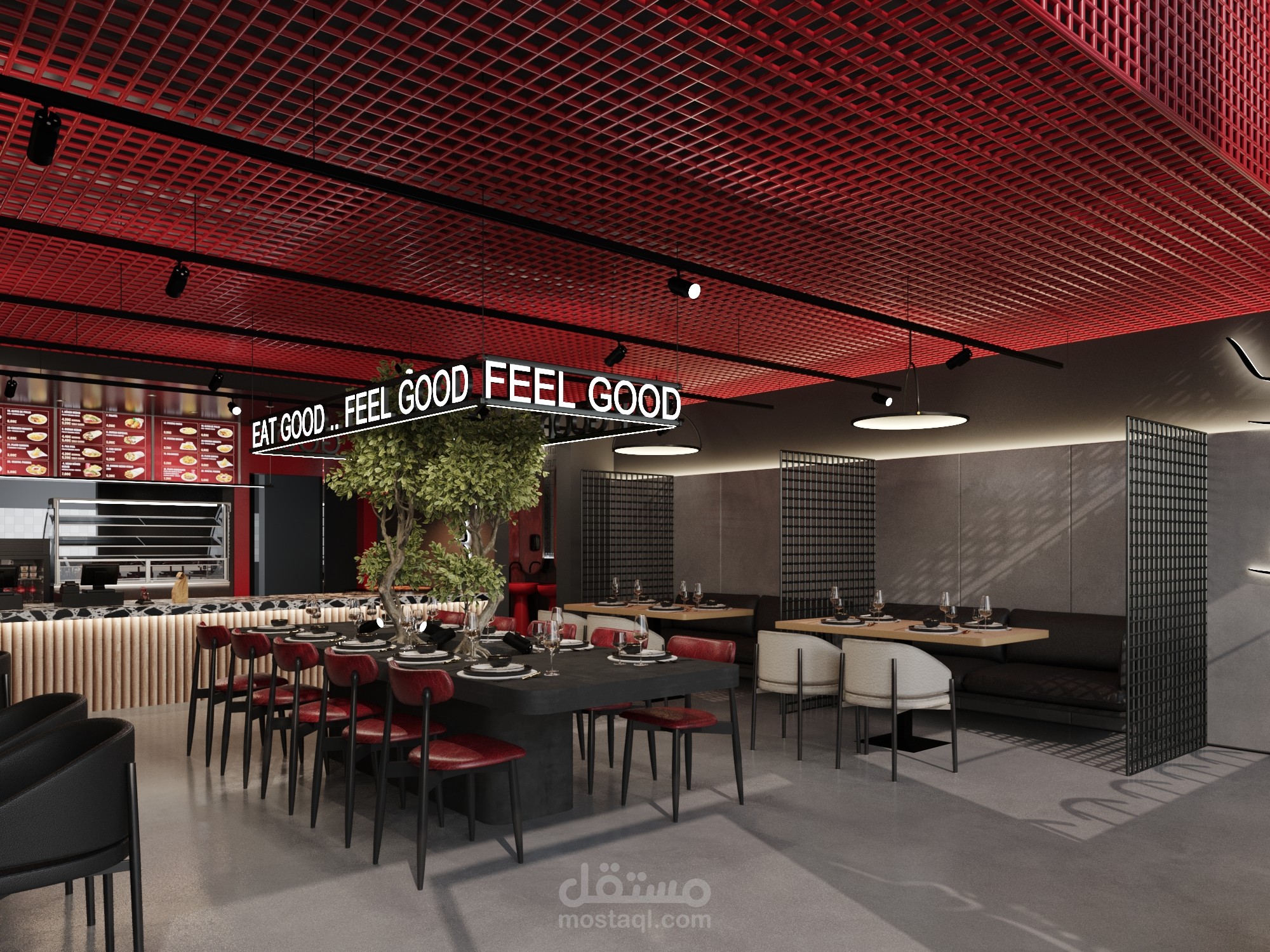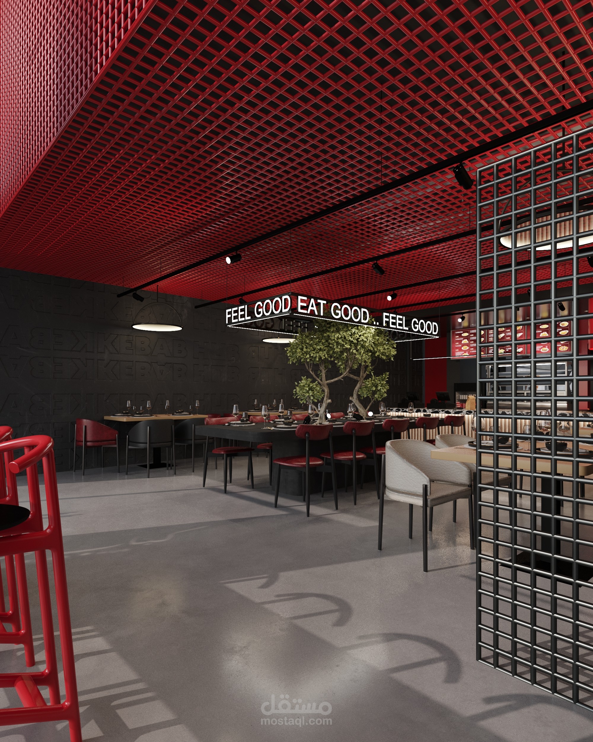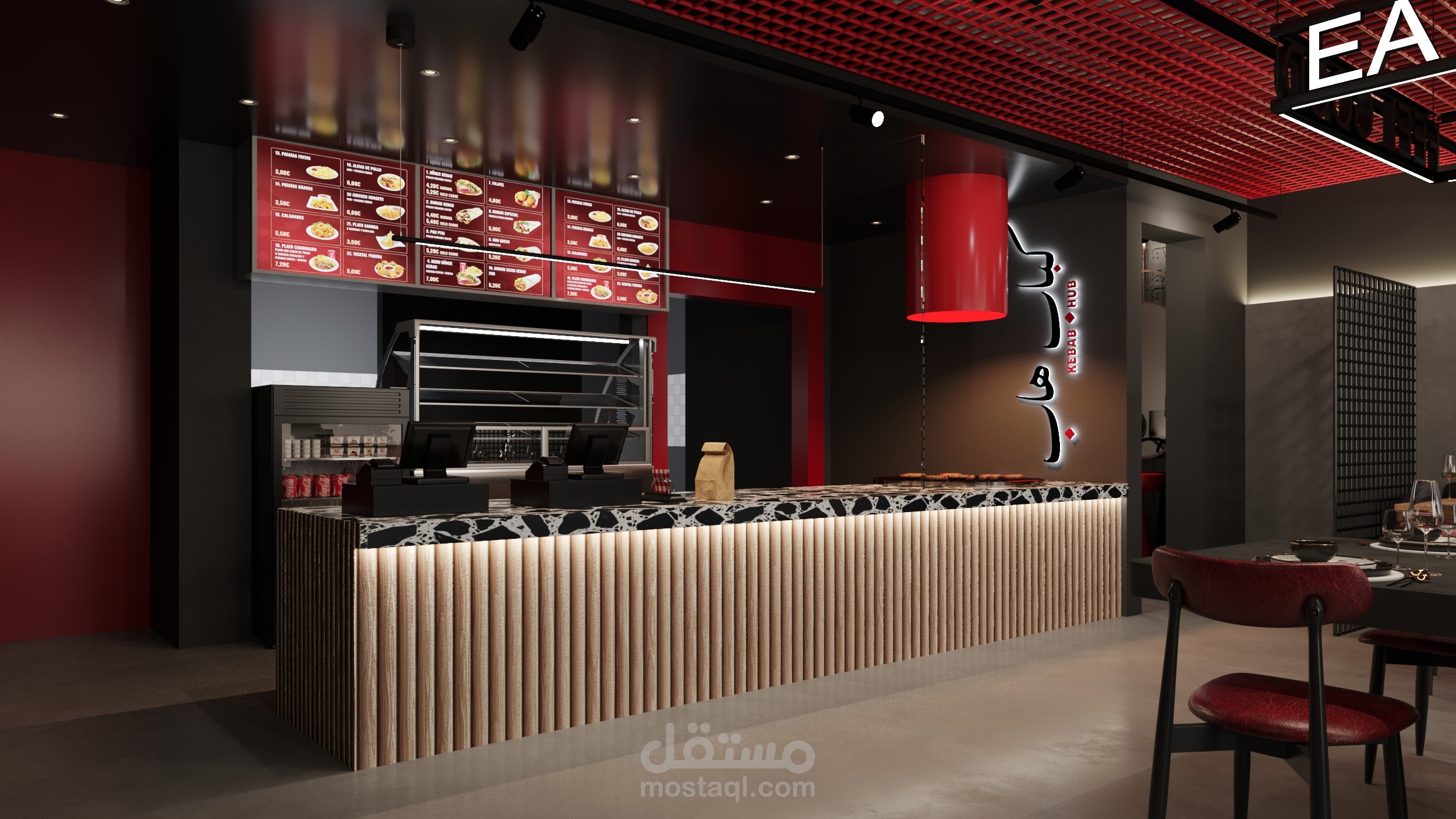 .Interior Design for Kebab Hub Restaurant with a reddish new concept