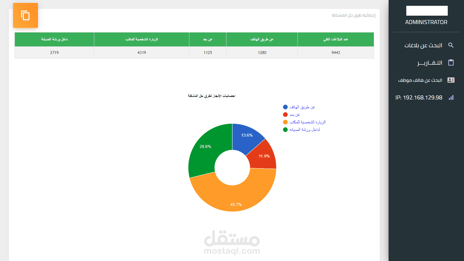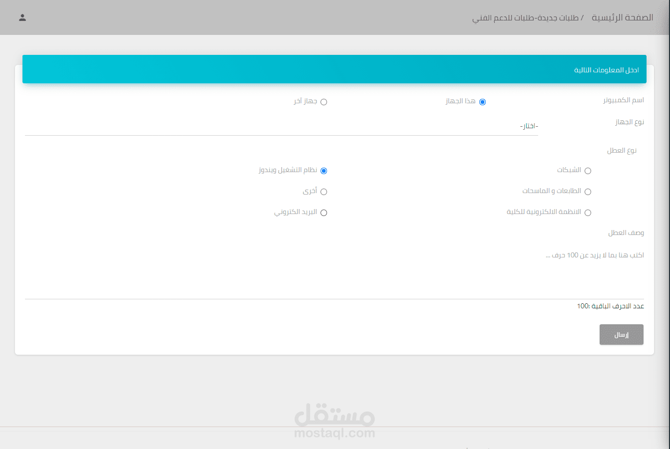حيث يقوم البرنامج بستقبال طلبات الصيانه و تحويلها للموظفين و يقوم الموضف بحل المشكلة اما عن بعد او داخل ورشة الصيانه او عنطريق الهاتف