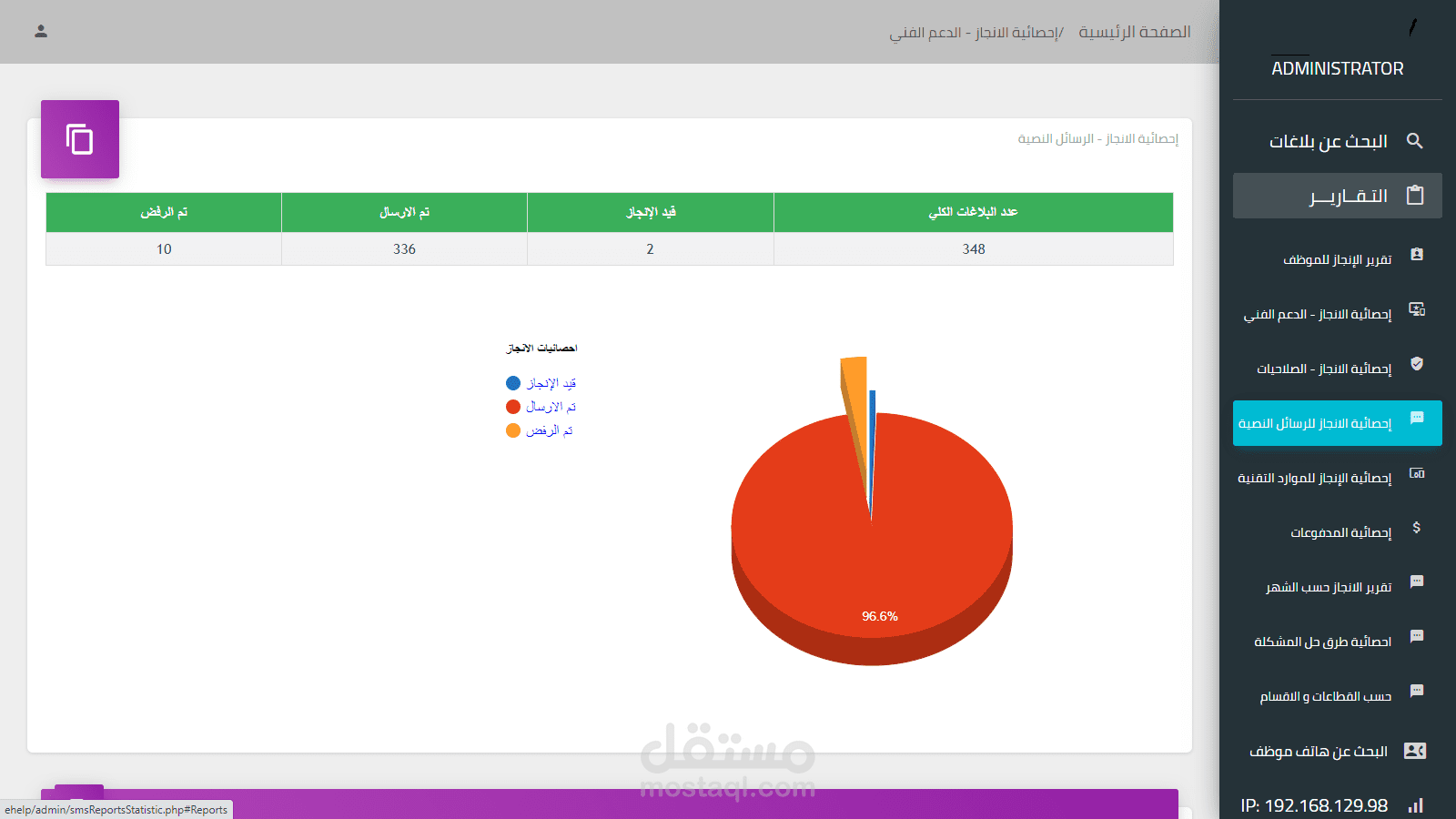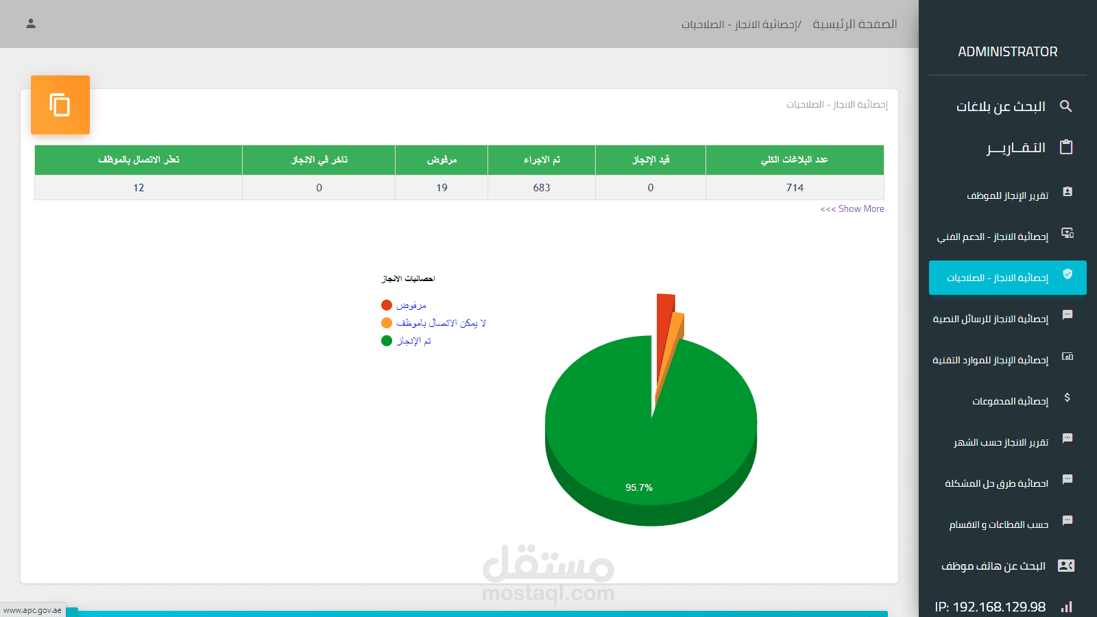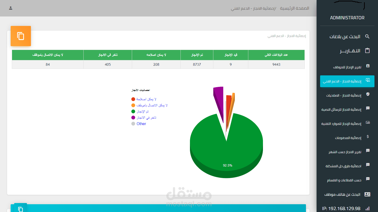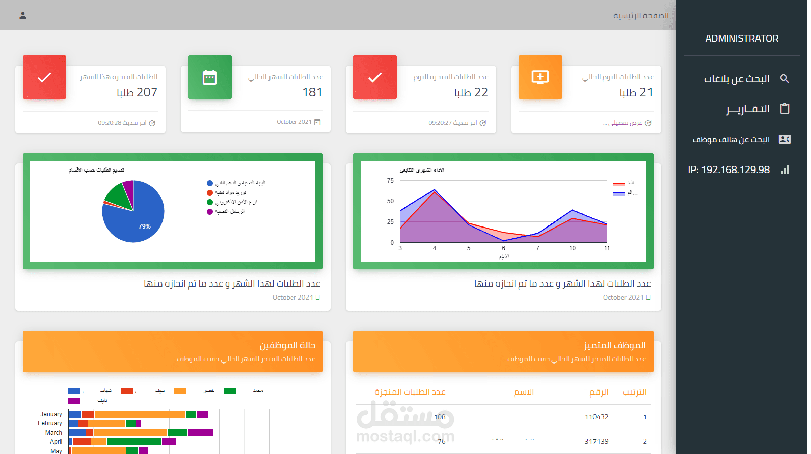 كما يقوم مدير النظام بمتابعةكافة العمليات عن طريق Dashboard يعكس العملية بشكل لحظي