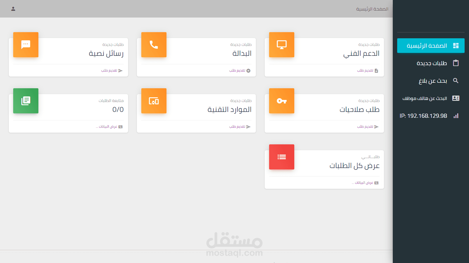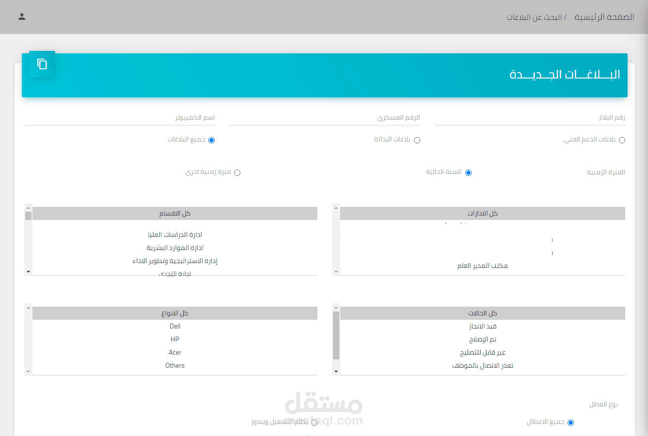 نظام الدعم الفني مقسم الى 3 مستويات (الموظفيين العاديين , موظفي IT, مدير النظام)