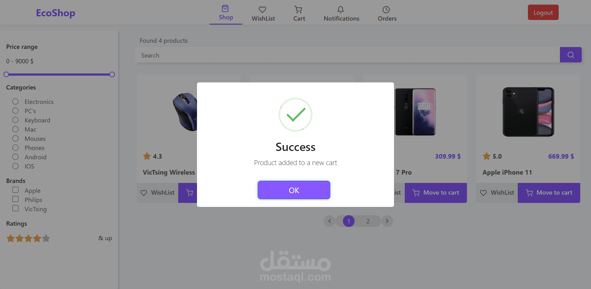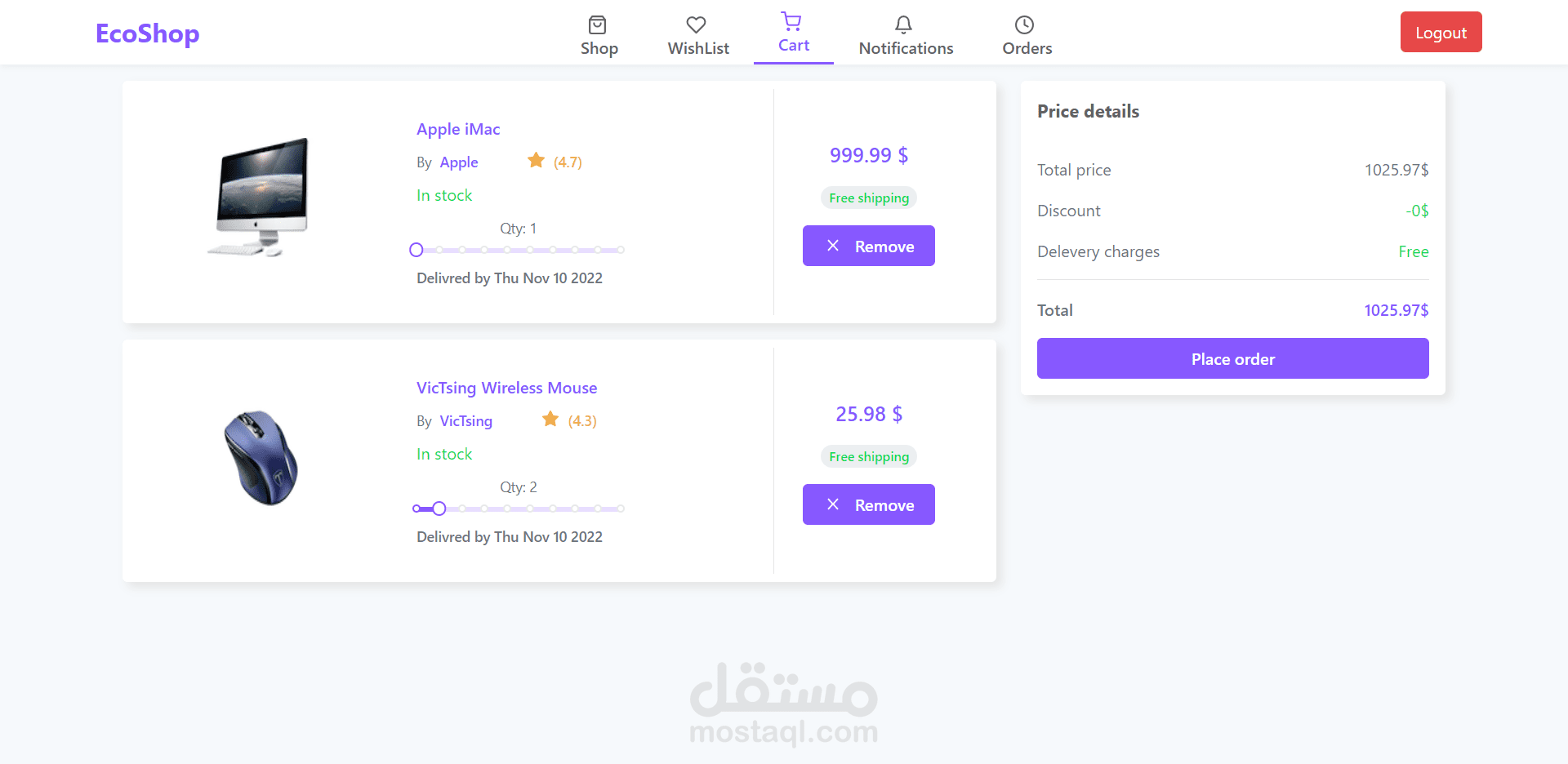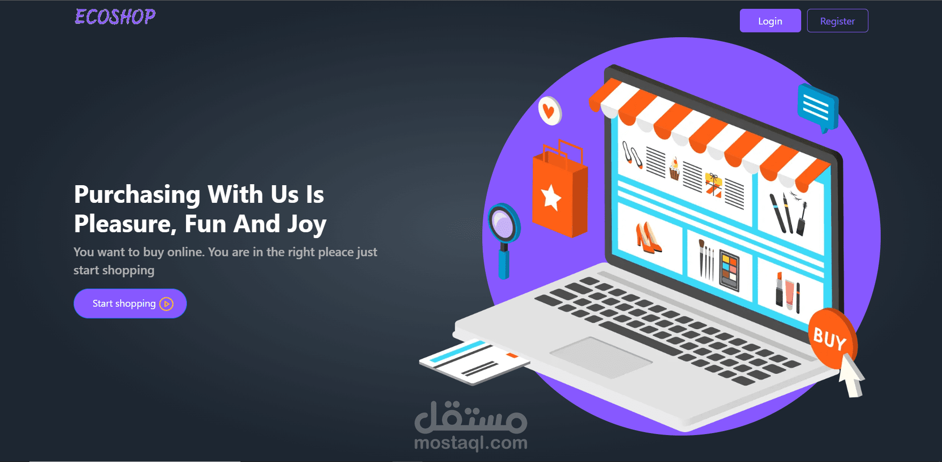 متجر الكتروني يحتوي على معرض للسلع و سلة للشراء مع امكانية الدفع الالكتروني
