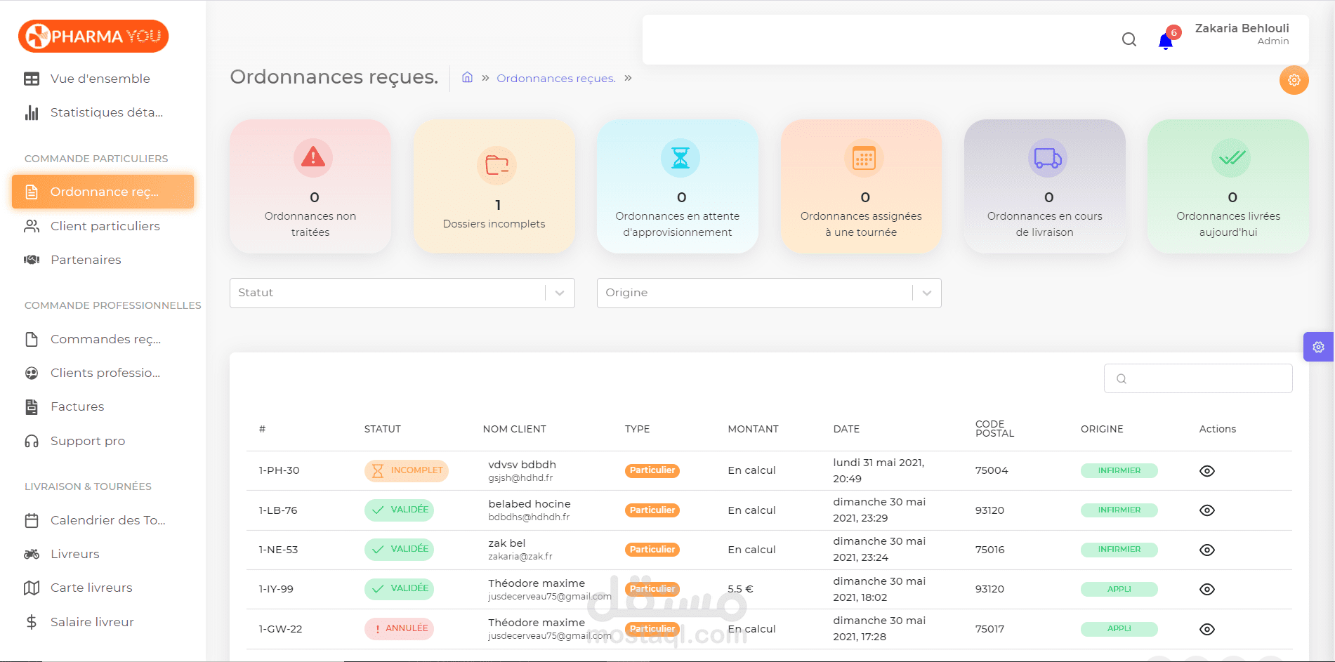 لوحة تحكم متعددة المهام لأحد مواقع التجارة الإلكترونية الخاصة بالمنتجات الصيدلانية