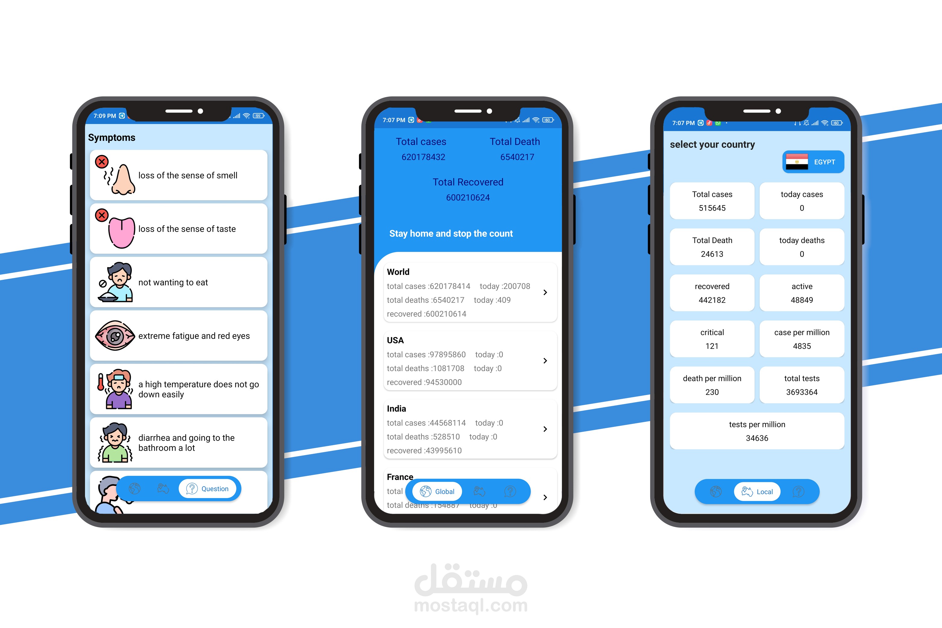 تطبيق اخباري عن مرض الكورونا يقوم بجلب البيانات لكل الدول عبر الانترنت ويوضح عدد الاصابات والضحايا وكذلك المتعافين عبر مستوي العالم أو في حدود دولتك.