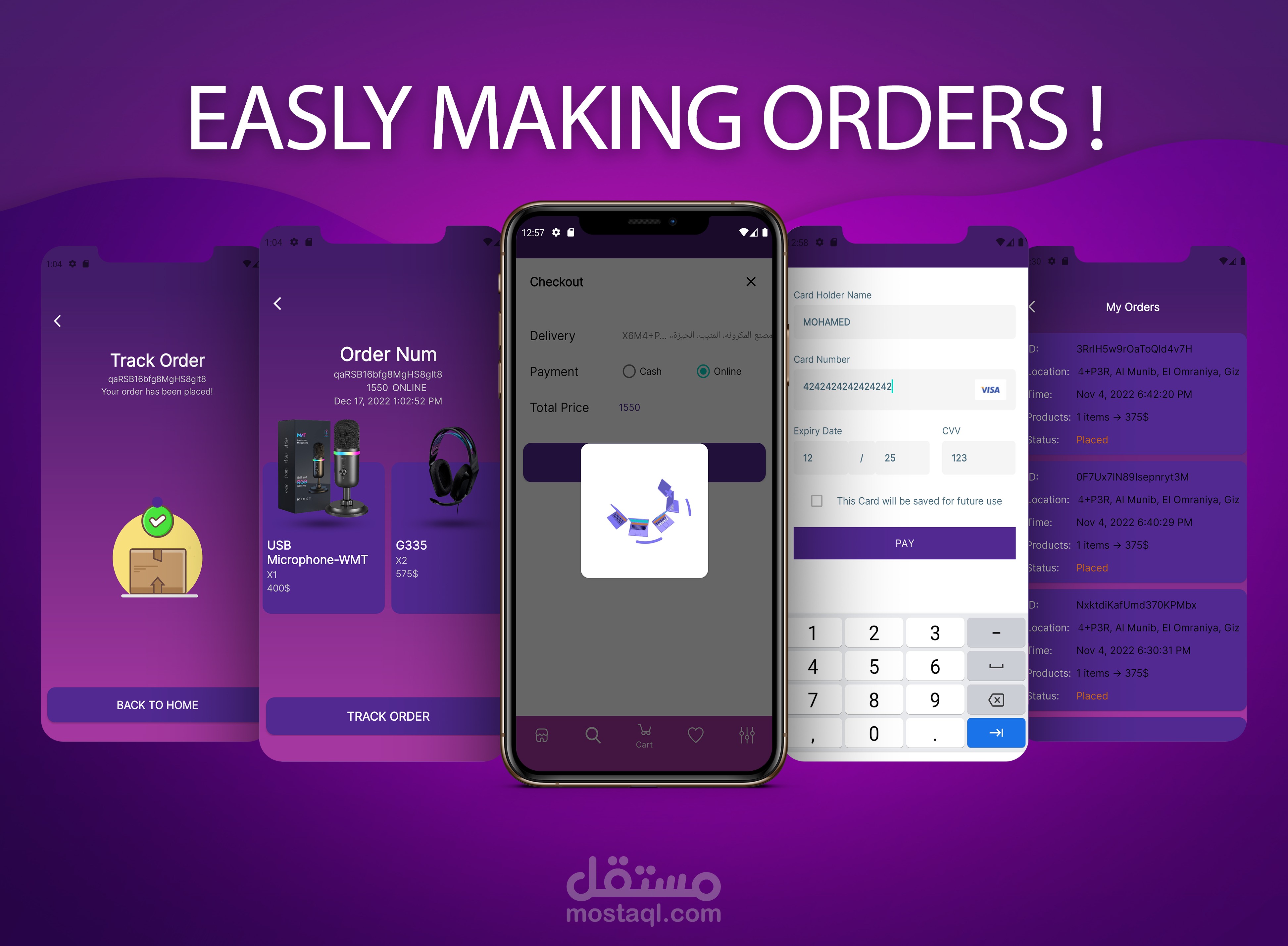 يمكنه رؤية جميع التفاصيل الخاصة بالمنتج واضافته لعربة الشراء عندها يقوم بتأكيد الأوردر واختيار طريقة الدفع التي تناسبه سواء كان كاش او اونلاين أيا كان البنك التابع له عن طريق Paymob , بعدها يستطيع متابعة الأوردر سواء اذا وافق عليه المتجر أو تم تجهيزه أو وصوله للشحن حتي استلامه.