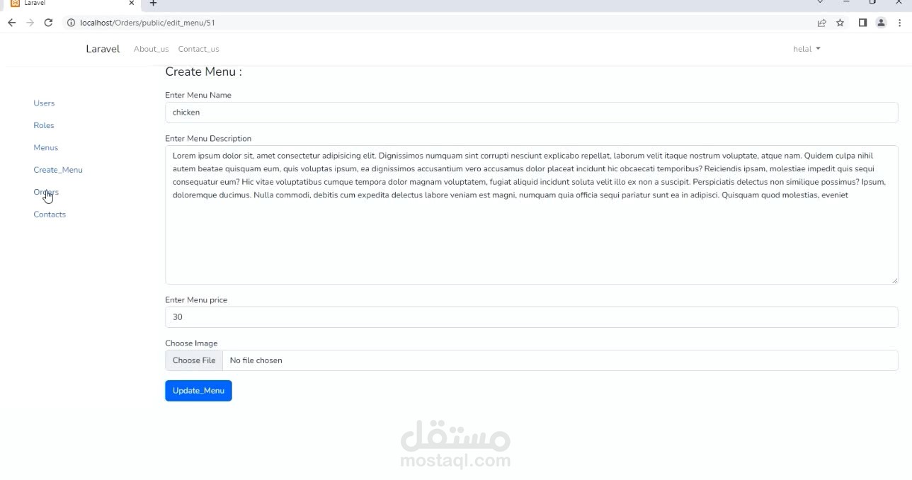 Simple laravel task : Orders website Description: website for ordring food Features: 1-Database a- migrations,seeders,factory ,accessors,mutators,scopes b - polymorphic,eagerloading,soft deletes