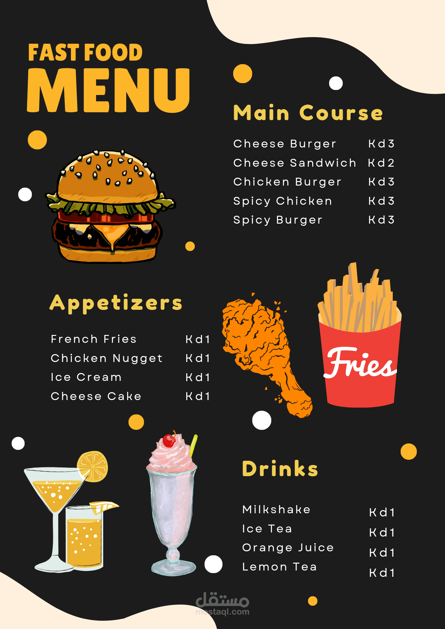 تصميم منيو لمطعم وجبات سريعة فى الكويت