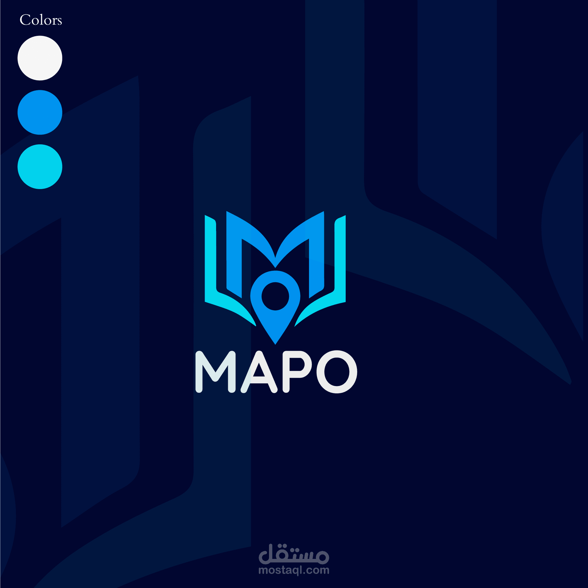 تصميم شعار لموقع تعليمي بإسم "Mapo" الاسم مستوحى من الخريطة فقومت بإستخدام رمز الموقع ودمجه مع حرف M وايقونة الكتاب ونال اعجاب العميل .