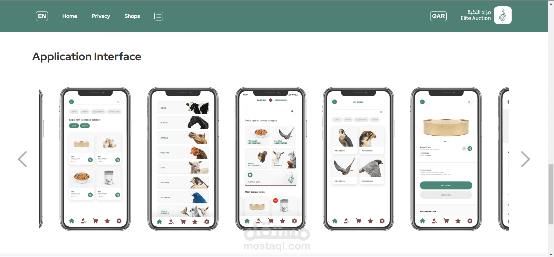 النخبة هو تطبيق للتجارة الإلكترونية عبر الإنترنت حيث يمكنك التسوق من العديد من الفئات في التطبيق ، وإضافة منتجات إلى عربة التسوق الخاصة بك ، وتتبع طلبك من بداية الفوترة حتى يتم تسليمها إليك ، والفئة الرئيسية هي جميع الحيوانات. مزارع - أغذية حيوانية - مطابخ - اكسسوارات - توصيل حلال. يحتوي هذا التطبيق أيضًا على مزاد عبر الإنترنت حيث يمكن لجميع المزايدين بدء المزايدة الخاصة بهم على بعض المنتجات والحيوانات أيضًا. يوفر التطبيق العديد من المدفوعات (نقدًا ، عبر الإنترنت ، الدفع) لتسهيل جميع أنواع المشتريات ، هذا التطبيق هو كل ما تحتاجه للتسوق عبر الإنترنت.