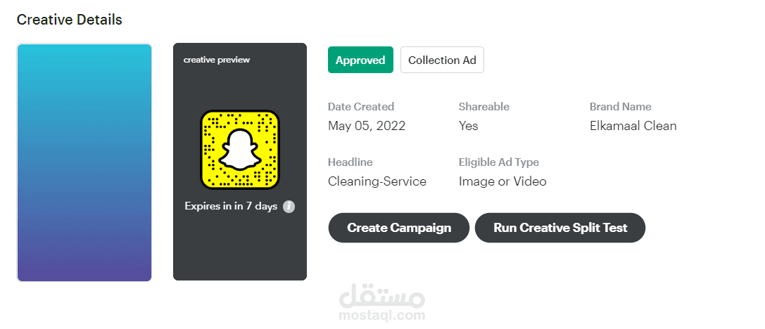 لقد عملت في شركة الكمال وفي بداية العمل كان حساب الشركة علي سناب شات يوجد به مشكله بسبب حظره من علي مدير الإعلانات وبسبب خصوصيات سناب شات الغير موضحه لسبب الرفض لم يستطع أحد حل المشكله ولم يتم نشر اي اعلانات علي الحساب لسنوات