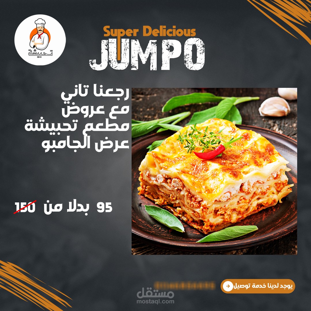 تصميم اعلان سوشيال ميديا لمطعم يسمي تحبيشة