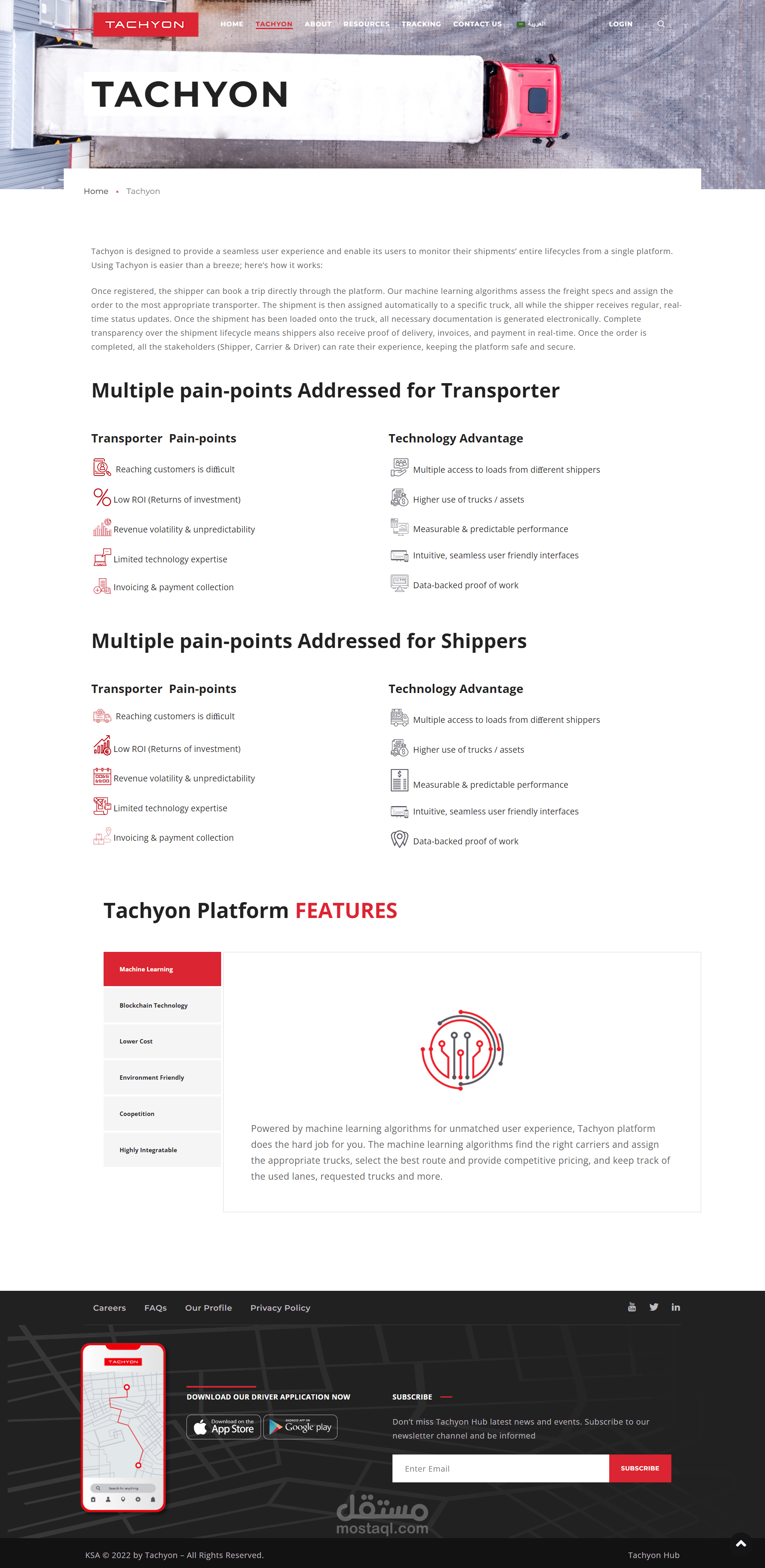 موقع عرض خدمات لشركة شحن البضائع في السعودية بالإضافة الى ربط الموقع مع التطبيق الخاص بالشركة، تم انشاءه باستخدام الووردبريس ويحتوي على لغتين الإنجليزية والعربية، الموقع مناسب بجيمع احجام الشاشات وسريع وذات تصميم جميل والوان متناسقة.