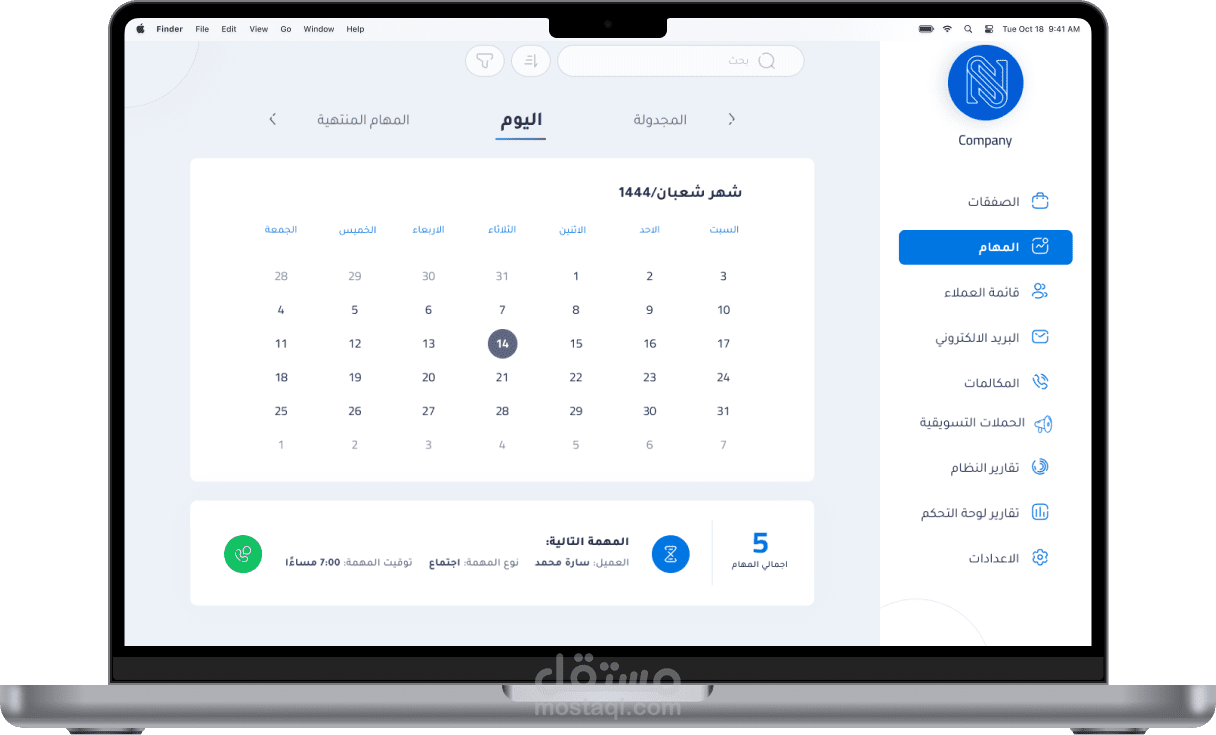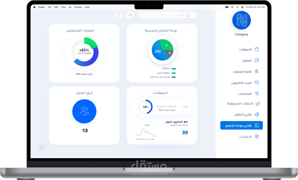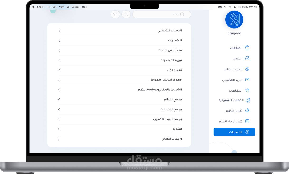 بعد تحليل نظام المعلومات لادارة علاقات العملاء (CRM), تم تصميم واجهات المستخدم للنظام بشكل كامل عبر Figma.