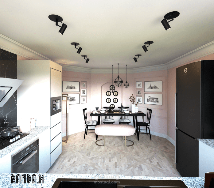 rose modern kitchen with small dining table