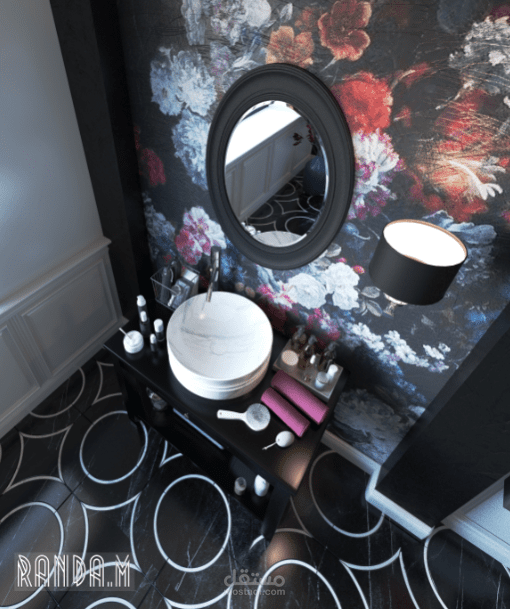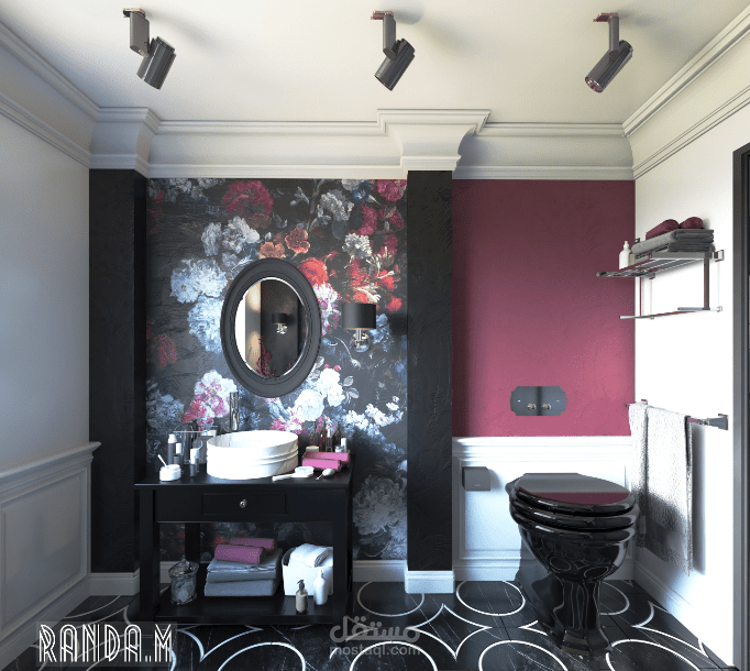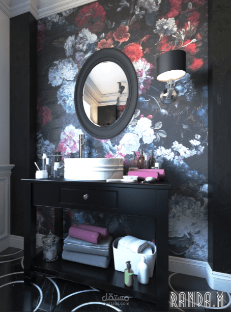 classic flowery black bathroom