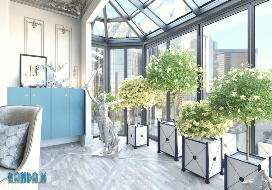 light beige classic living room with wide windows