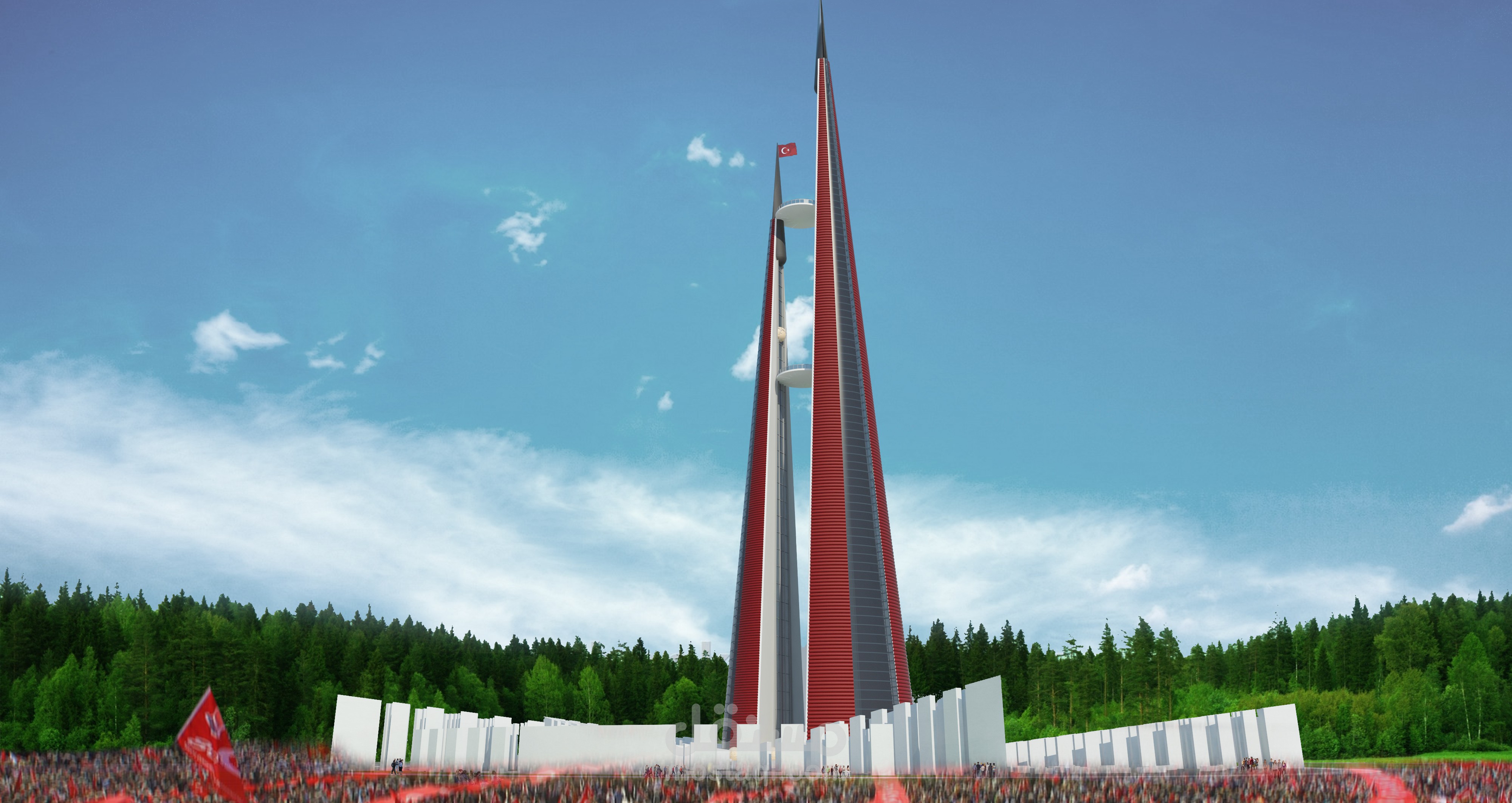 تصميم صرح لتخليد ذكرى شهداء 15 تموز في تركيا والفكرة تكمن في البرج الذي يرمز للديمقراطية التركية ويلتف من حولها كتل بيتونية بعدد للشهداء والجرحة مع استخدام اللون الأحمر المعبر عن العلم التركي