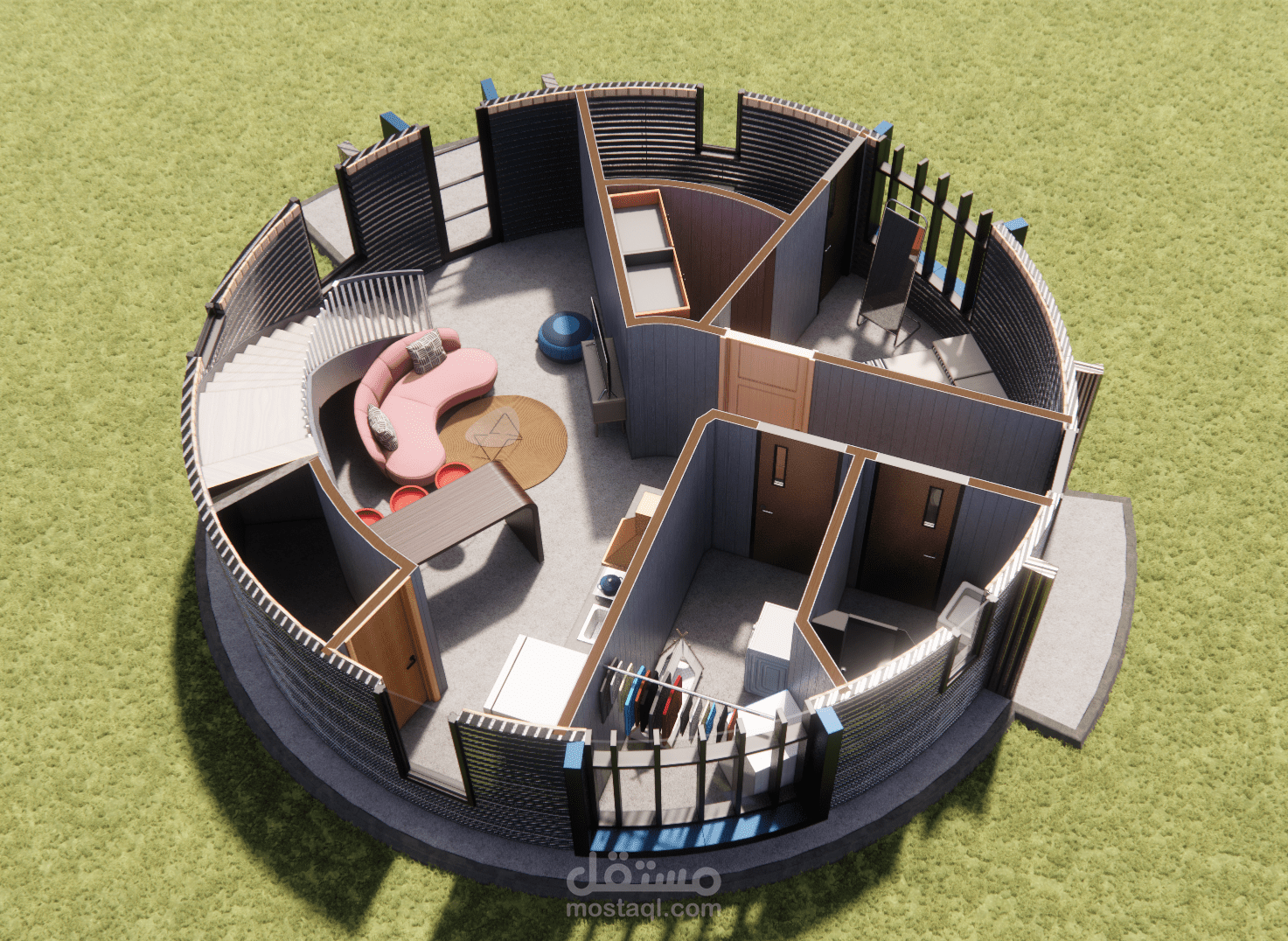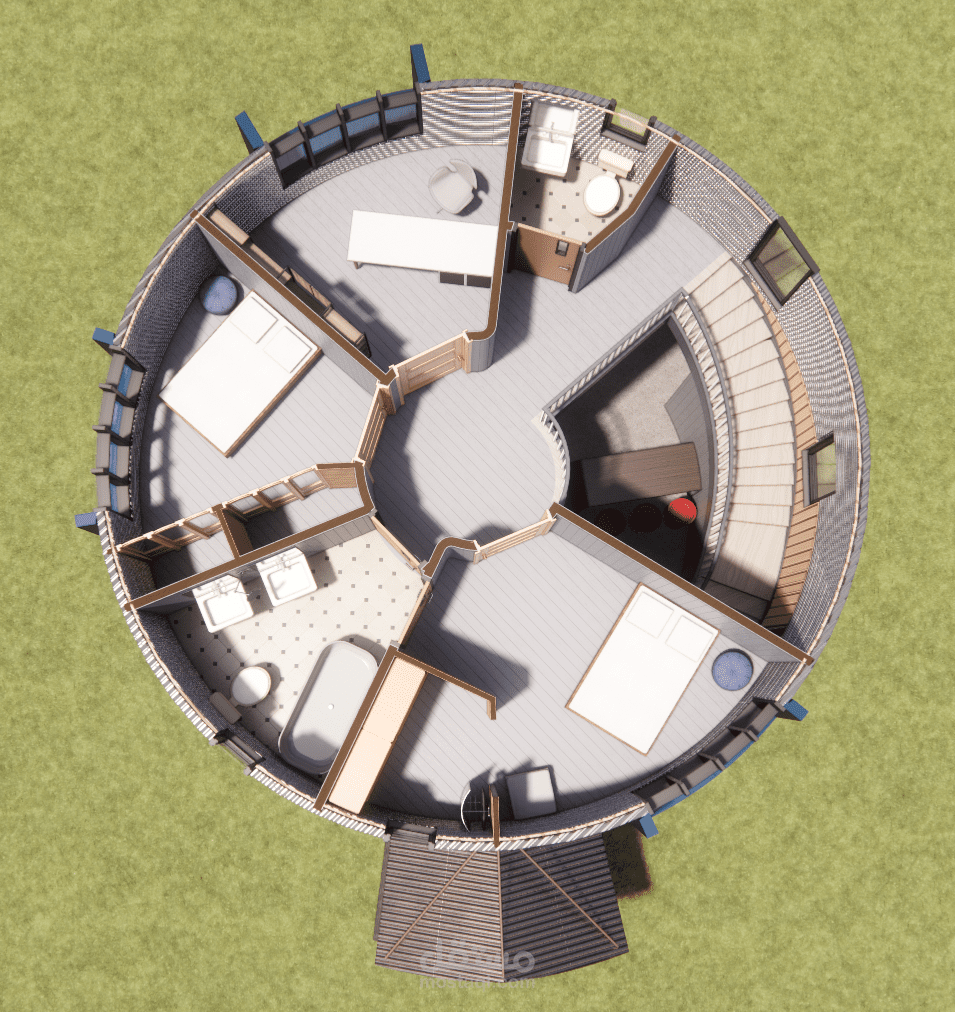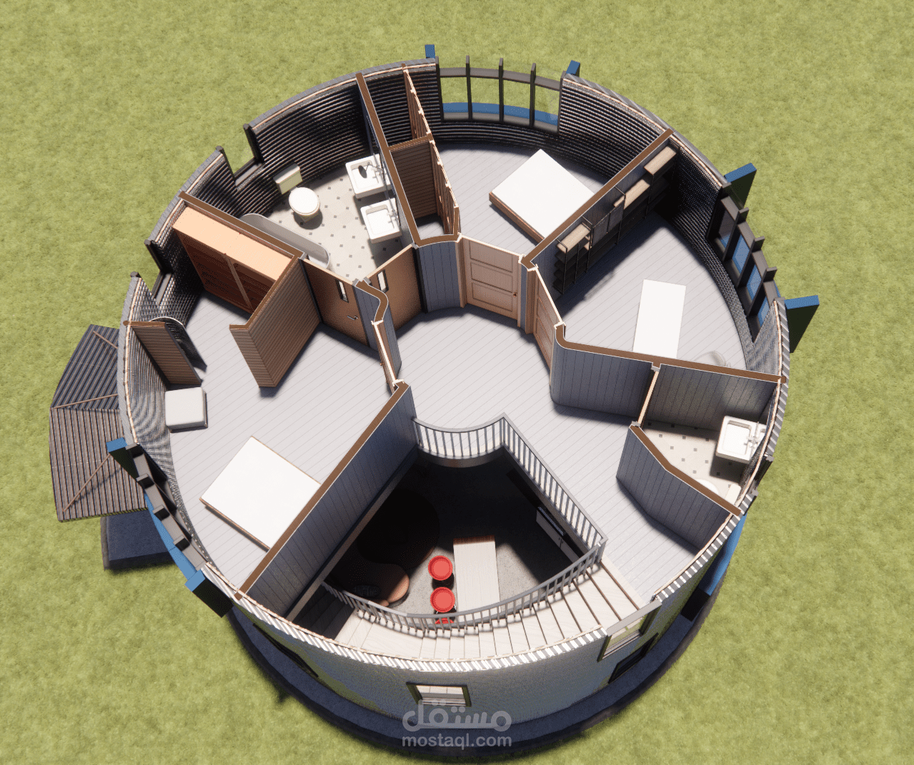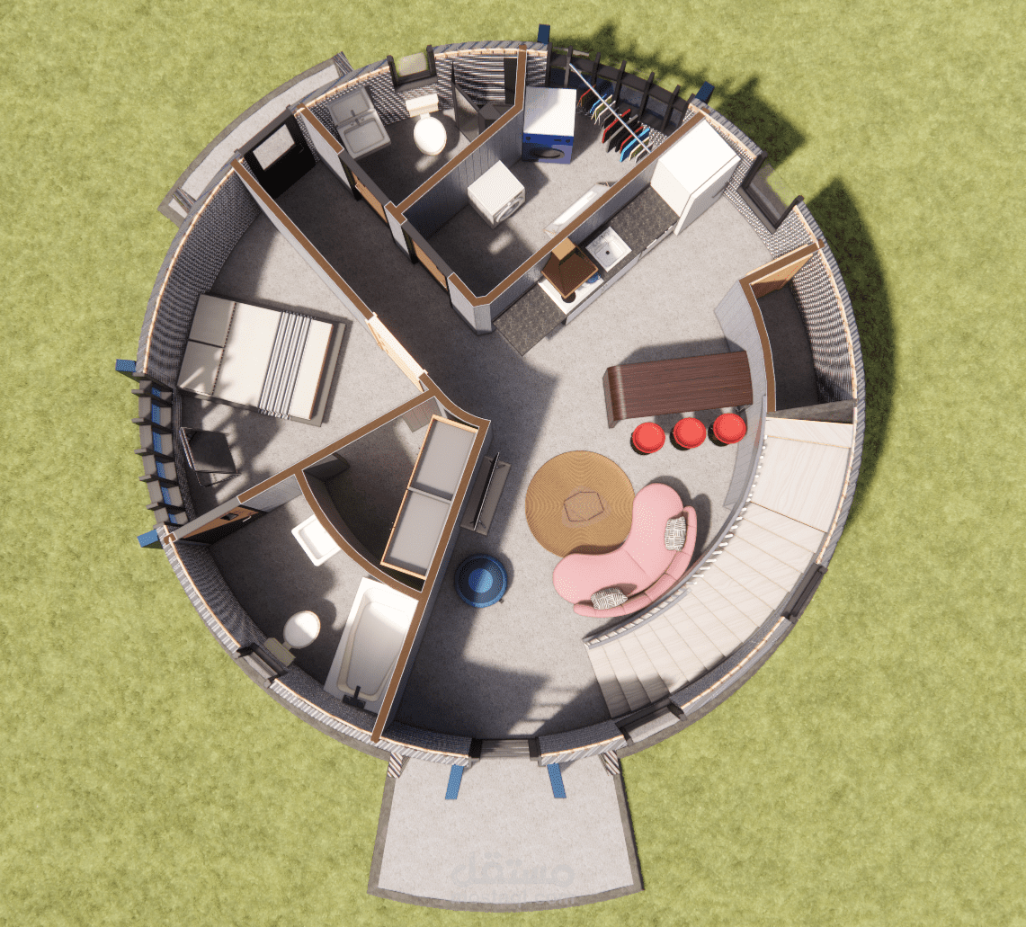 بناءً على رقبة العميل الذي يملك مستودع حبوب بشكل صومعة ويرغب بابتكار تصميم جديد لتحويله غلى منزل قابل للسكن فقد تم عمل التصميم المرفق والذي نال إعجابه حيث بدأ العمل بتنفيذه ليكون أيقونة مميزة في الحي