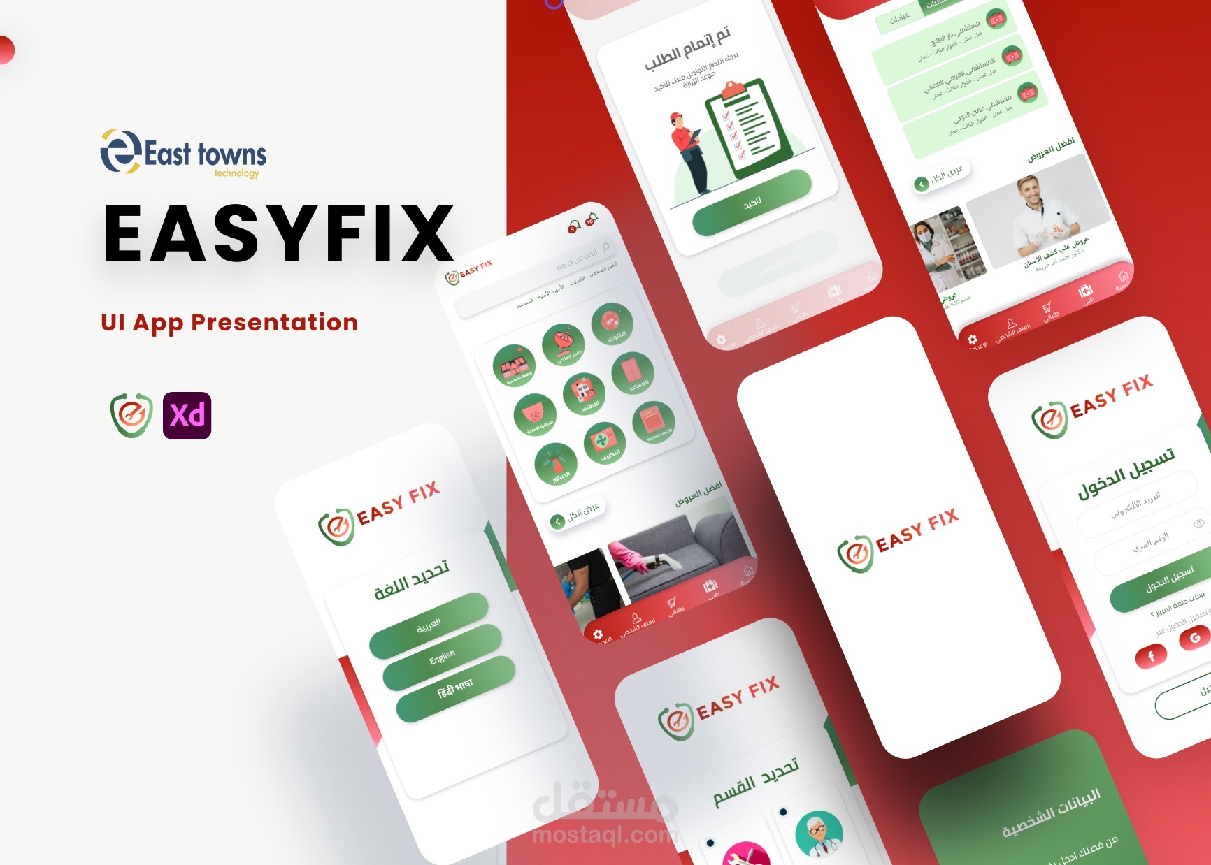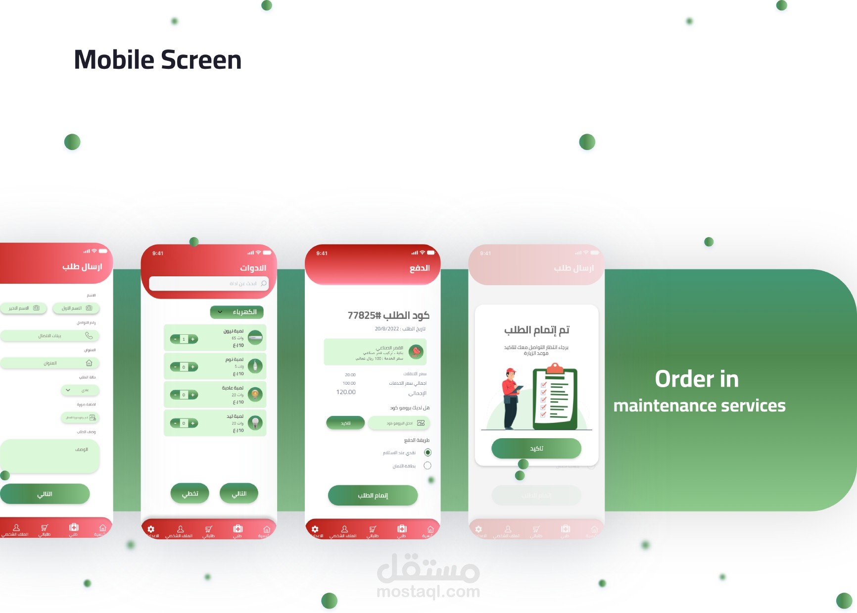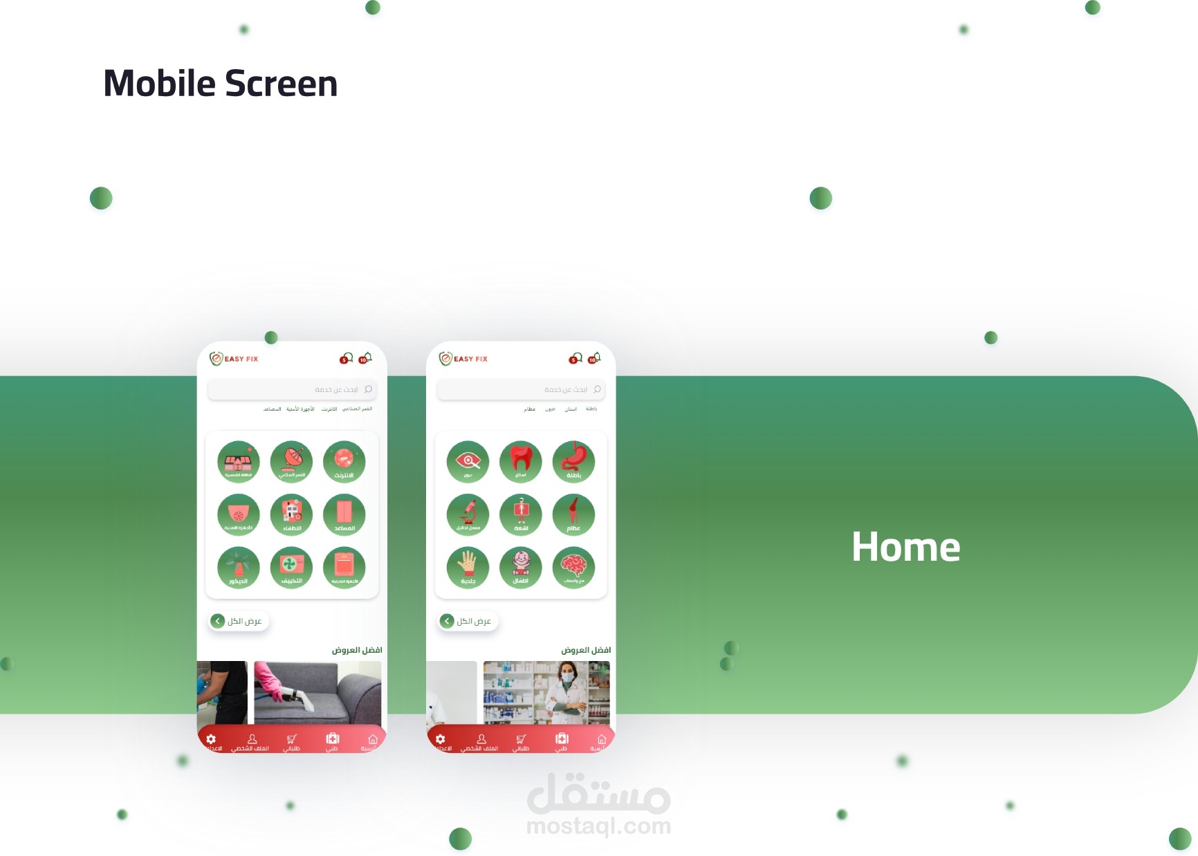 قمت في هذا المشروع بانشاء الهوية البصرية الكاملة لشركة ستكون قائمة علي تطبيق هاتف من خلاله يتم طلب خدمات منزلية ( صيانة - خدمات طبية )
